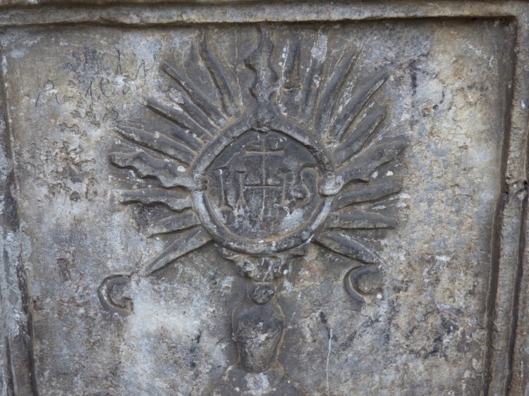 Chapelle St Antoine, au Parchet des Chapelles, bénitier avec armoirie
