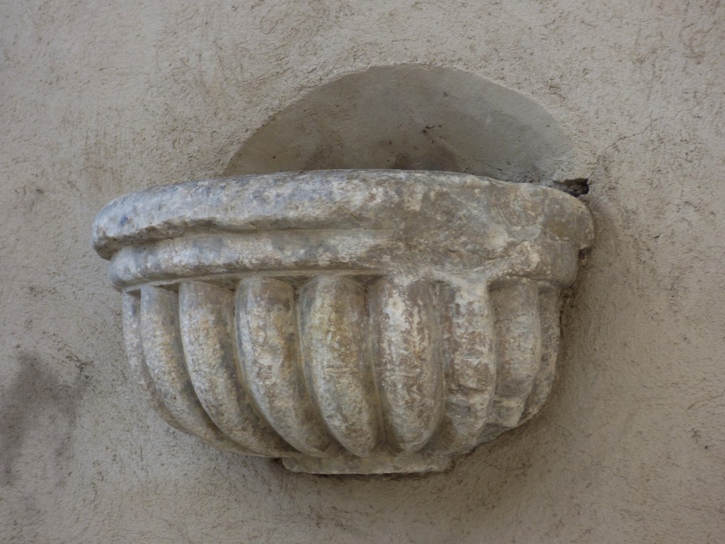 La plupart des bénitiers baroques sont dits « à godrons » : la pierre est taillée en quartiers d’oranges, comme celui ci (église de Landry) . Mais ceux des chapelles de nos villages affichent beaucoup plus de fantaisie.