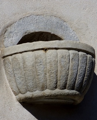 Bénitier de la chapelle St Pierre, au Plan Villard de Moutiers.