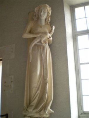 Chez les grecs anciens, Asclepios fait son «médicament» à partir du sang de la Gorgone, l’un des monstres de l’Antiquité associé au serpent. Il utilise le sang du côté droit de la bête pour faire ses remèdes, ce qui suggère que le côté gauche de la bête est toxique. Le serpent a une double nature : à la fois la cause et le remède à la maladie.