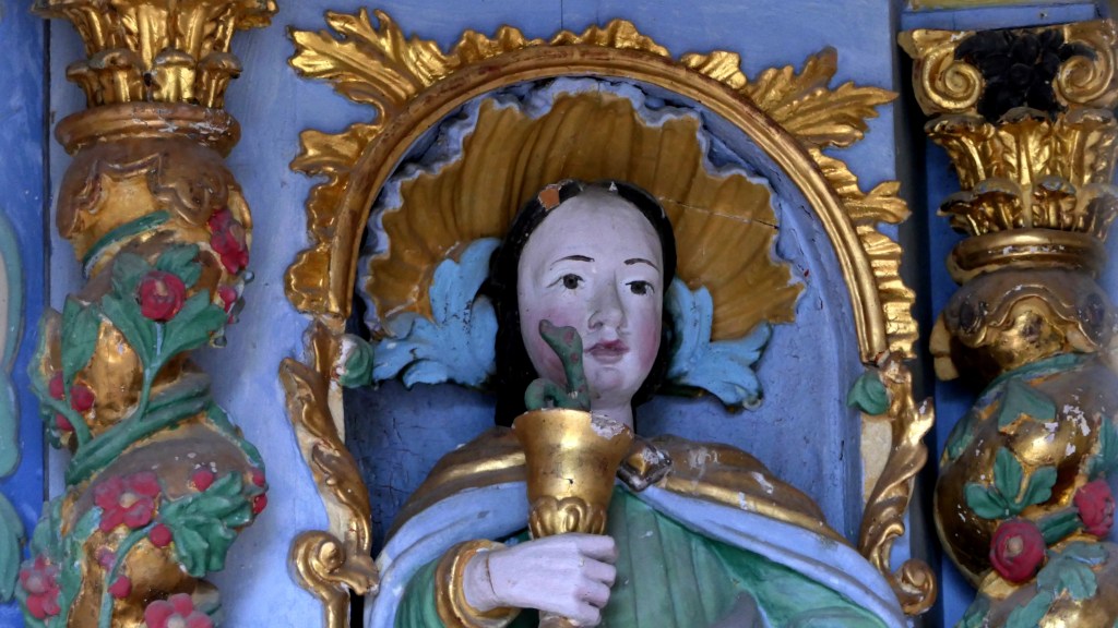 Quand on a 8 ans, on regarde beaucoup plus les animaux cachés dans les retables que les saints. Si l’adulte, à qui s’adresse la question, est capable de trouver la trombine du vermisseau dans le ciboire de Saint Jean, on est sur la bonne voie !