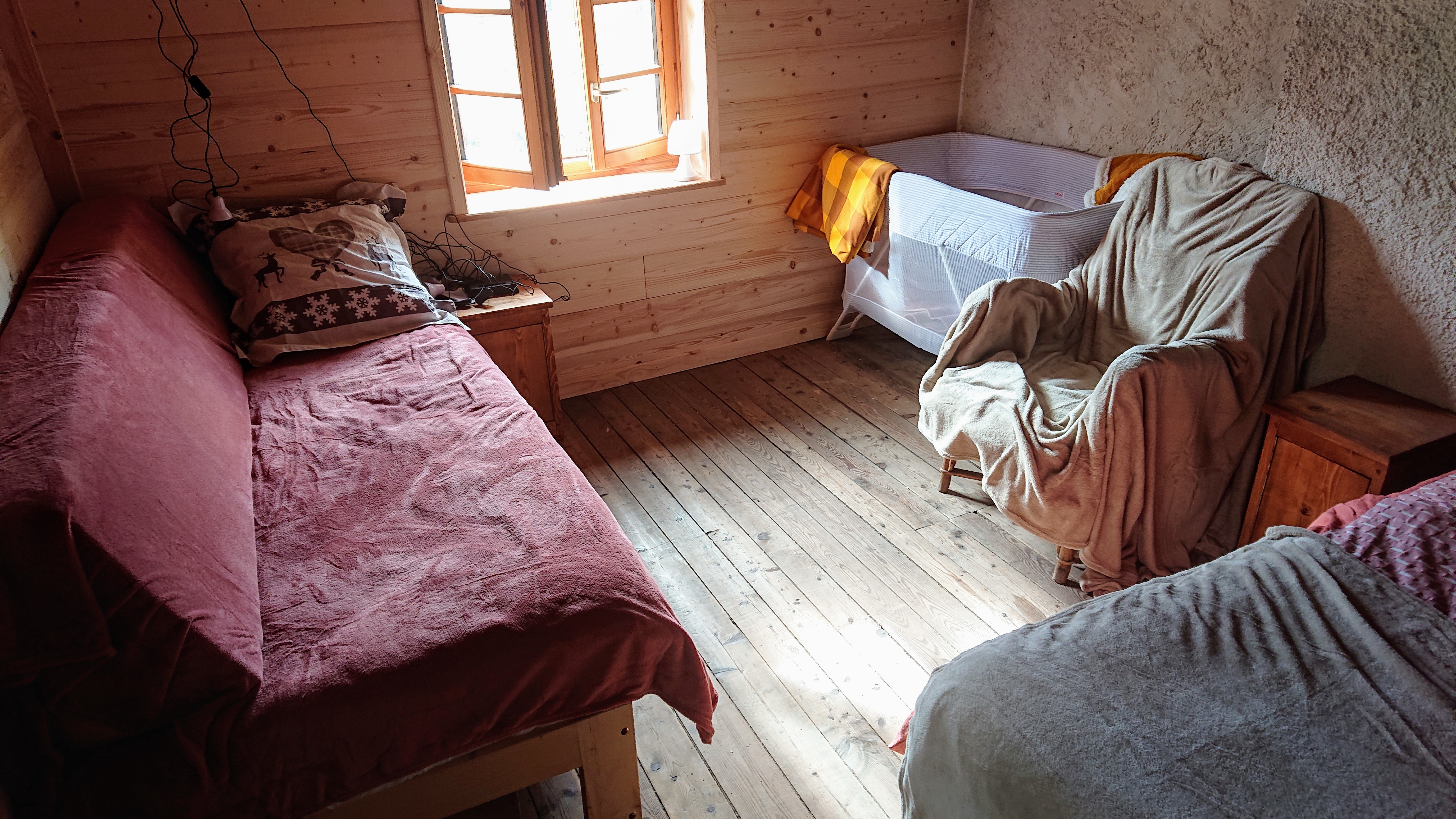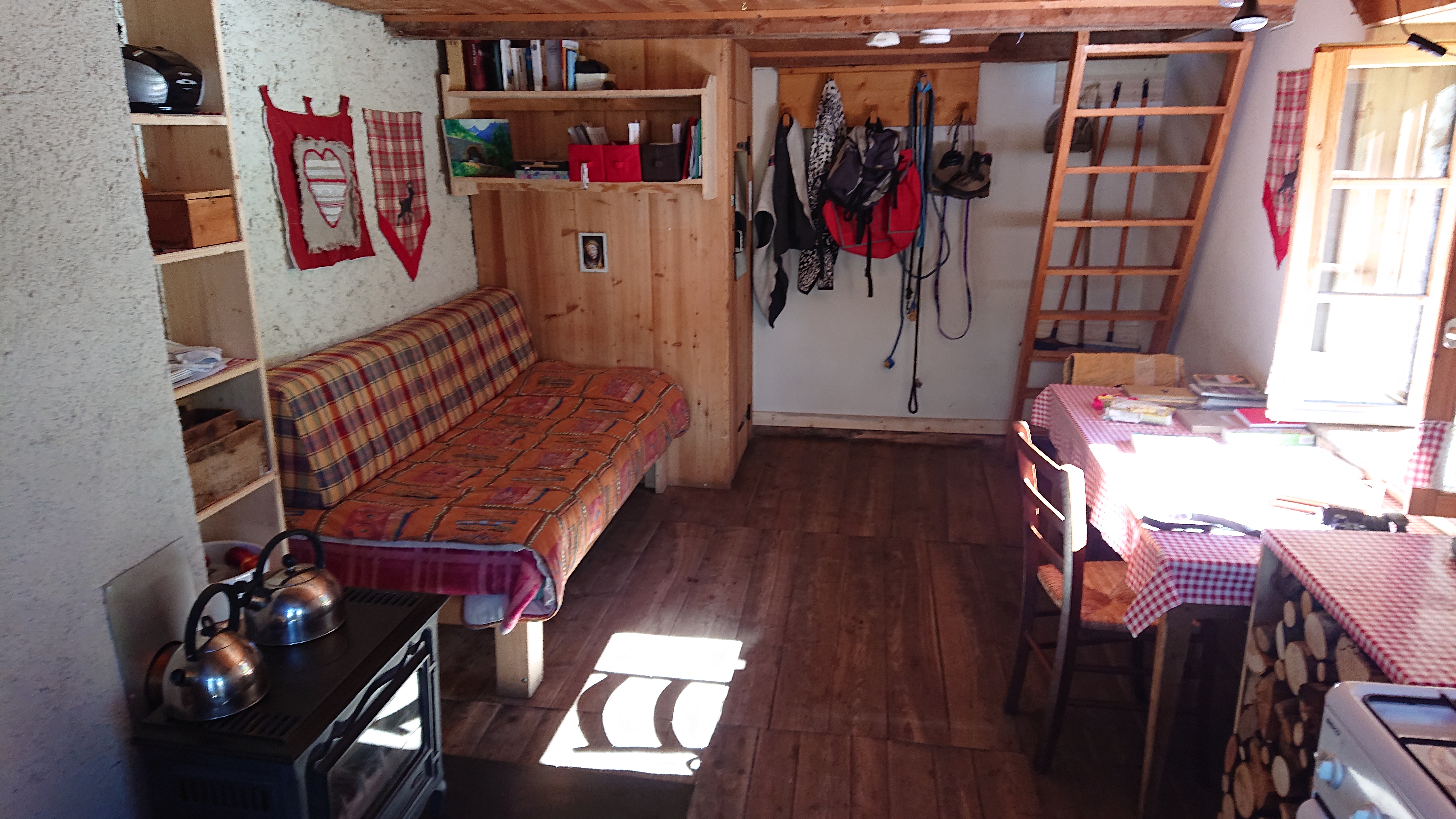 Pour l’eau, il faut aller à 300 m se servir en eau potable, faire fondre de la neige ou récolter l’eau du toit pour la vaisselle. Il n’y a pas de douche.