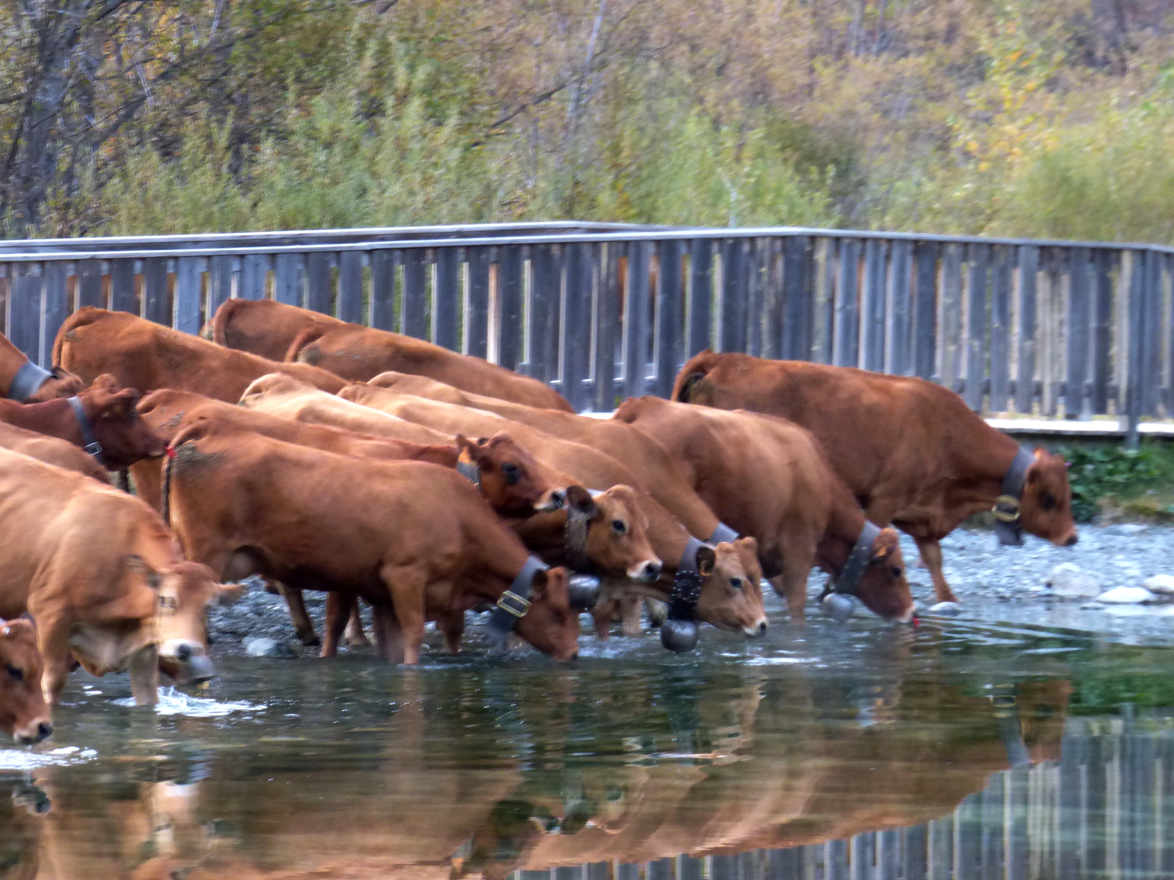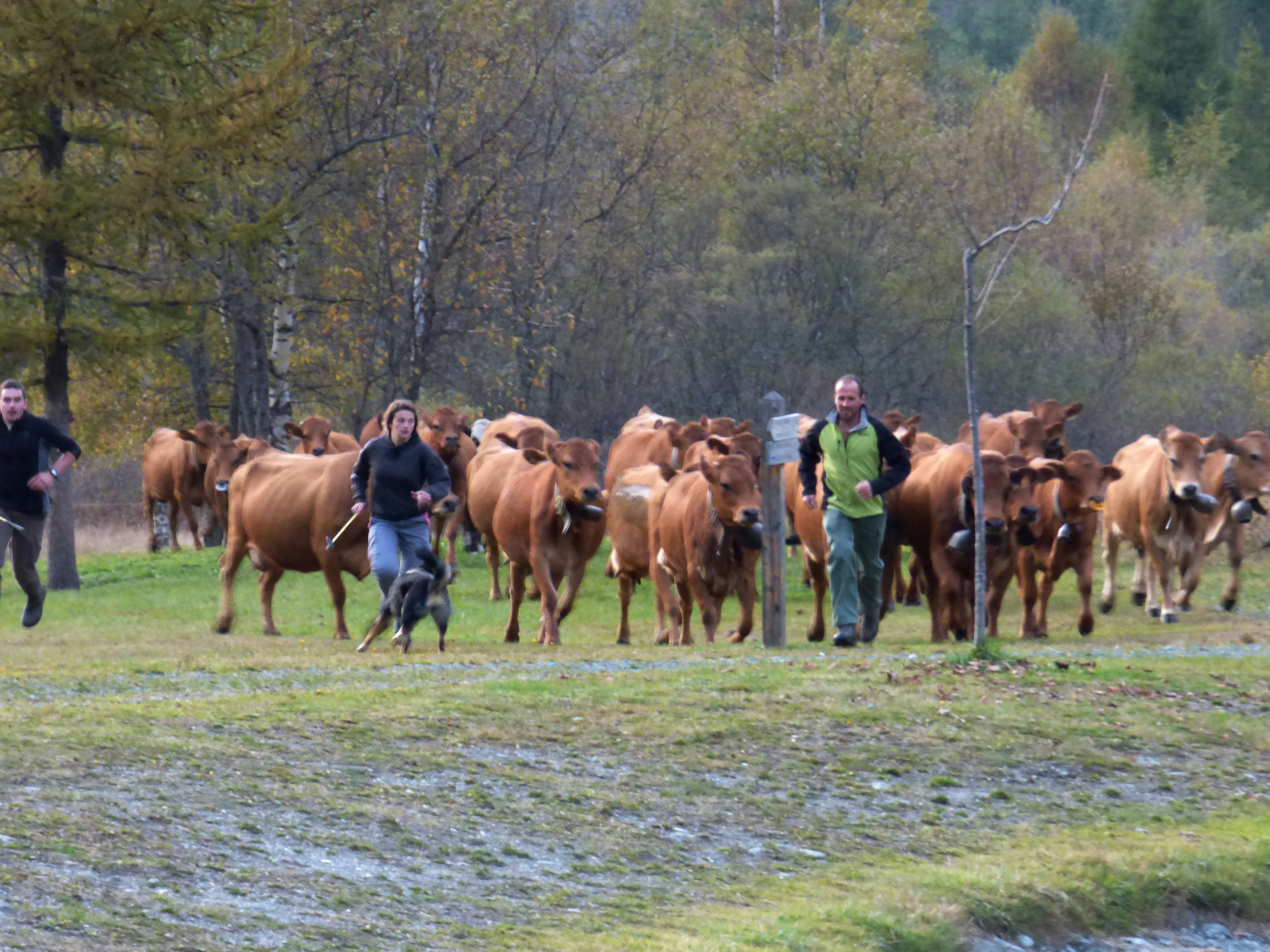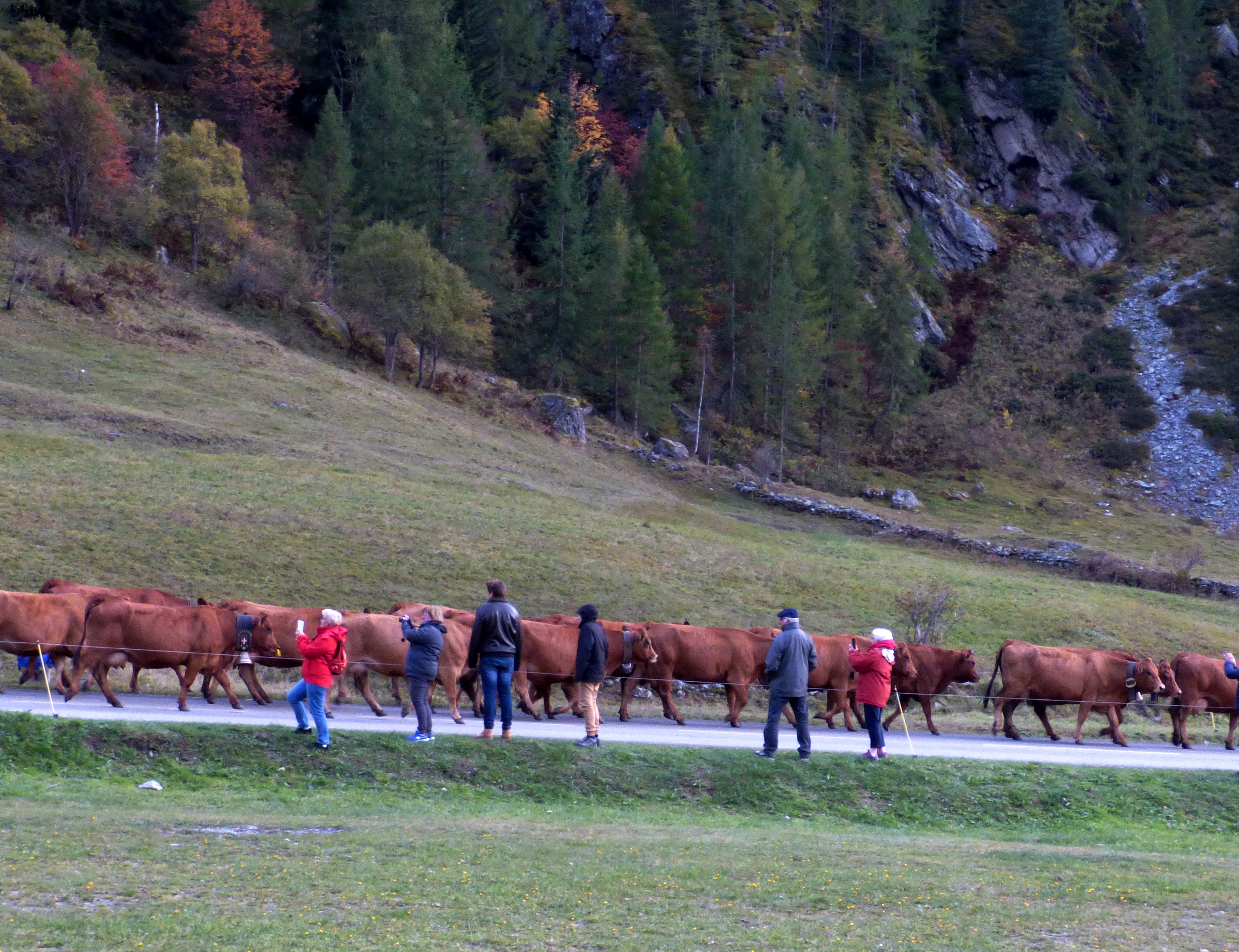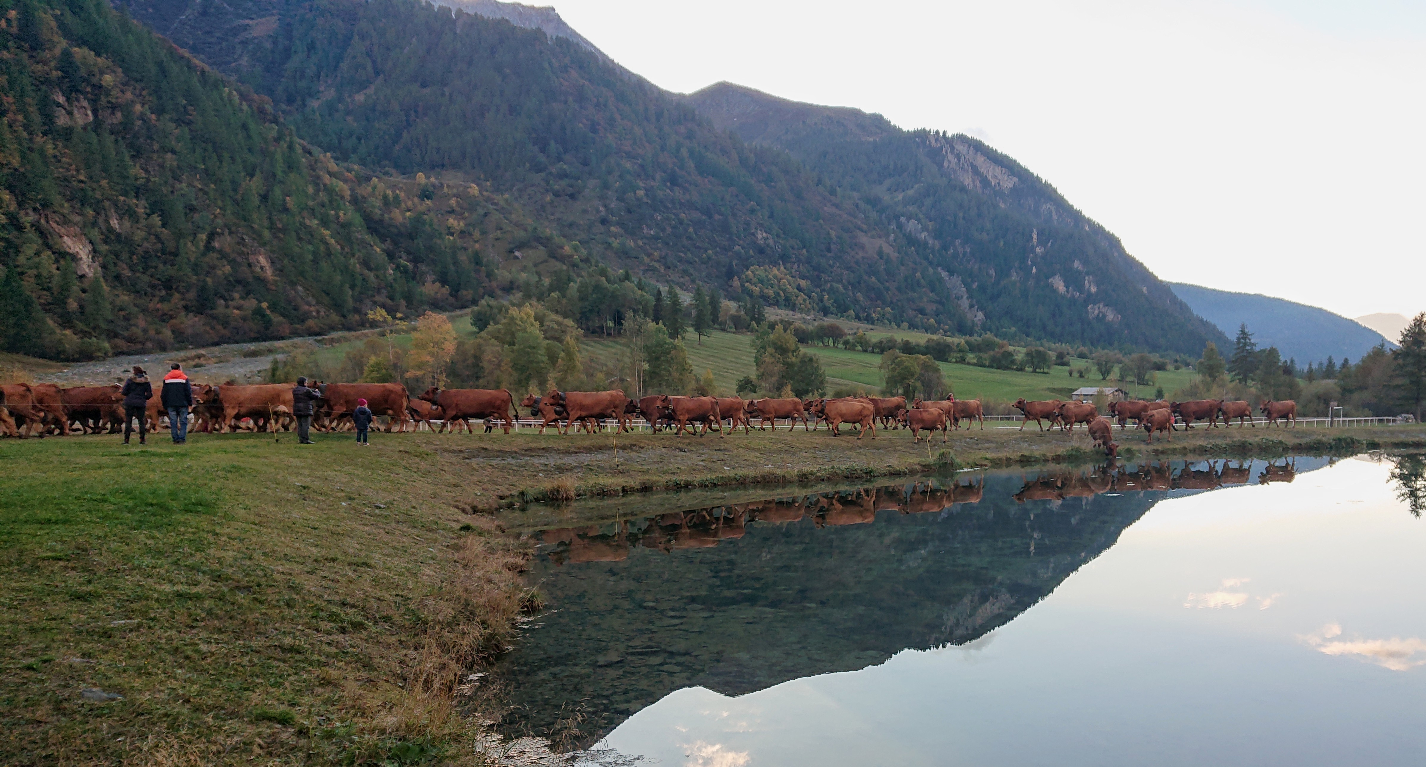 traditionnellement, cette descente se faisait autour de la date de la grande foire de St Michel, le 29 septembre. Elle se fait un peu plus tard maintenant que le climat se montre plus clément. Certaines vaches reviennent d’estives lointaines en camion.