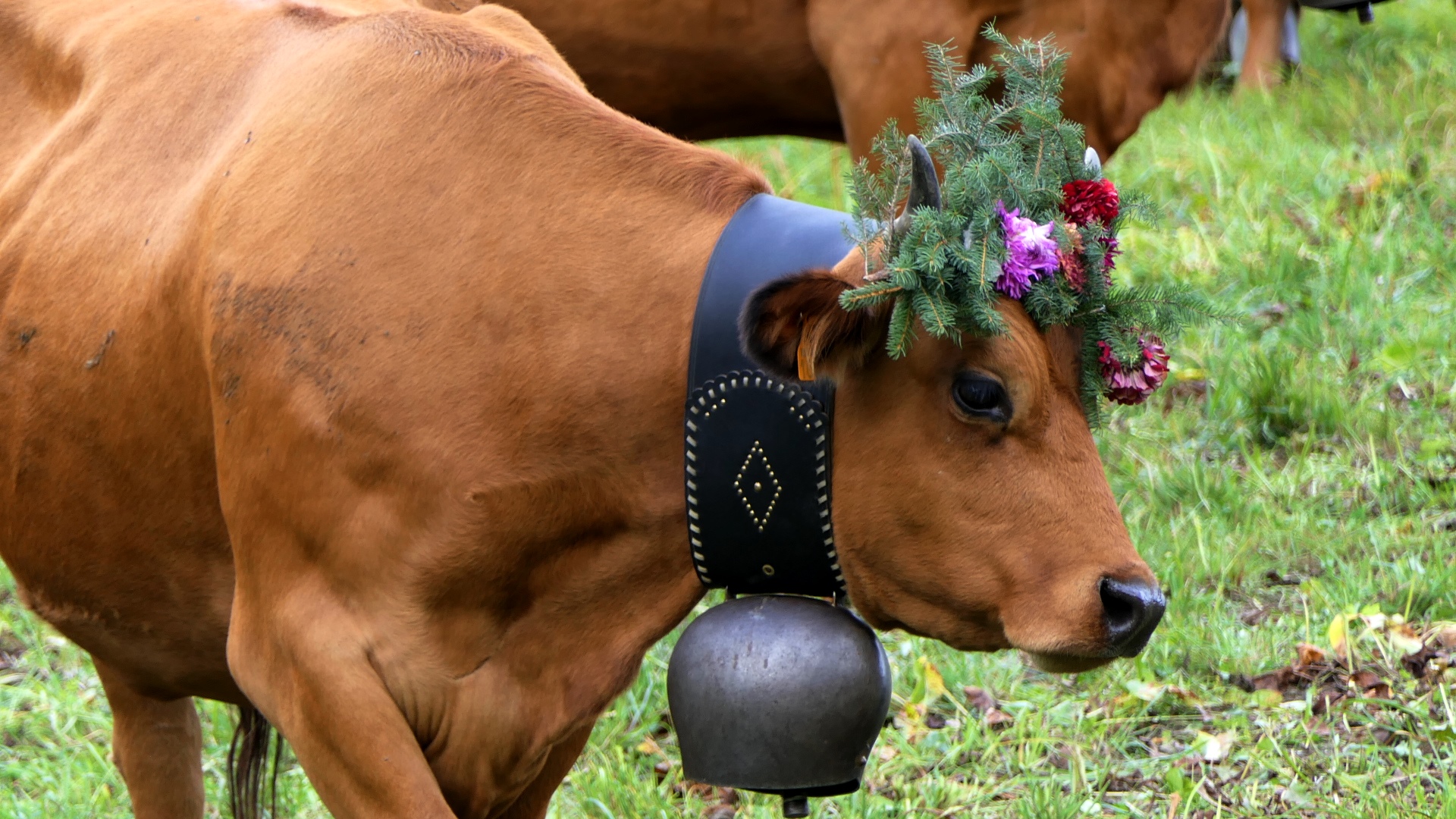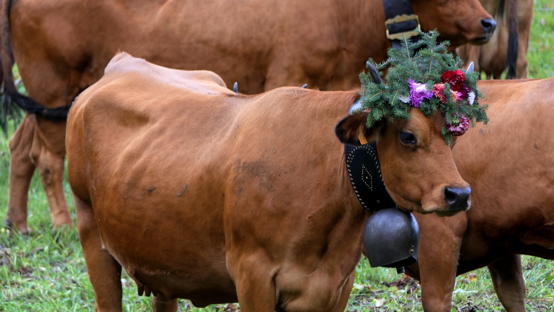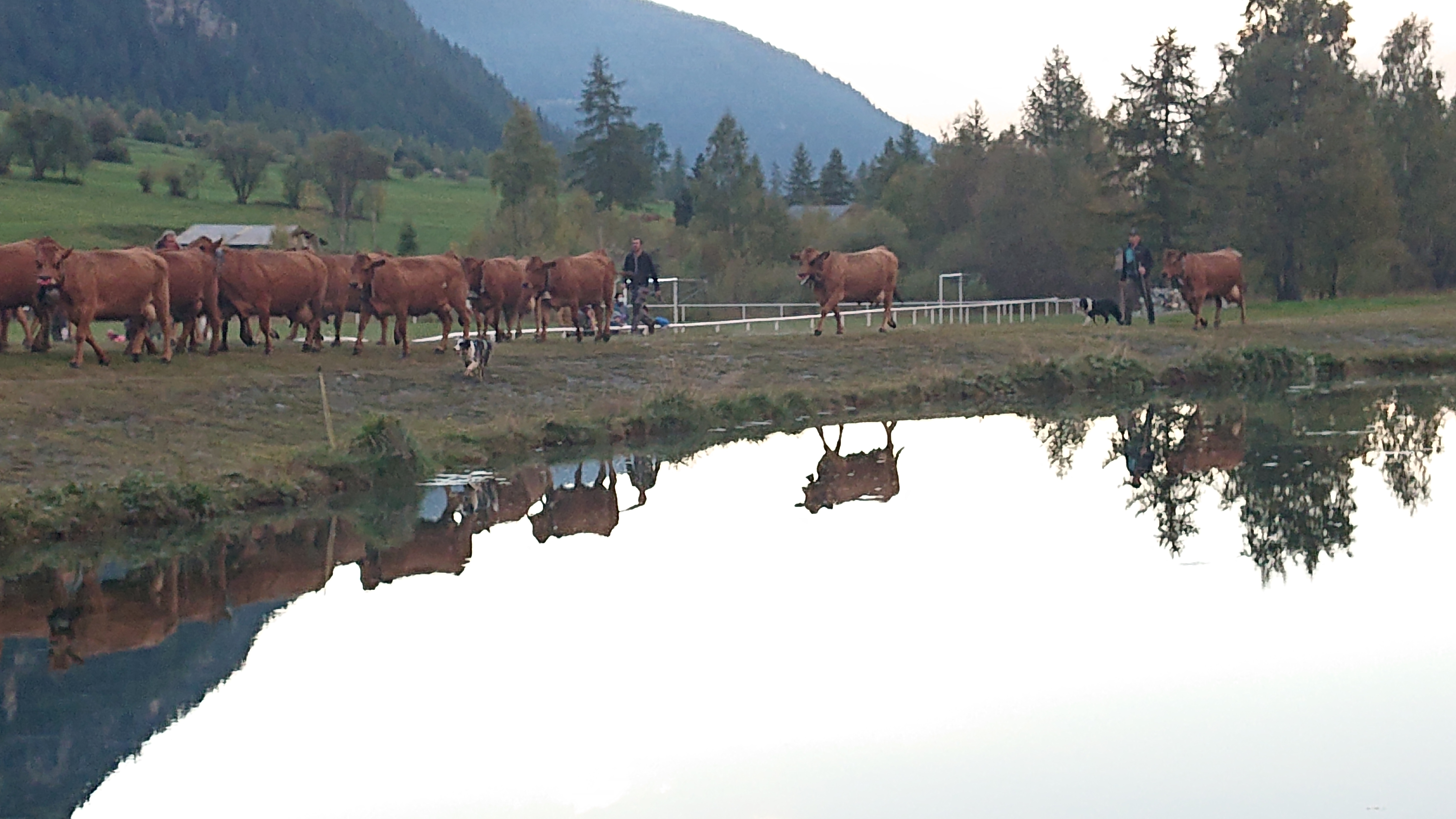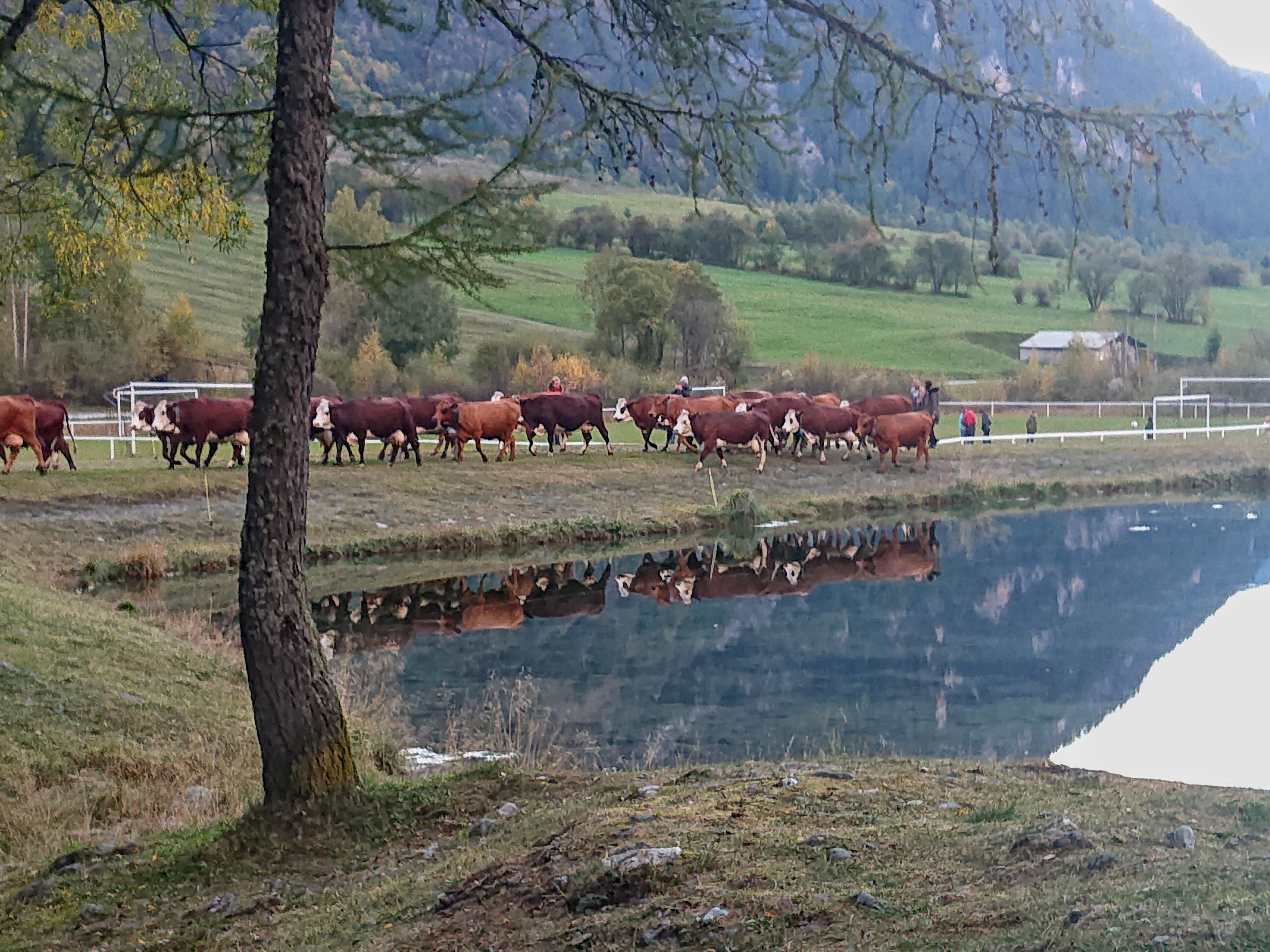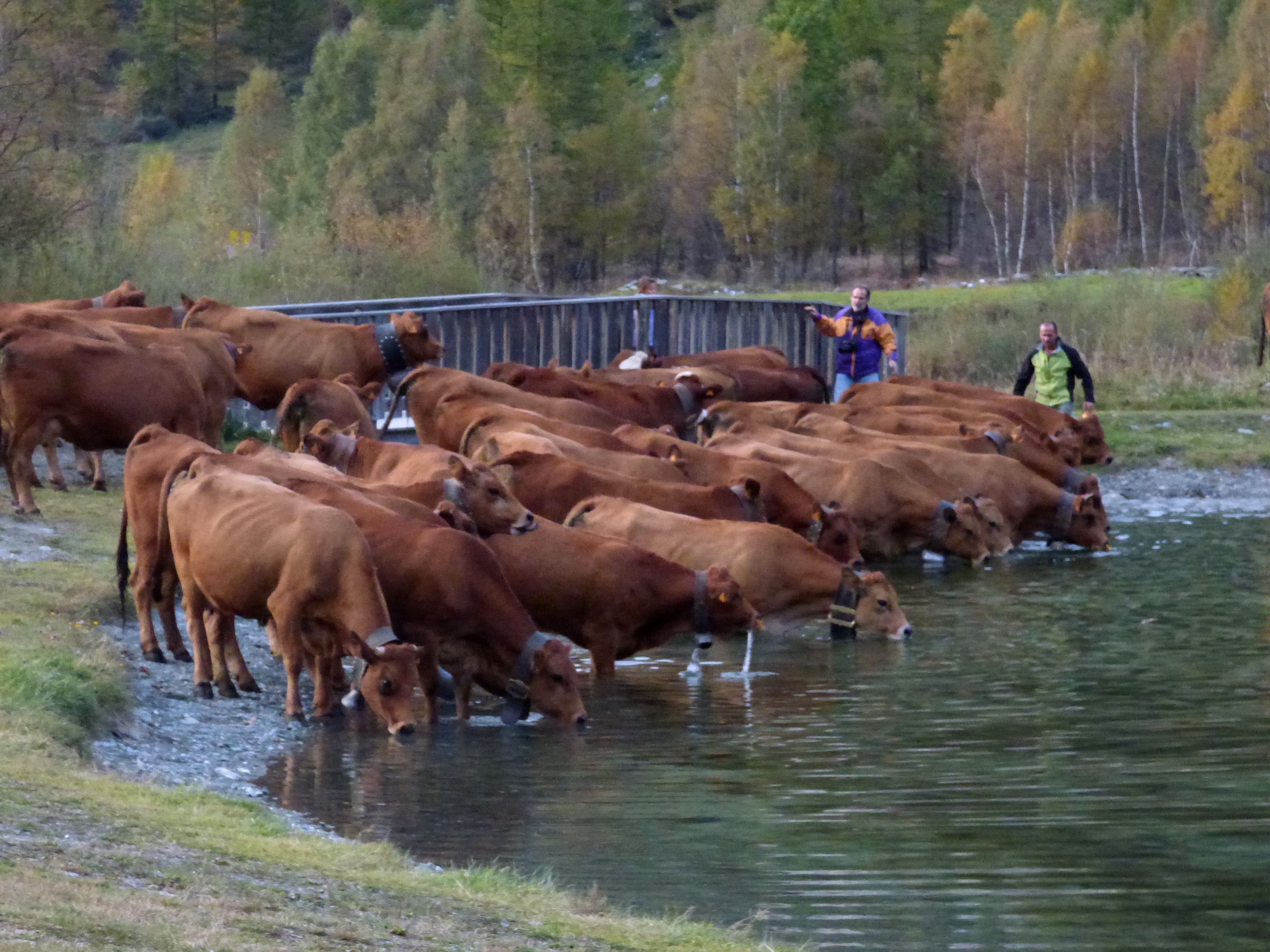 traditionnellement, cette descente se faisait autour de la date de la grande foire de St Michel, le 29 septembre. Elle se fait un peu plus tard maintenant que le climat se montre plus clément. Certaines vaches reviennent d’estives lointaines en camion.