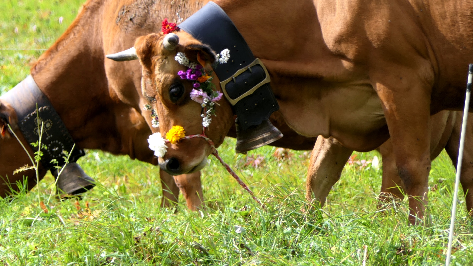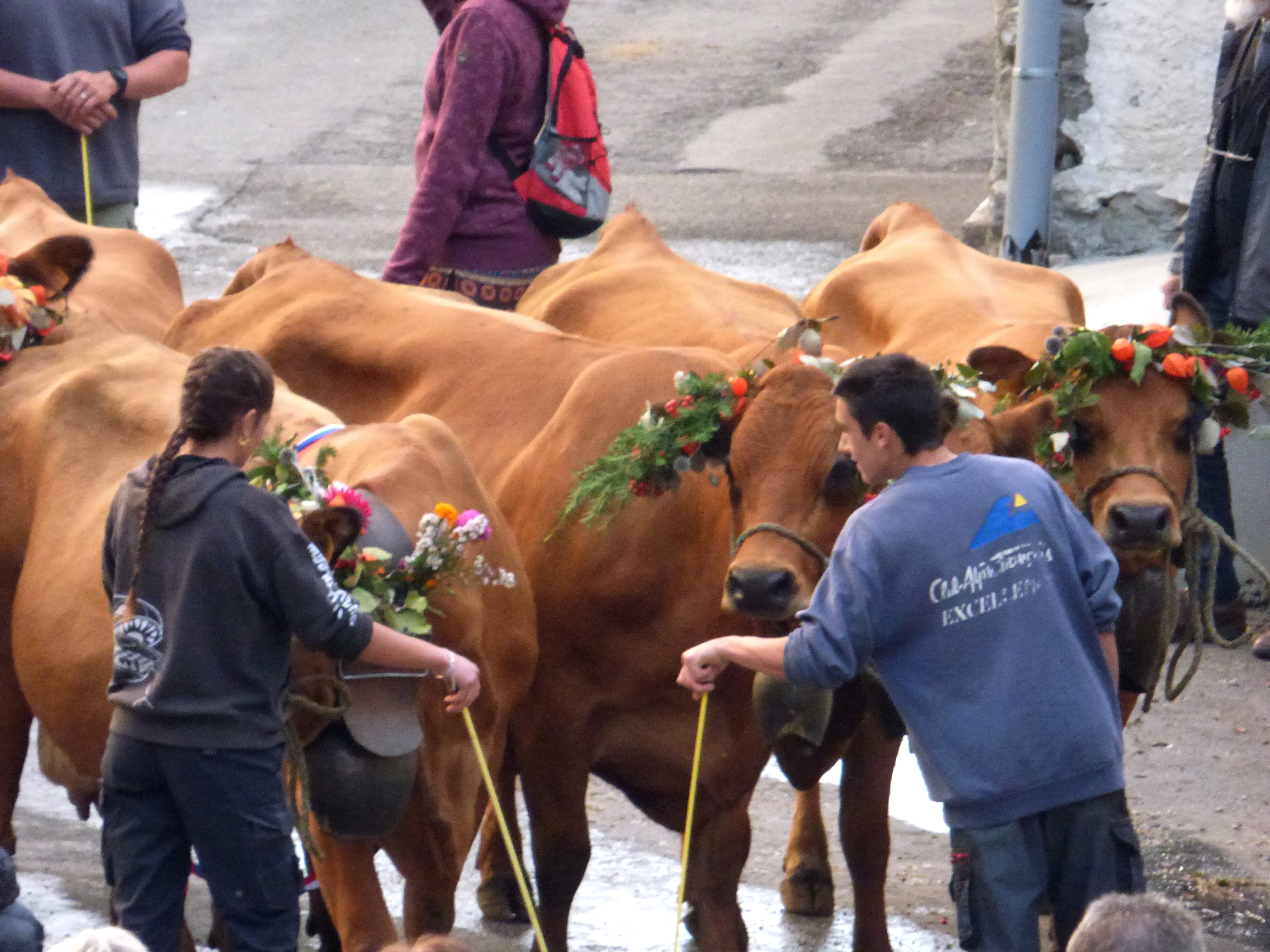 Fleurir la tête des vaches les plus dociles n’est pas une mince affaire ! Faire défiler les bêtes sans mélanger les troupeaux et sans mettre en danger le public ne l’est pas plus.