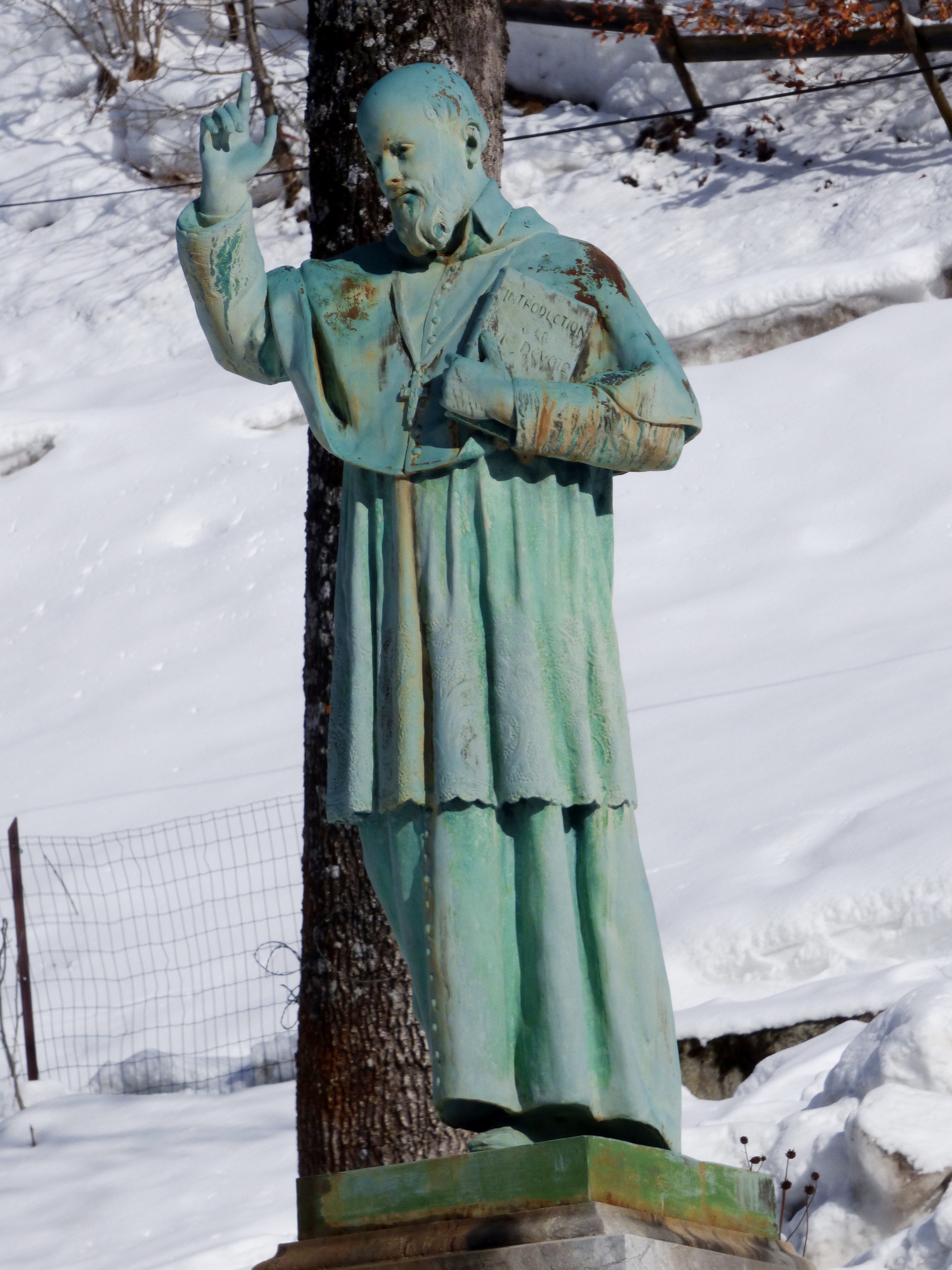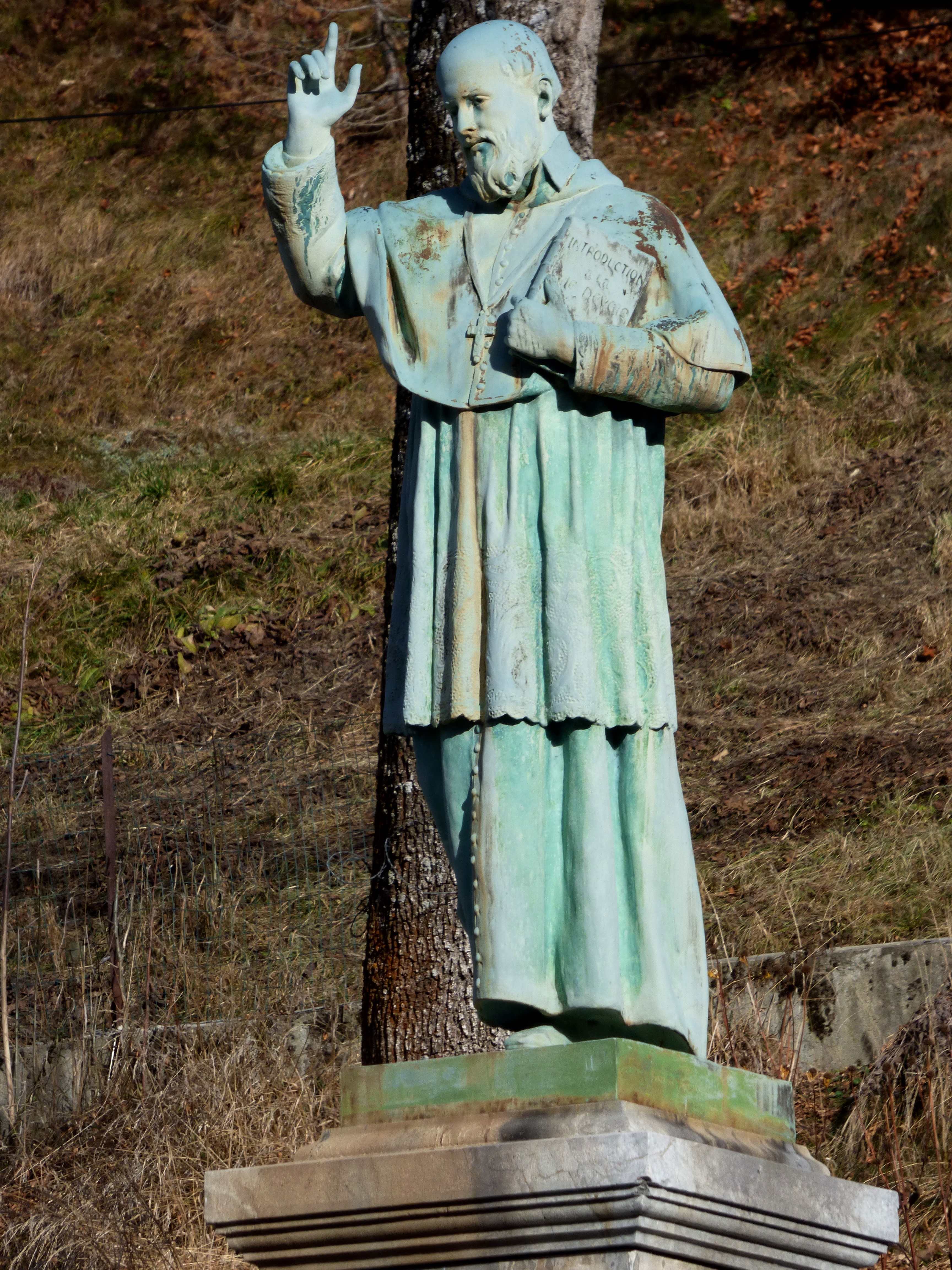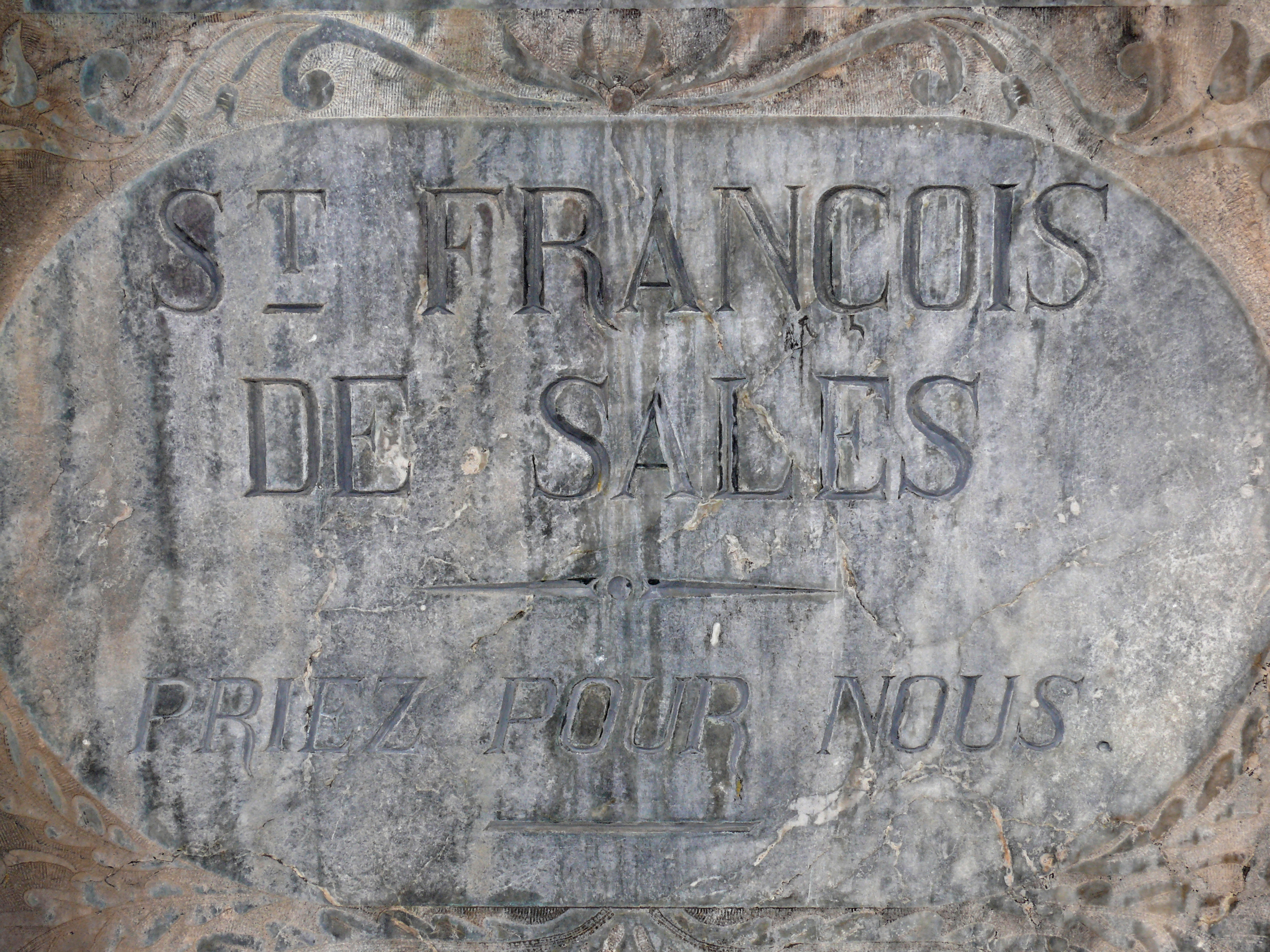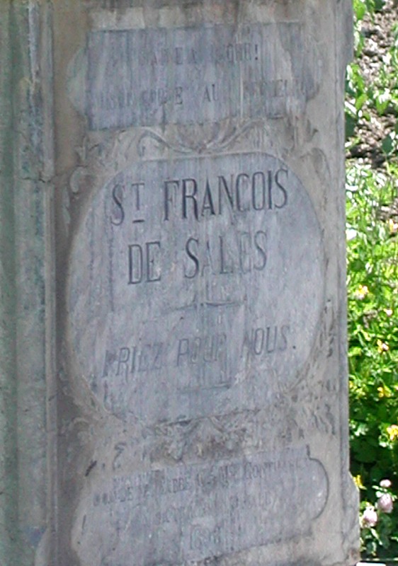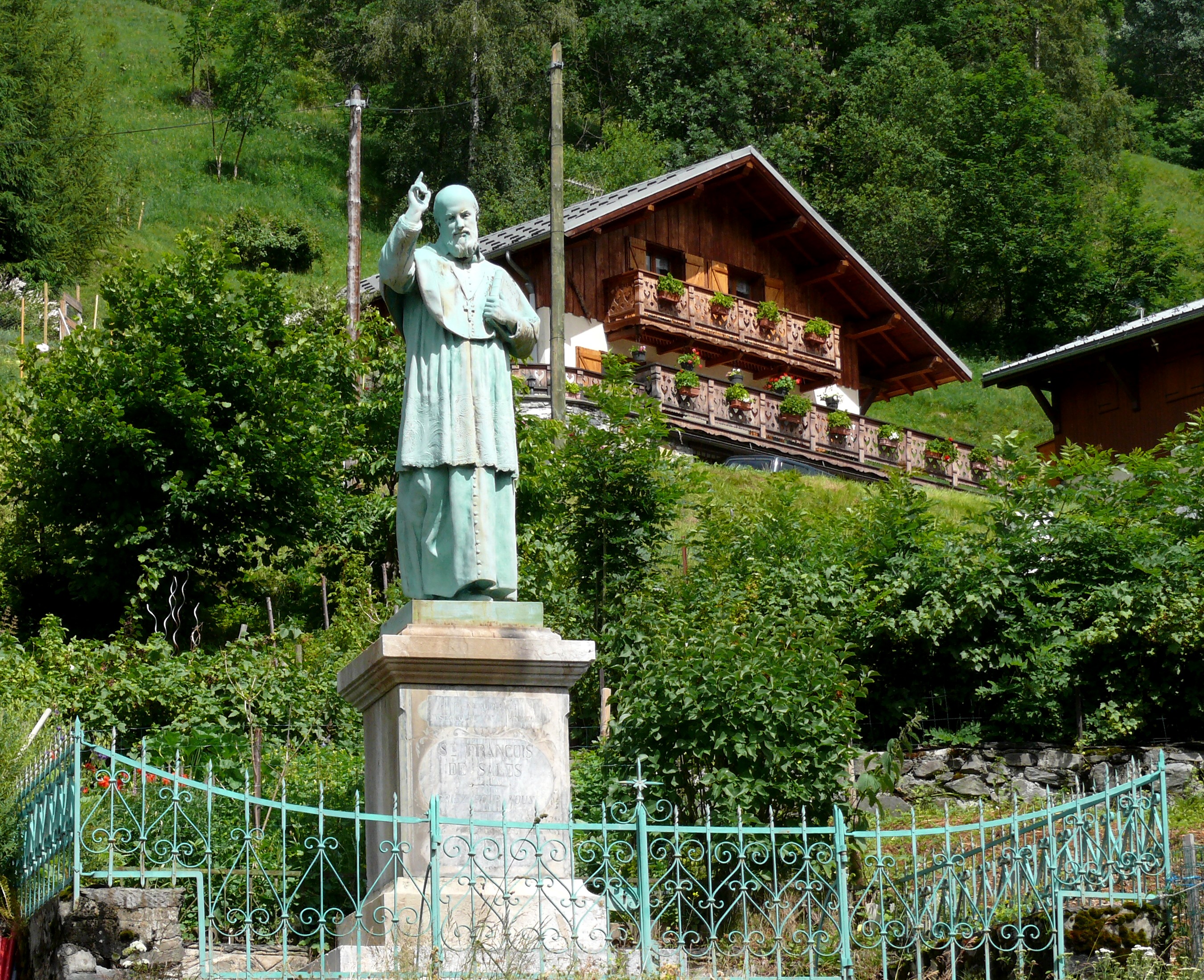 Saint-François de Sales est le Saint-patron de la Savoie. C’est le grand Saint de la contre-réforme catholique du 17ième siècle. Il s’est épuisé à récupérer les âmes perdues des pays de montagne sur lesquelles la Genève calviniste exerçait un fort attrait. Il a rédigés ses suppliques et exhortations sur de multiples billets, distribués dans les paroisses et glissés sous les portes closes. A ce titre, c’est aussi le Saint-patron des journalistes.