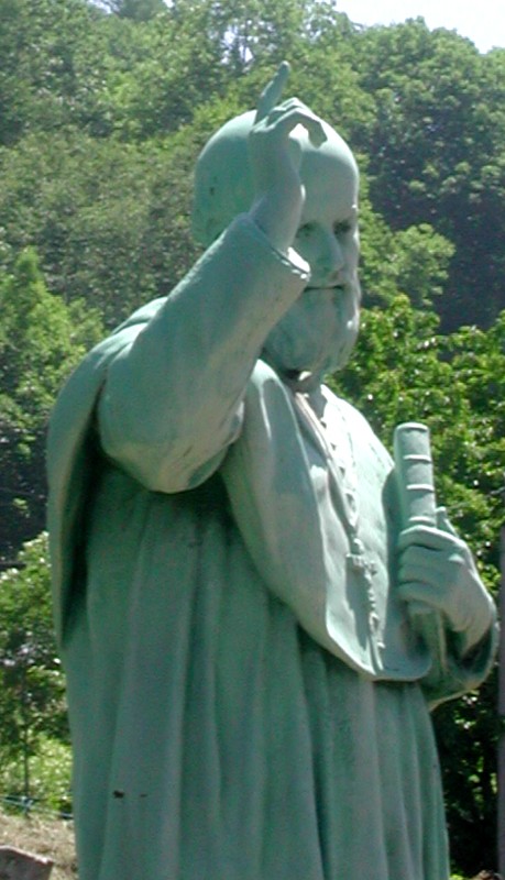 Saint-François tient d’une main son livre le plus connu « introduction à la vie dévote » et de l’autre : il prêche, mais ce mot ne dit plus rien aux jeunes générations. « on dirait qu’il cherche à savoir d’où vient le vent »