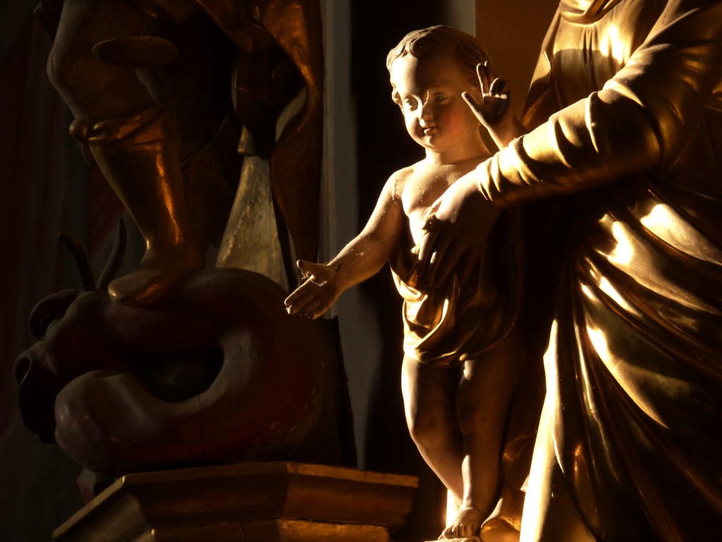 Cependant c’est St Joseph, de l’autre côté de l’entrée du chœur qui est le plus invoqué pour la bonne mort : on suppose qu’il a eu à son chevet le Christ et la Sainte vierge.