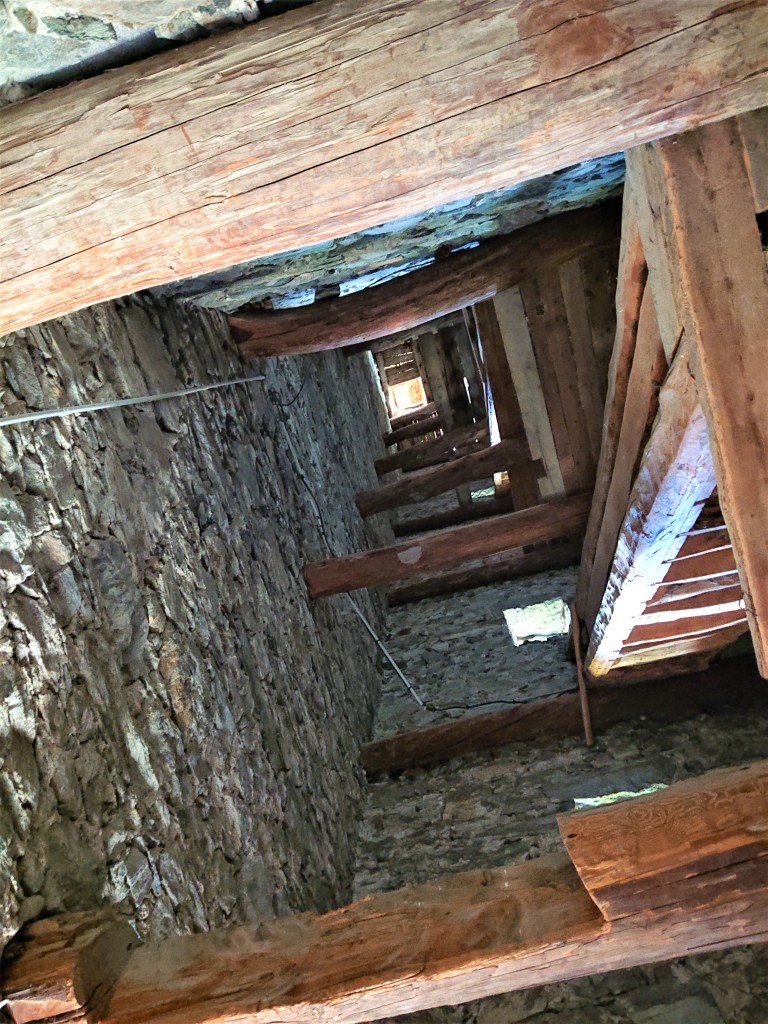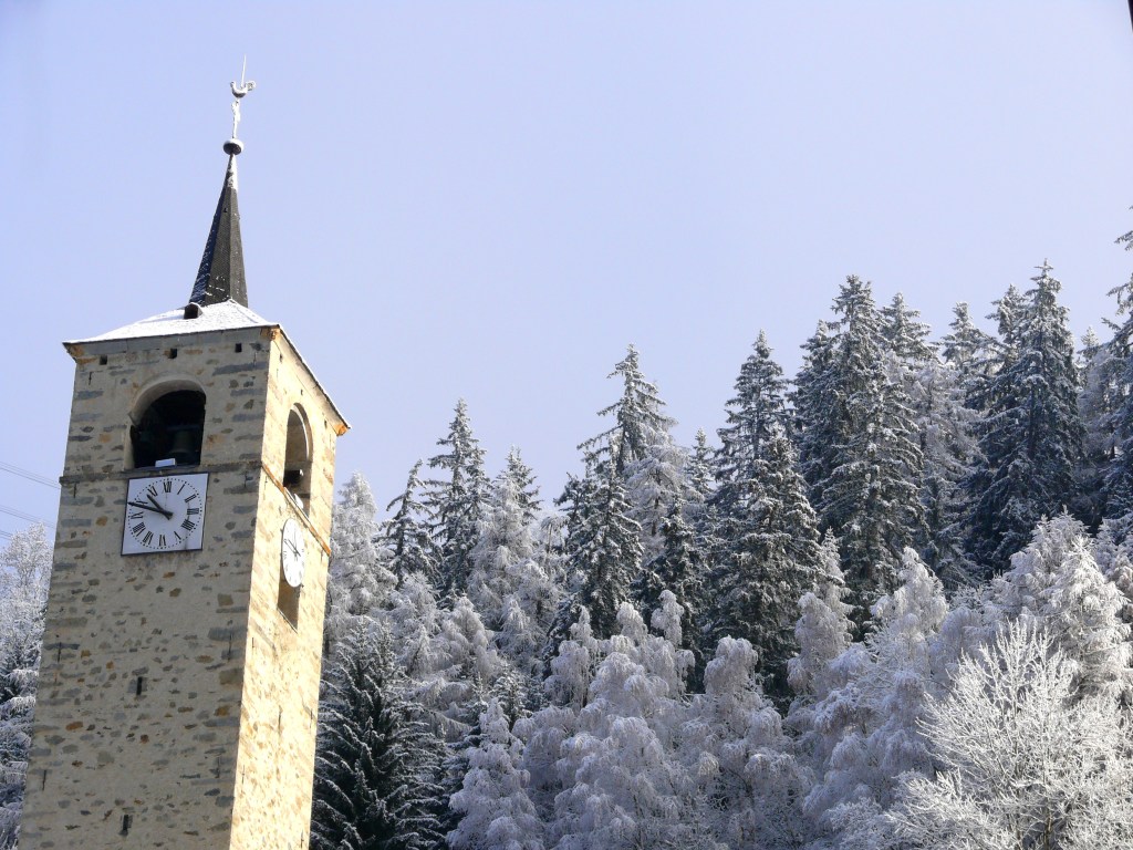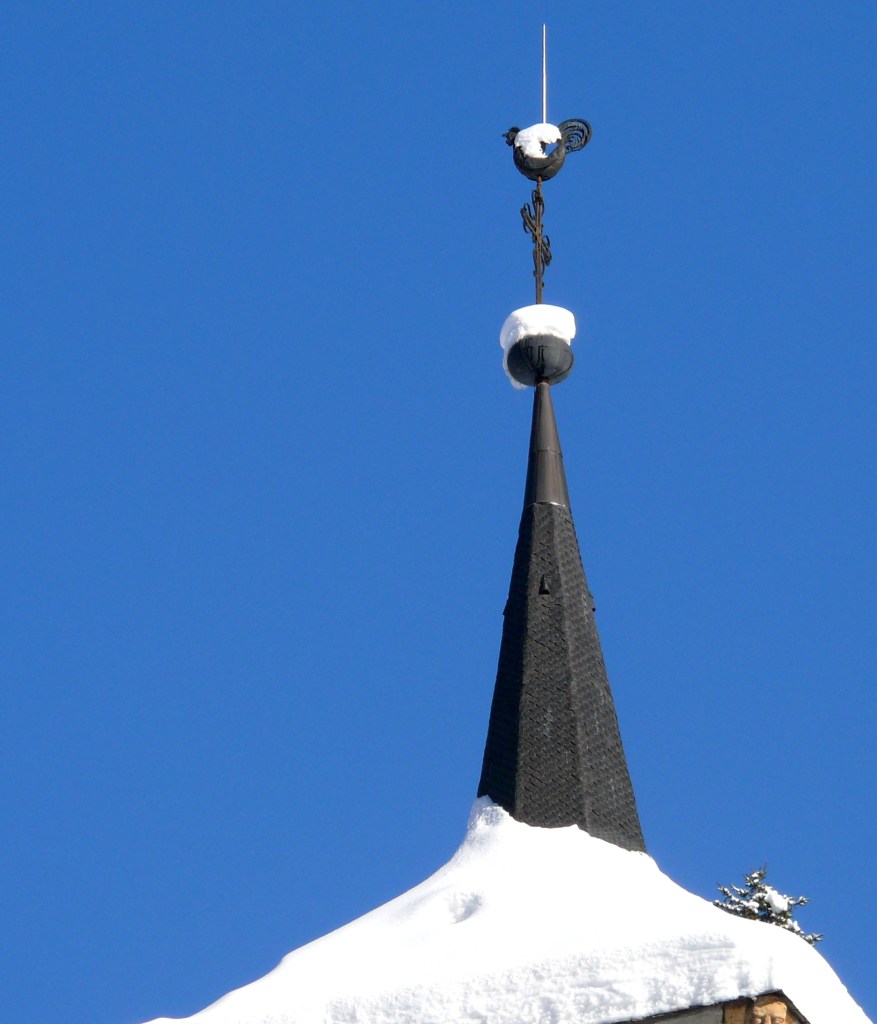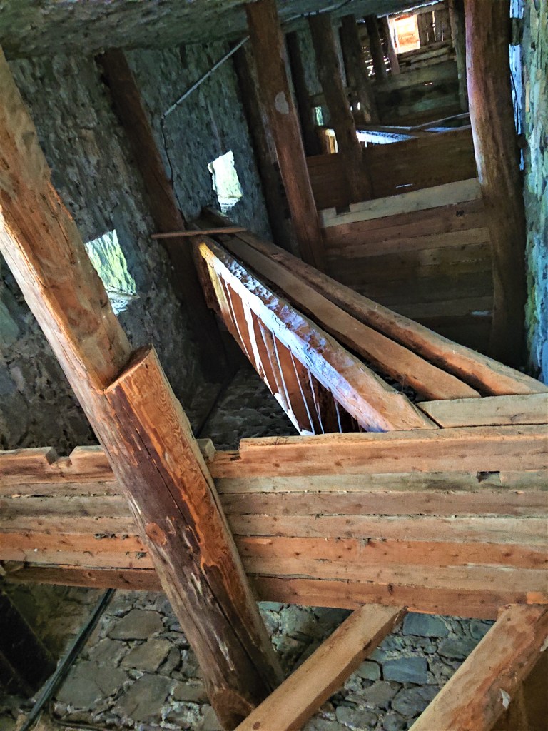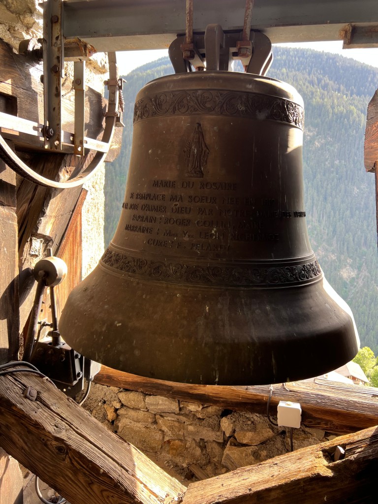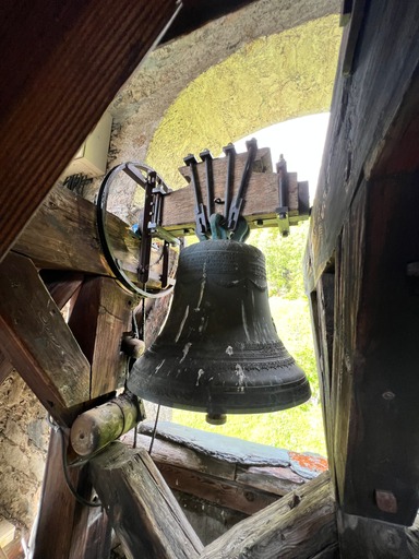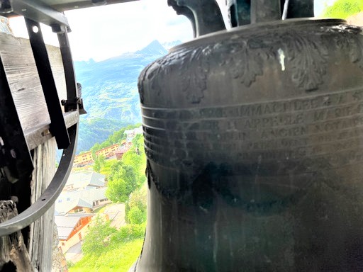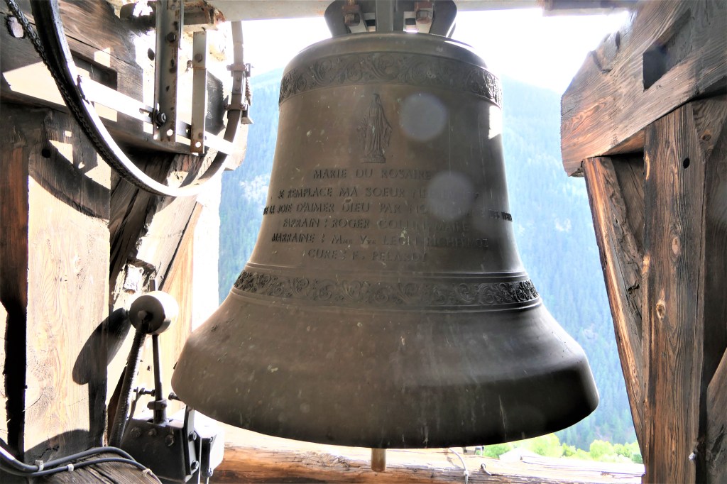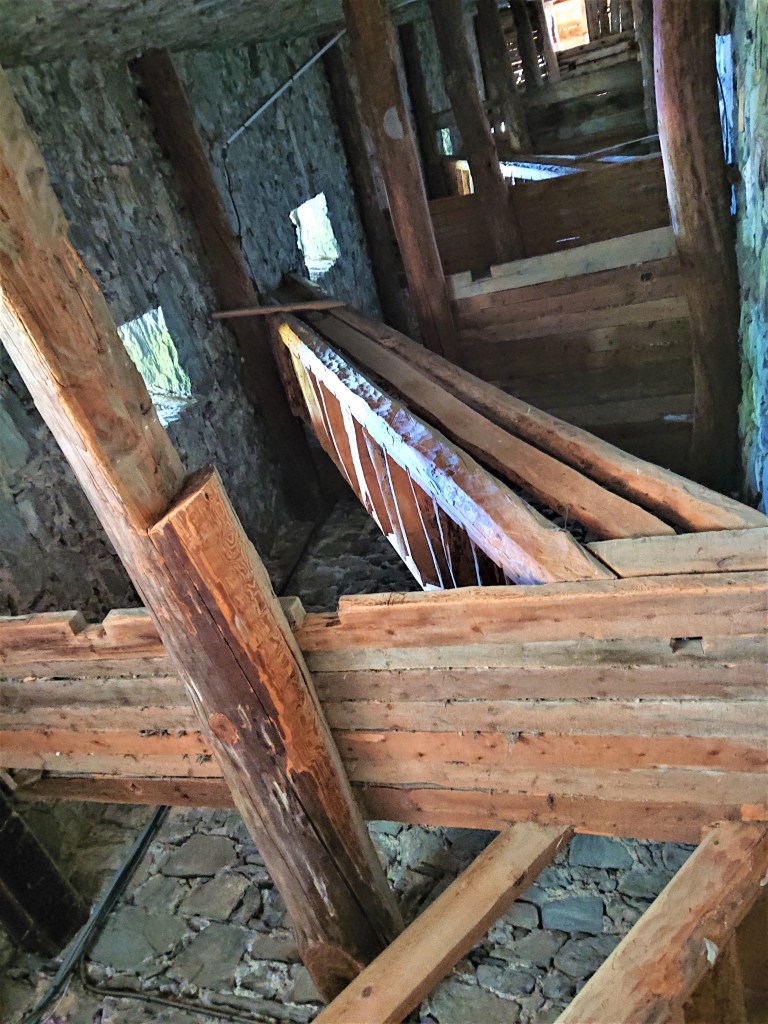 A l’intérieur du clocher se trouve un escalier de mélèze qui est lui même une oeuvre d’art : 8 volées de marches. Déconseillé à ceux qui n’aiment pas le vide.