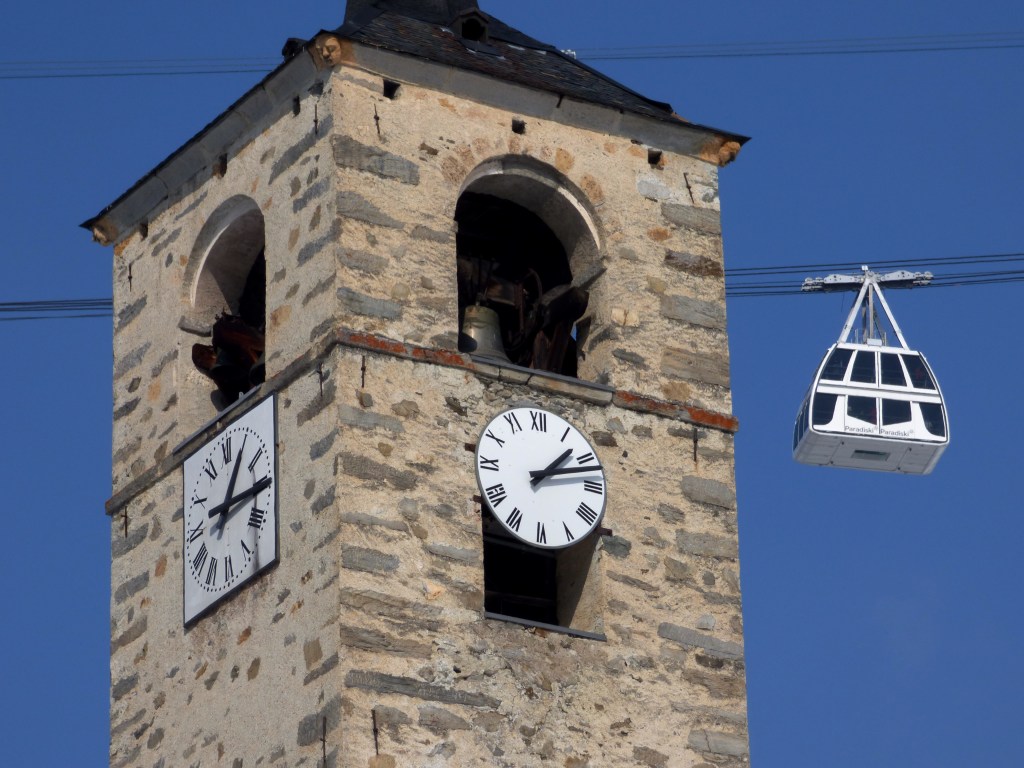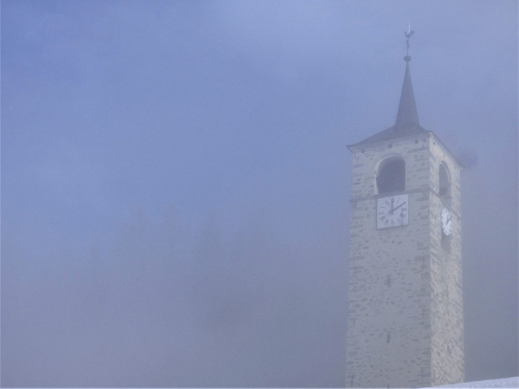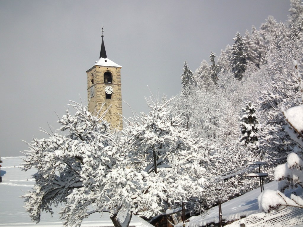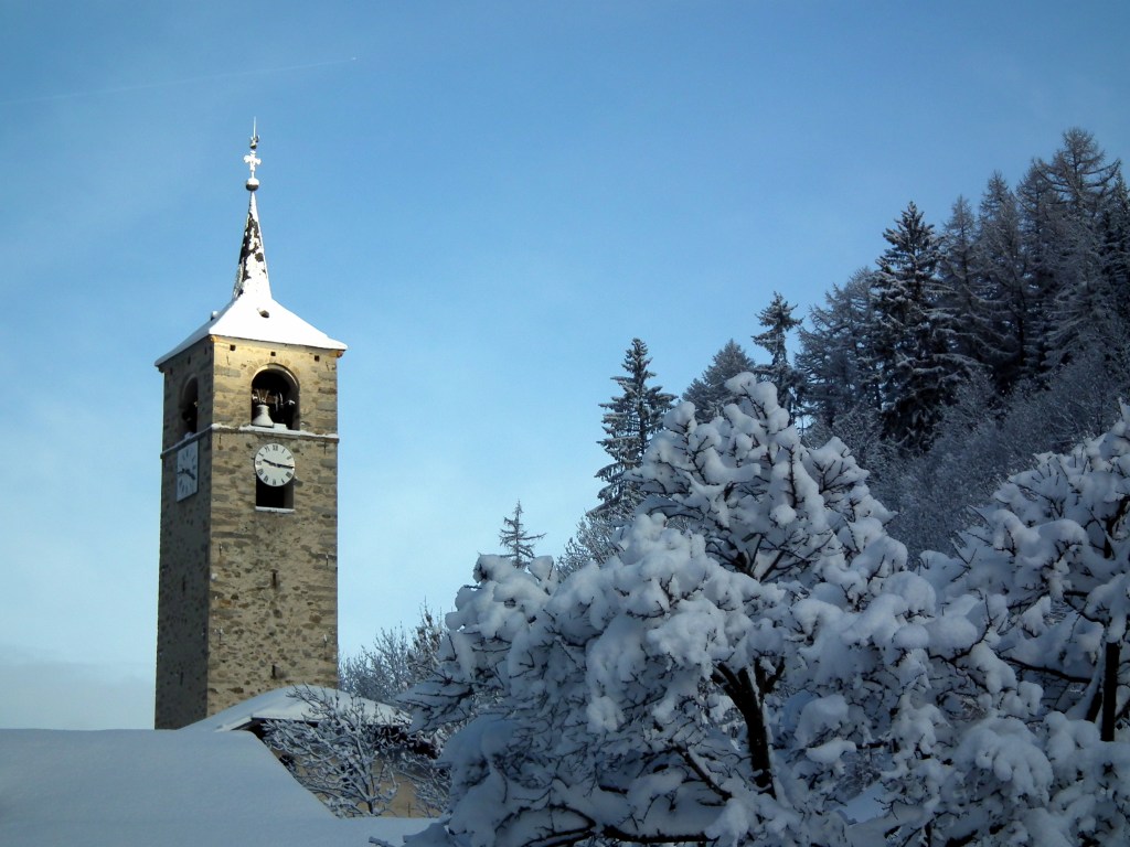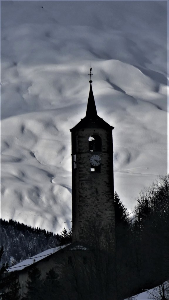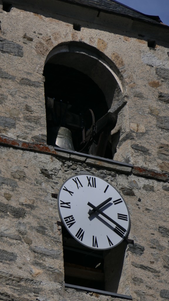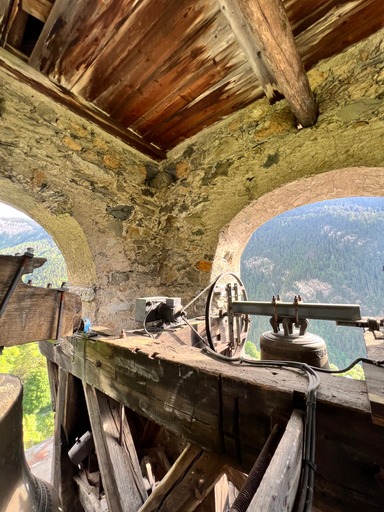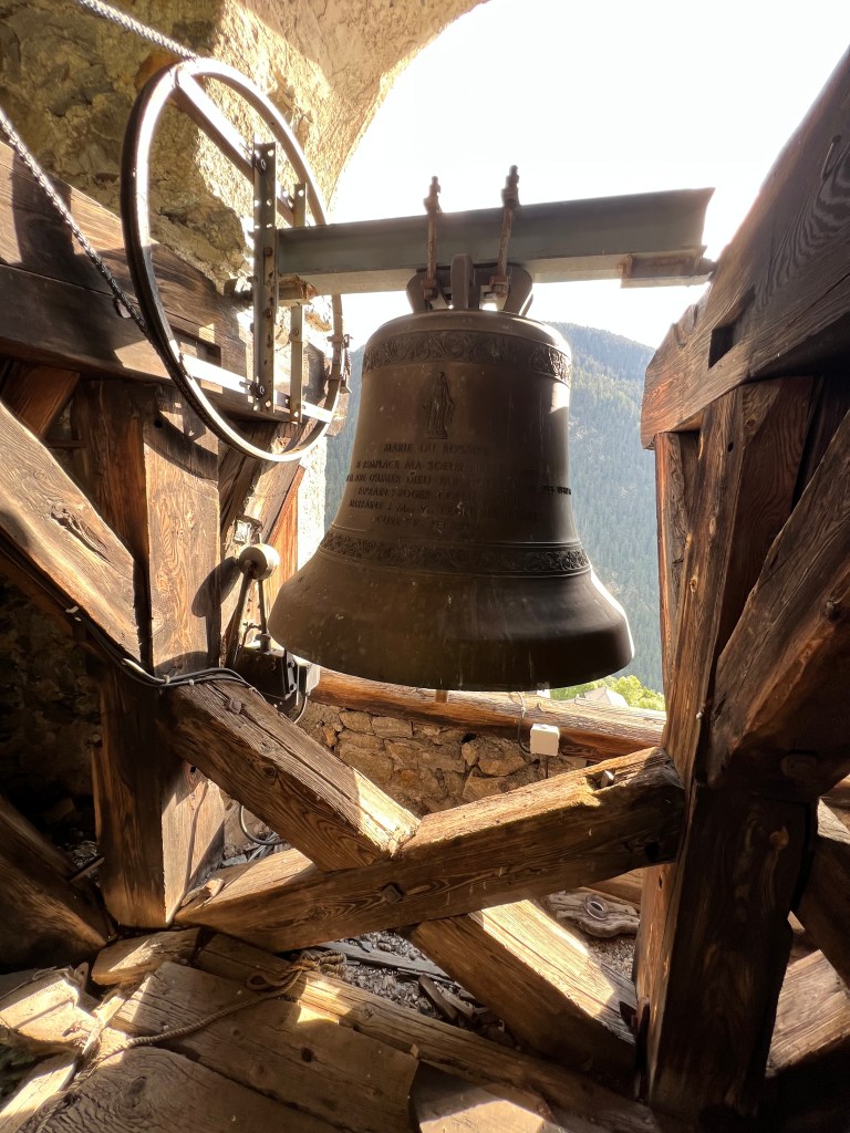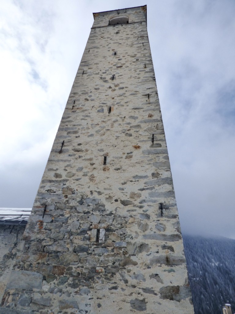 A l’intérieur du clocher se trouve un escalier de mélèze qui est lui même une oeuvre d’art : 8 volées de marches. Déconseillé à ceux qui n’aiment pas le vide.