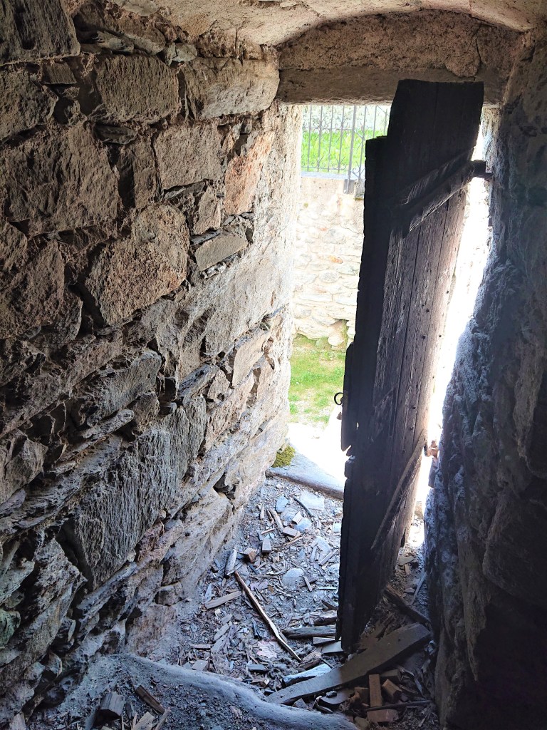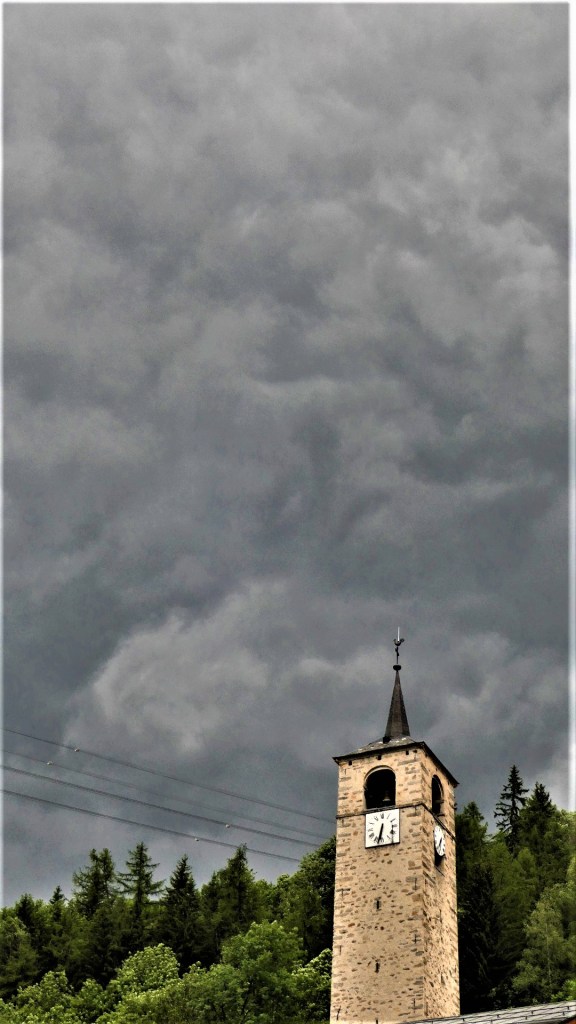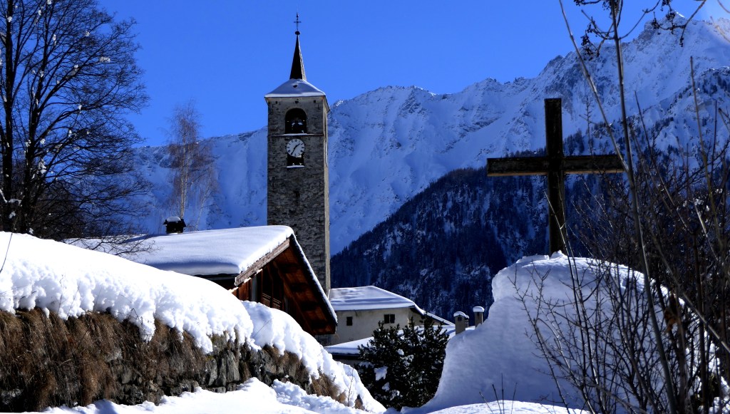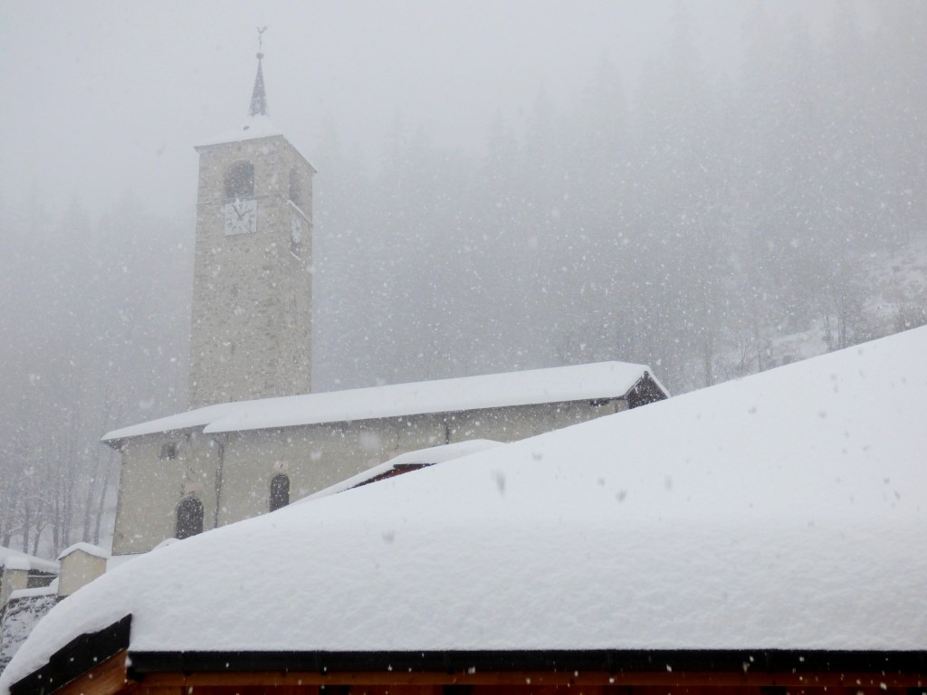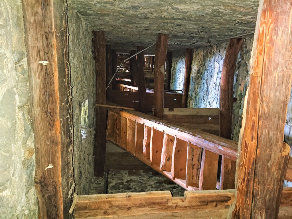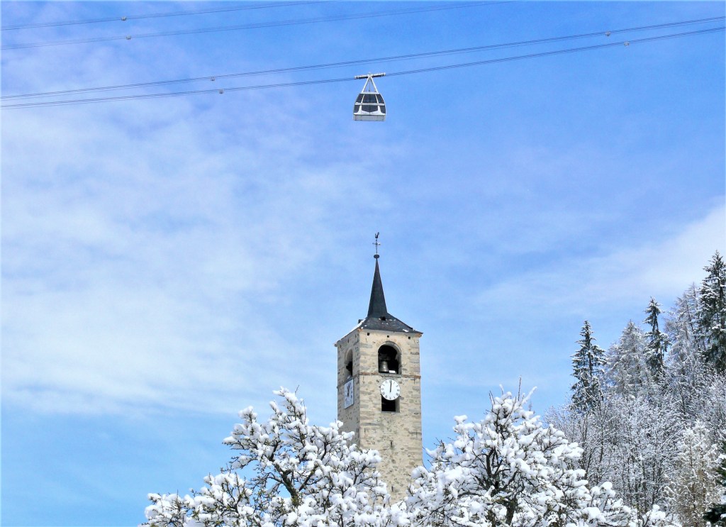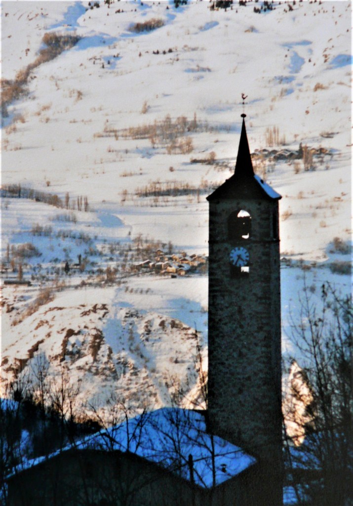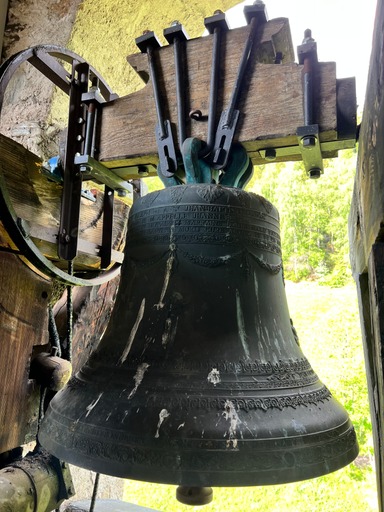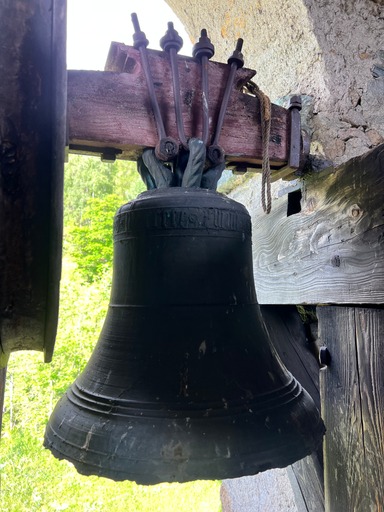 A l’intérieur du clocher se trouve un escalier de mélèze qui est lui même une oeuvre d’art : 8 volées de marches. Déconseillé à ceux qui n’aiment pas le vide.