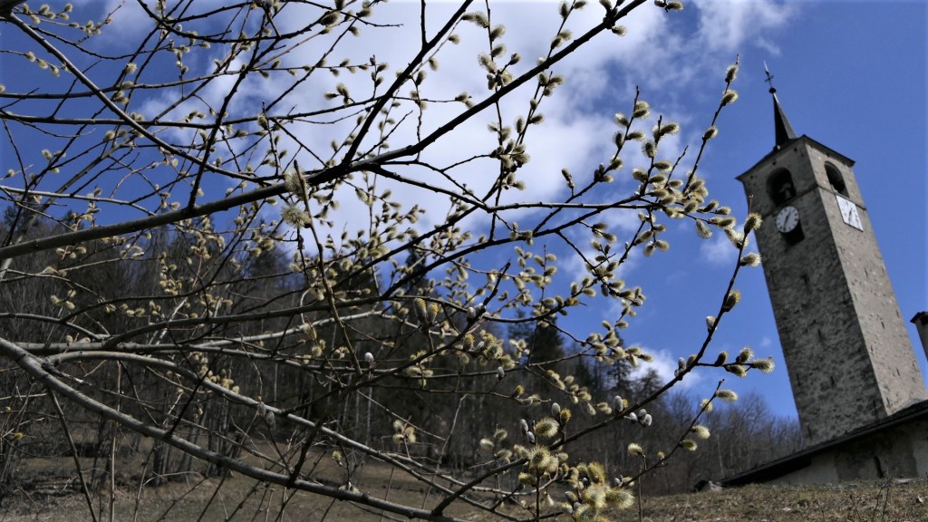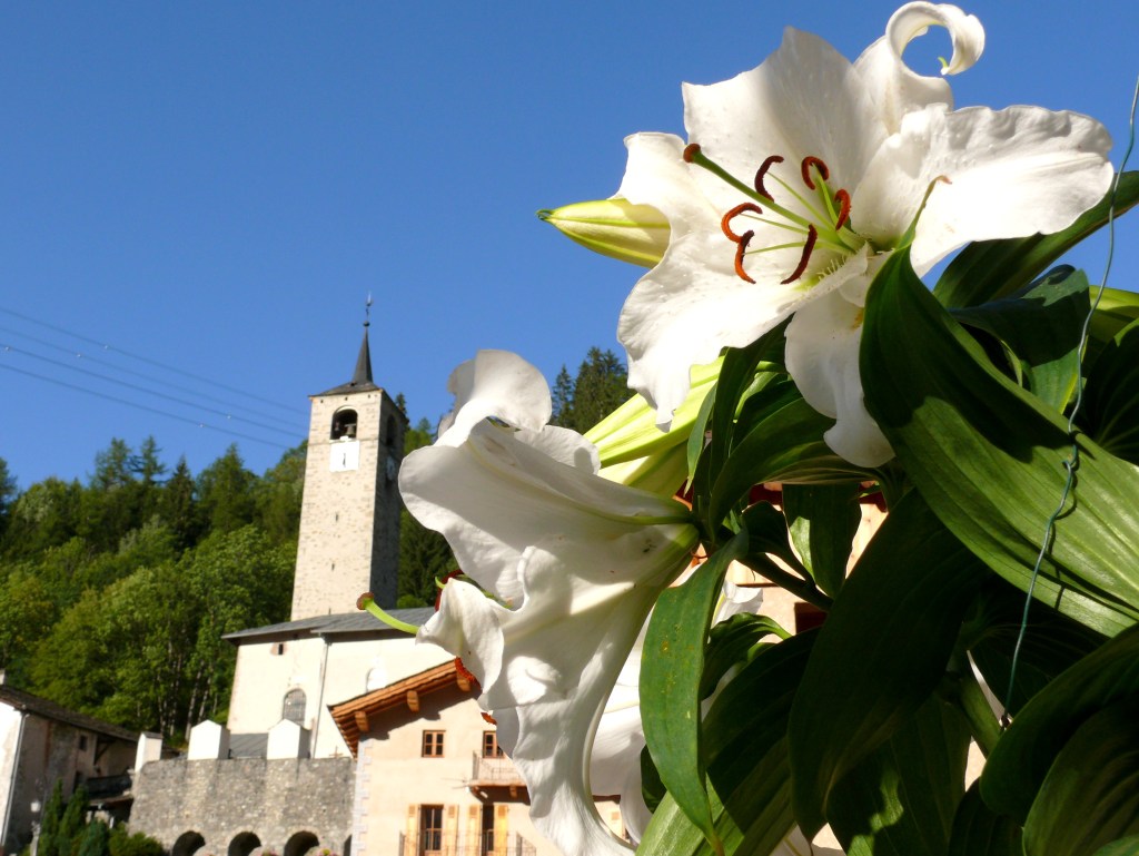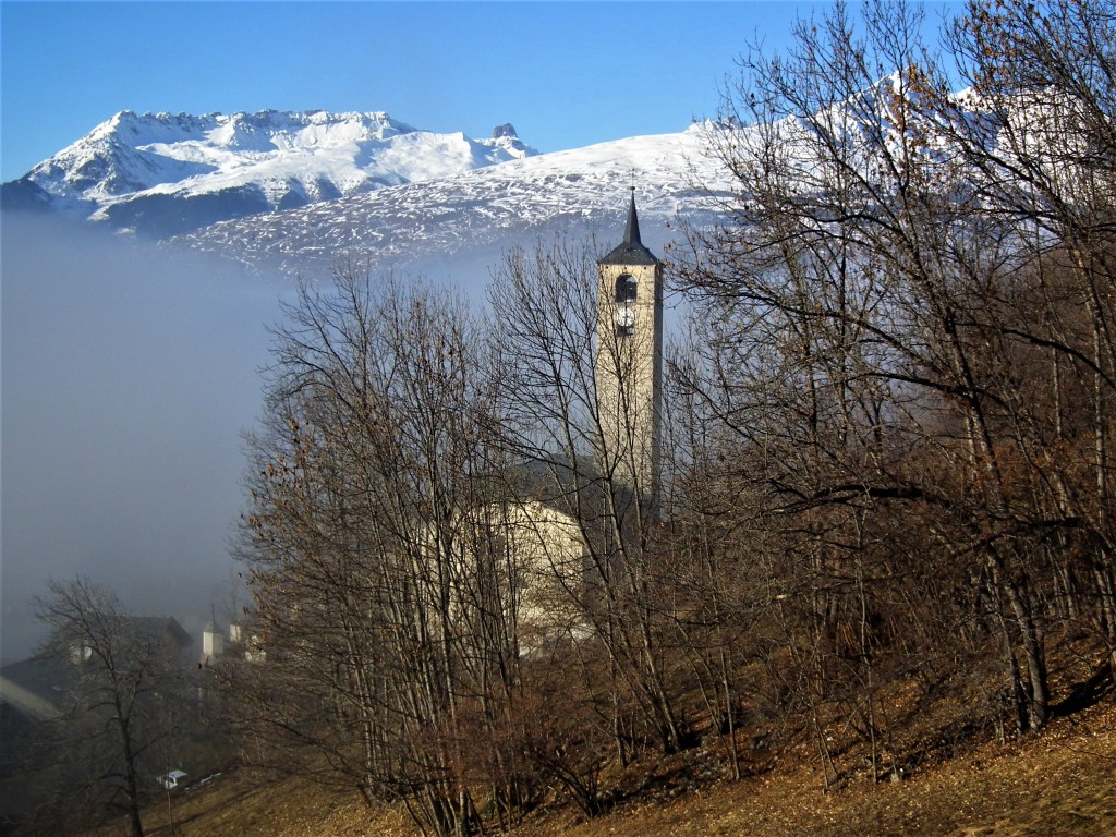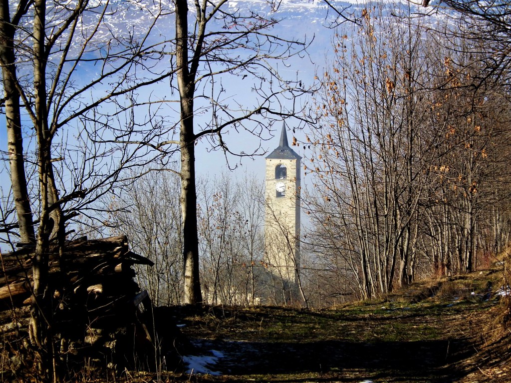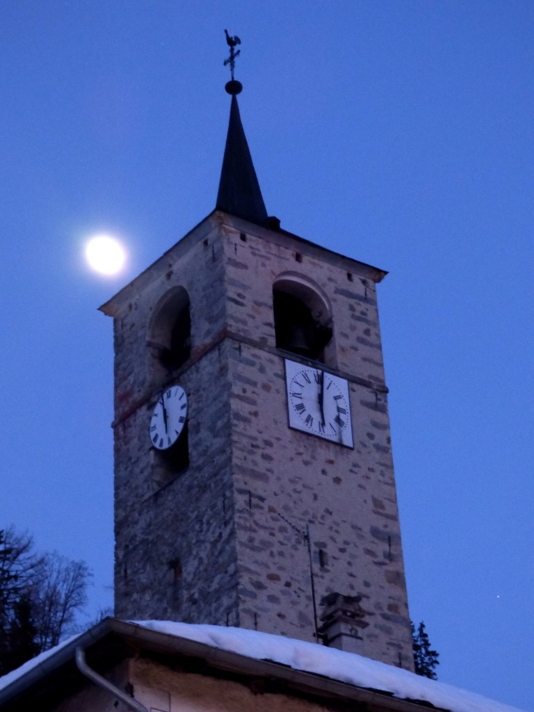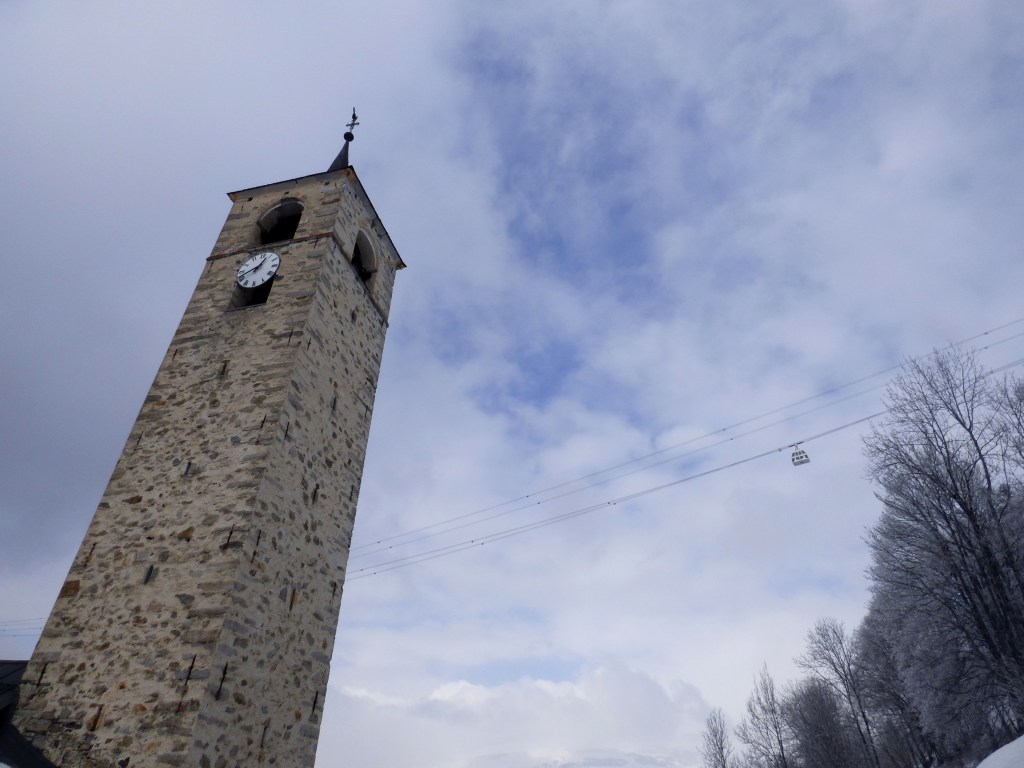 Le clocher a été construit en 1699 par Nicolas Calcia et son fils Pierre, aidés de Pietro Jachetto, maitres maçons originaire de la paroisse de Riva en Val Sesia, pour la somme de 2 760 florins , (somme équivalente à plus de la moitié de celle payée pour le bâtiment de l’église)