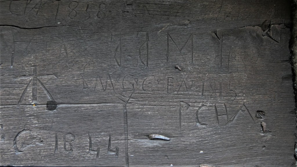 Quelques dates intéressantes : 1748, 1815, 1831, 1844, 1851, 1858, 1859, 1861, 1897, 1900. Des initiales, un beau petit chrisme, une étoile, des croix.
