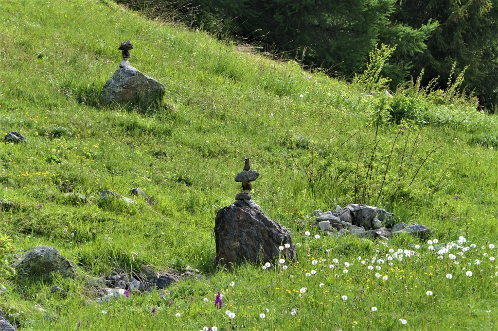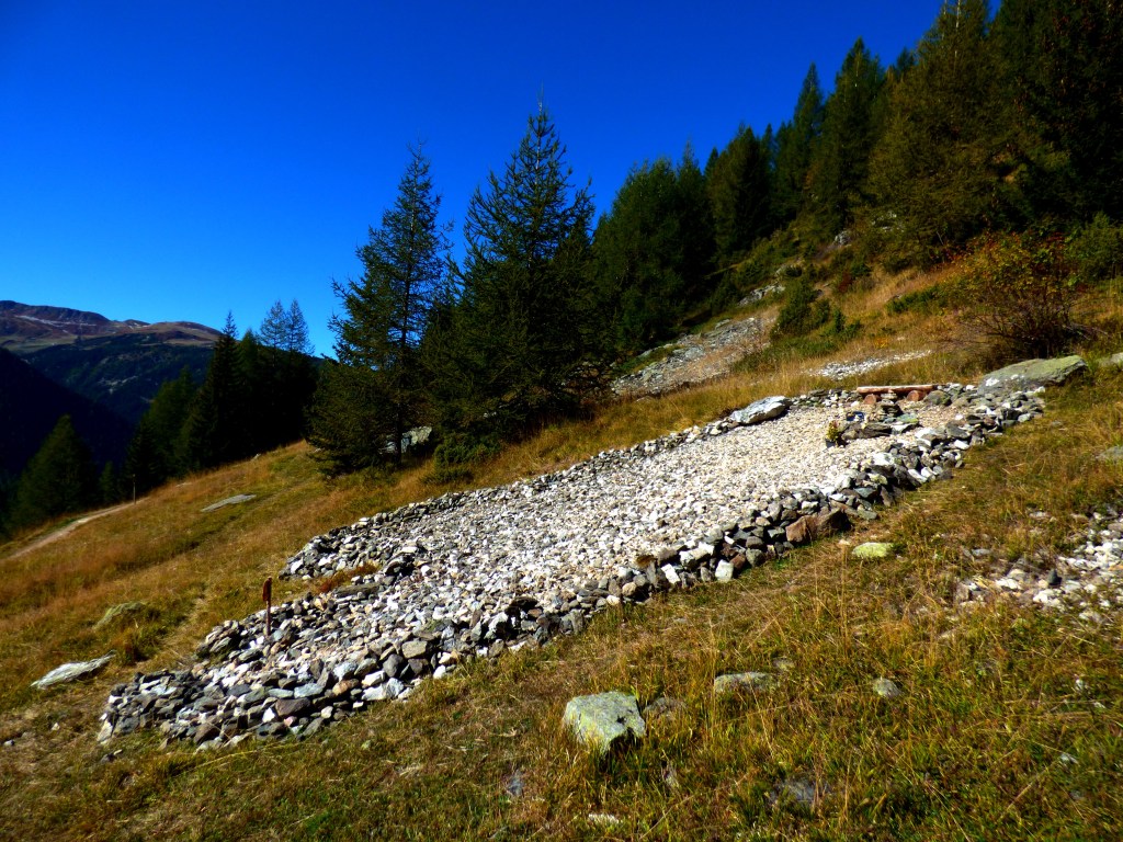 Nous avons donc aménagé petit à petit à partir de 2018 ce pierrier qui a une si belle vue sur le parvis du sanctuaire pour proposer un jardin du souvenir version montagnarde, au plus proche du naturel : relever simplement les bords en murets ( groupe de scouts !) pour que les animaux domestiques n’y aillent pas, ajouter un banc pour la prière (Don de la scierie Trésallet à Peisey)