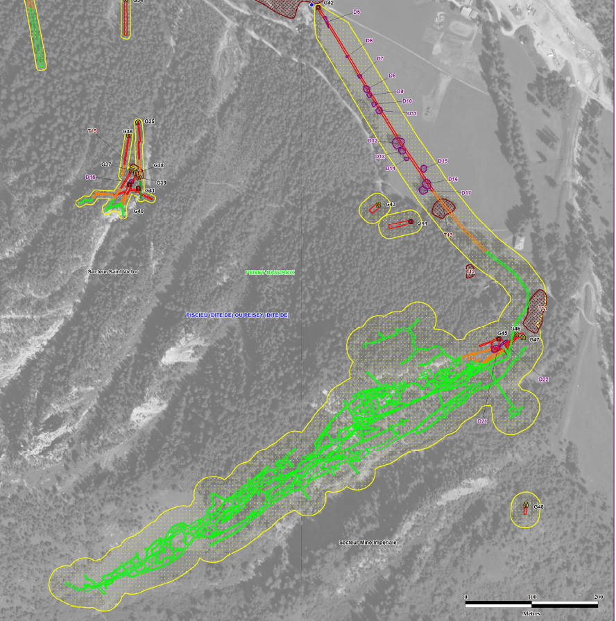 L’activité minière sur le filon de galène (plomb mêlé d’argent et de fer) a duré 154 ans, soit environ de 1712 à 1866. Elle a profondément marqué la vallée de Peisey dans toutes ses dimensions : écologie, économie, démographie.
