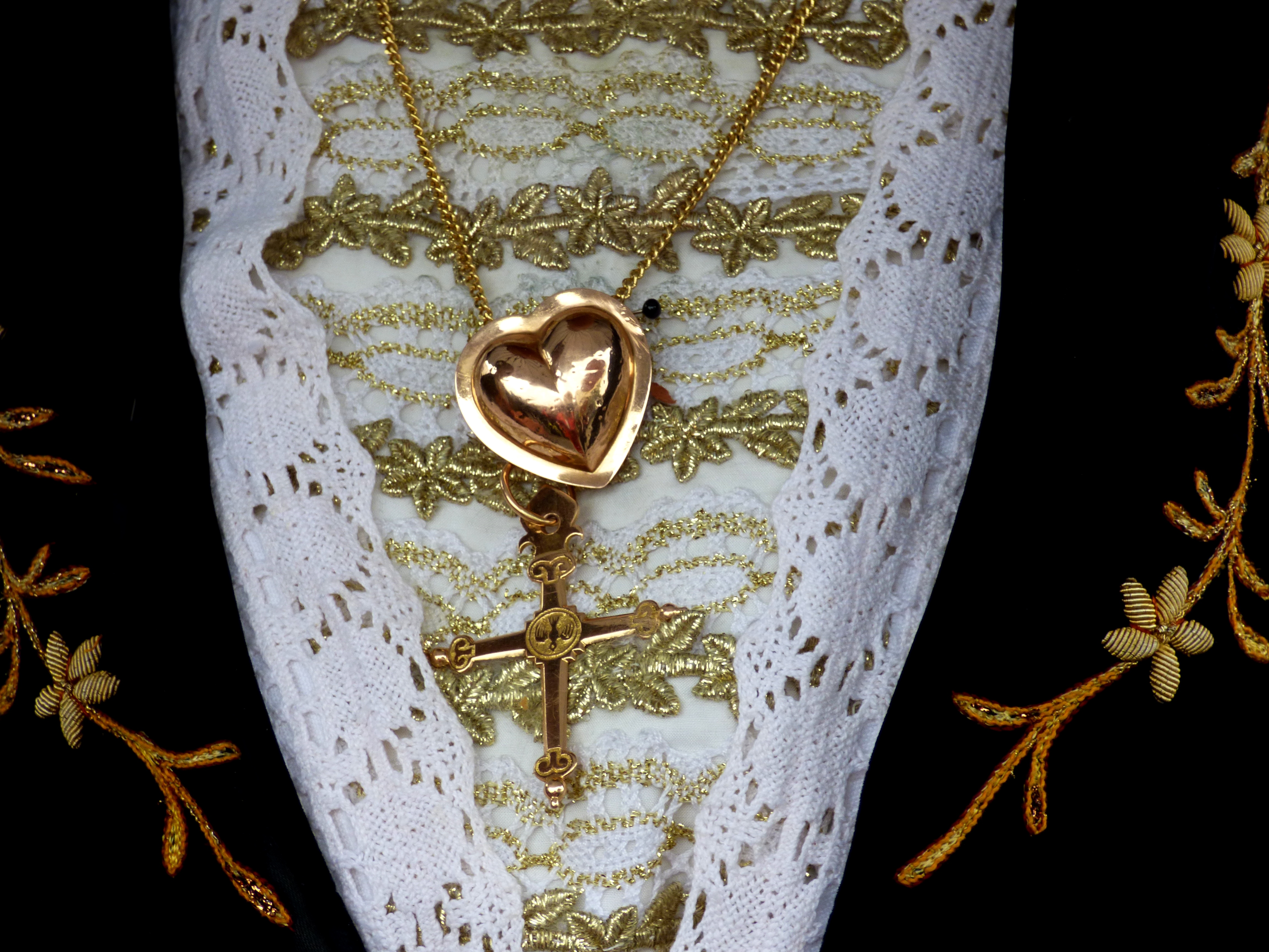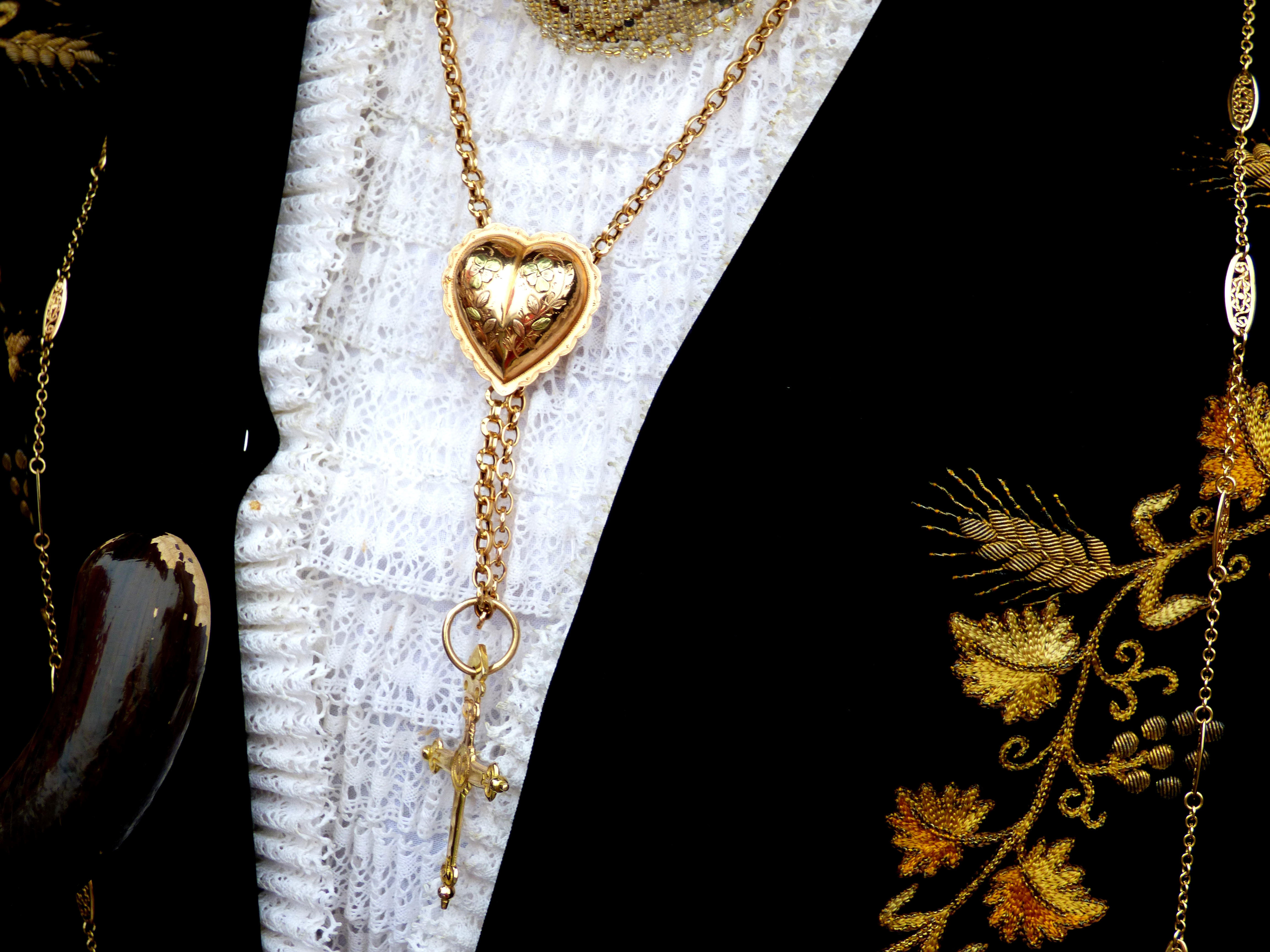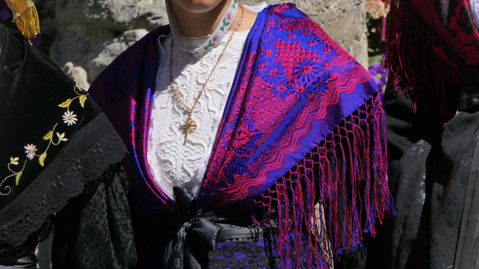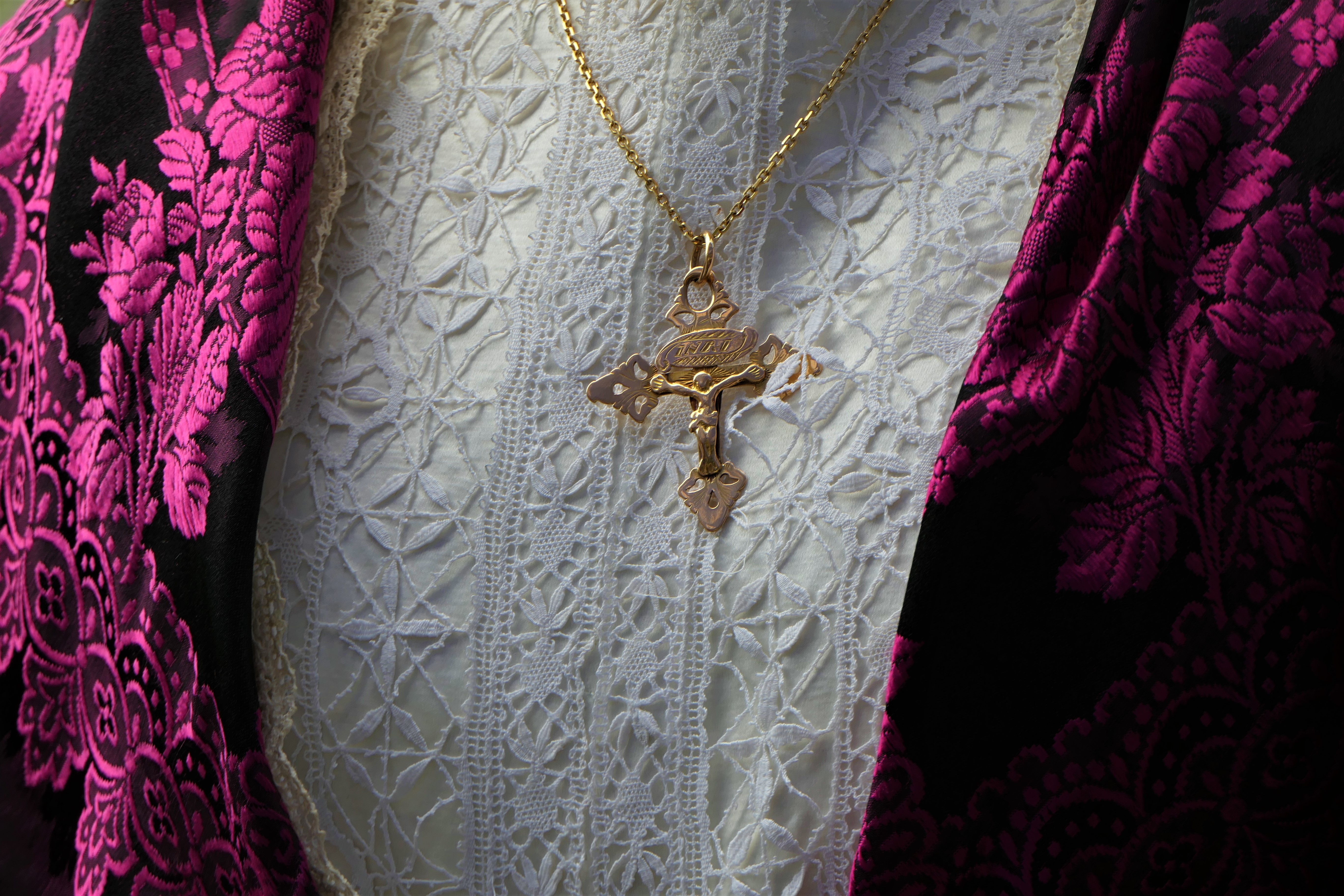 Il est bordé d’une dentelle qu’on fixe sur le châle : la modestie. Elle fait le lien entre le motif ou la matière du plastron et le motif ou la couleur du châle.