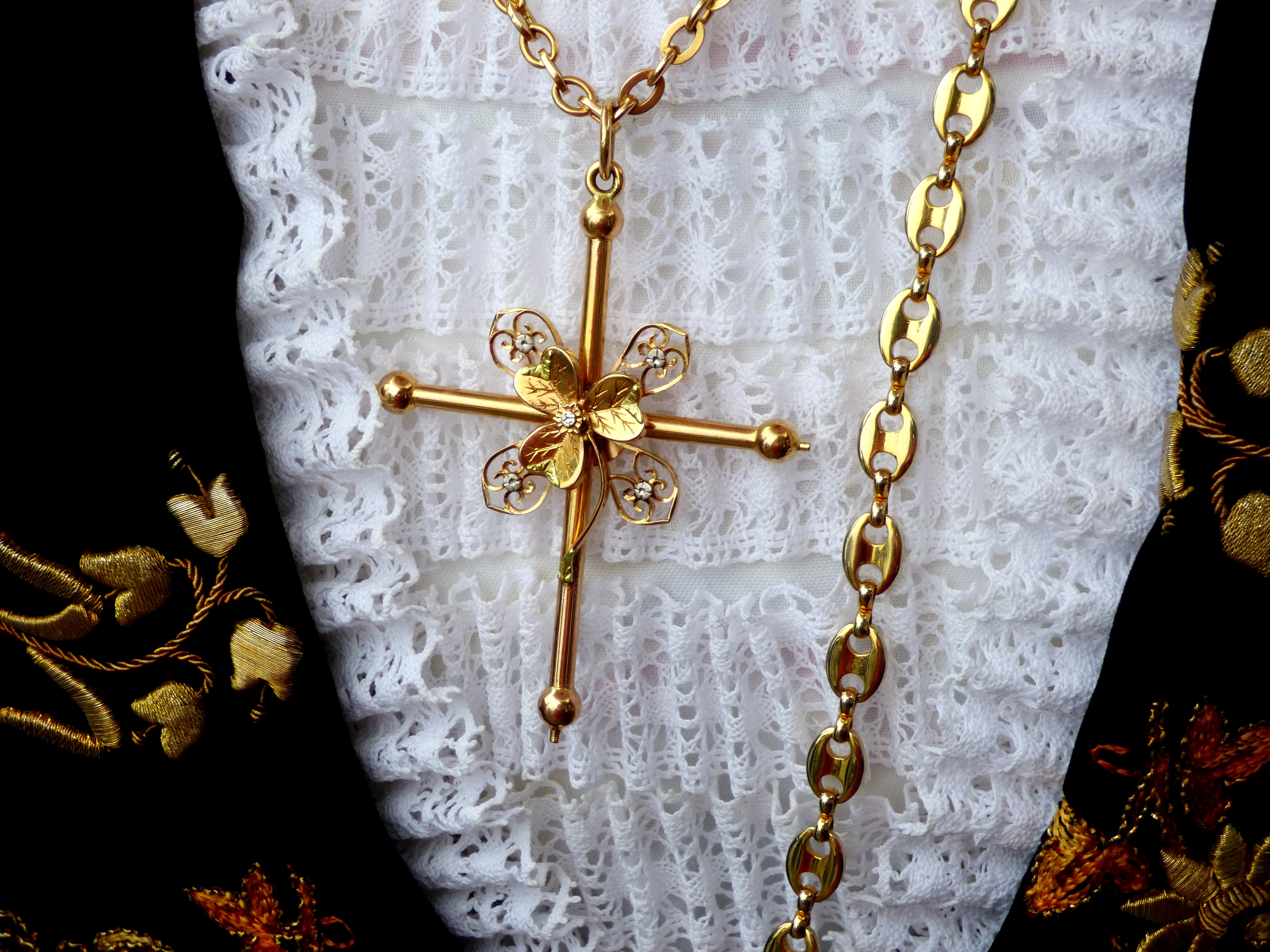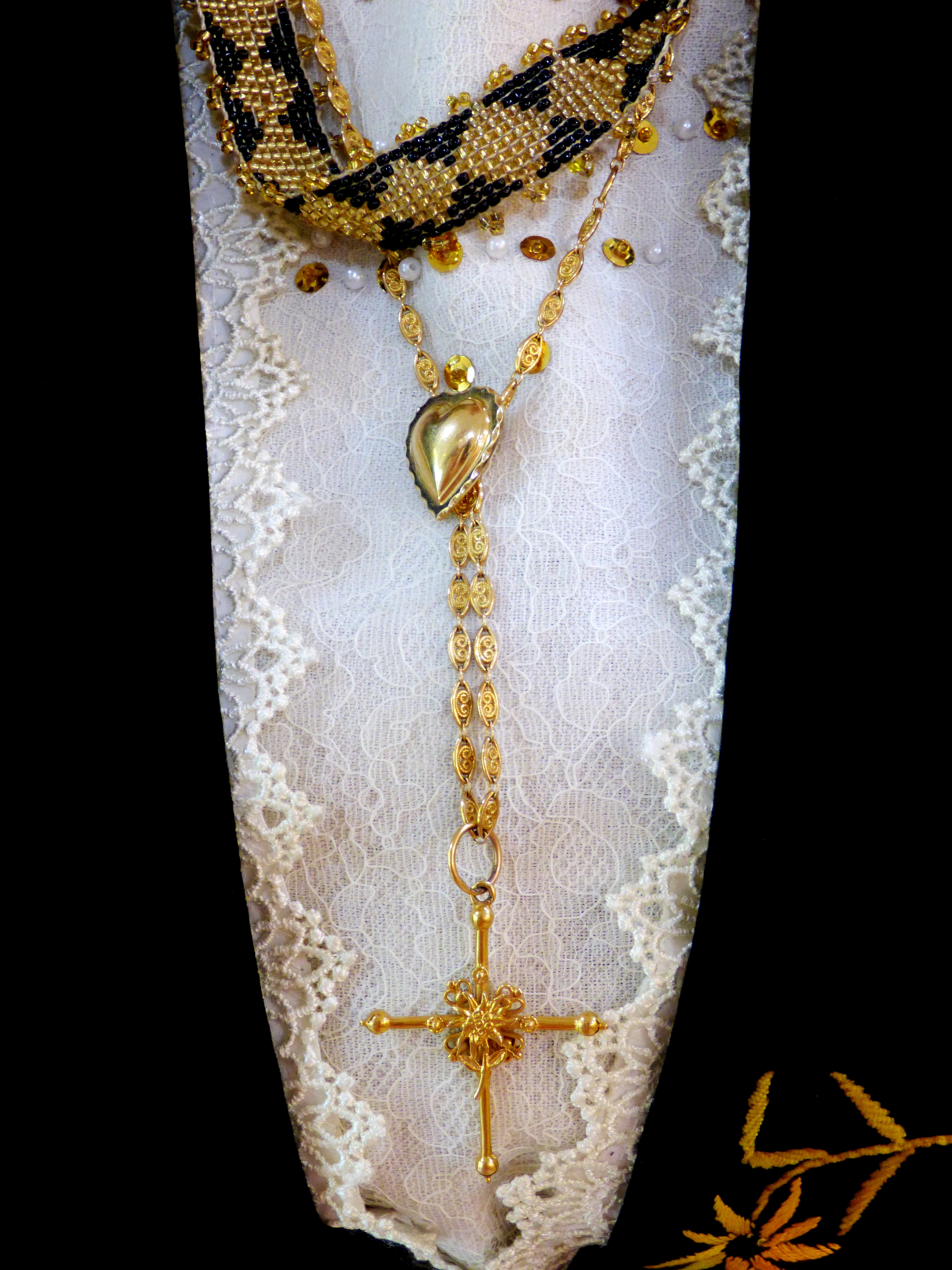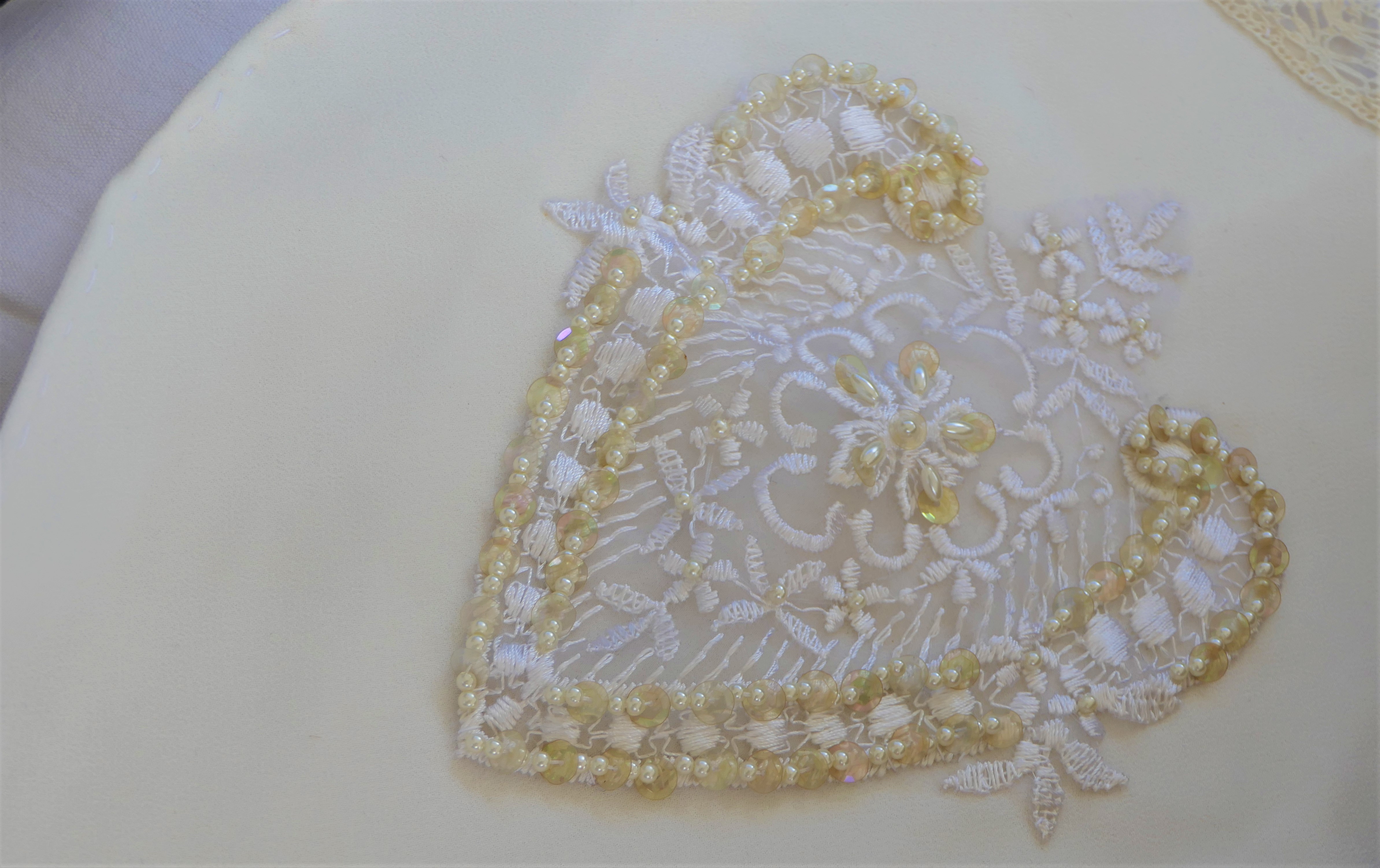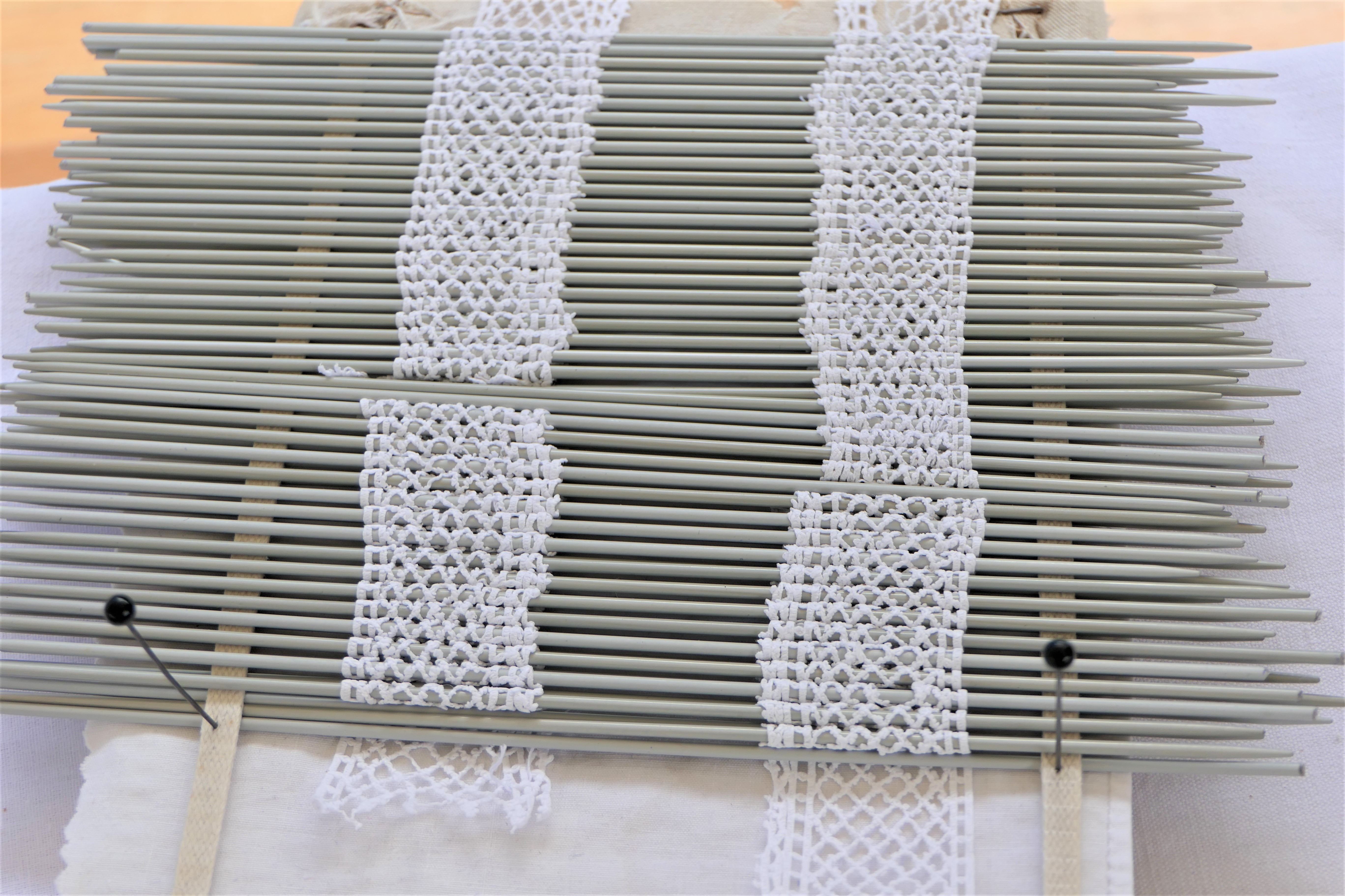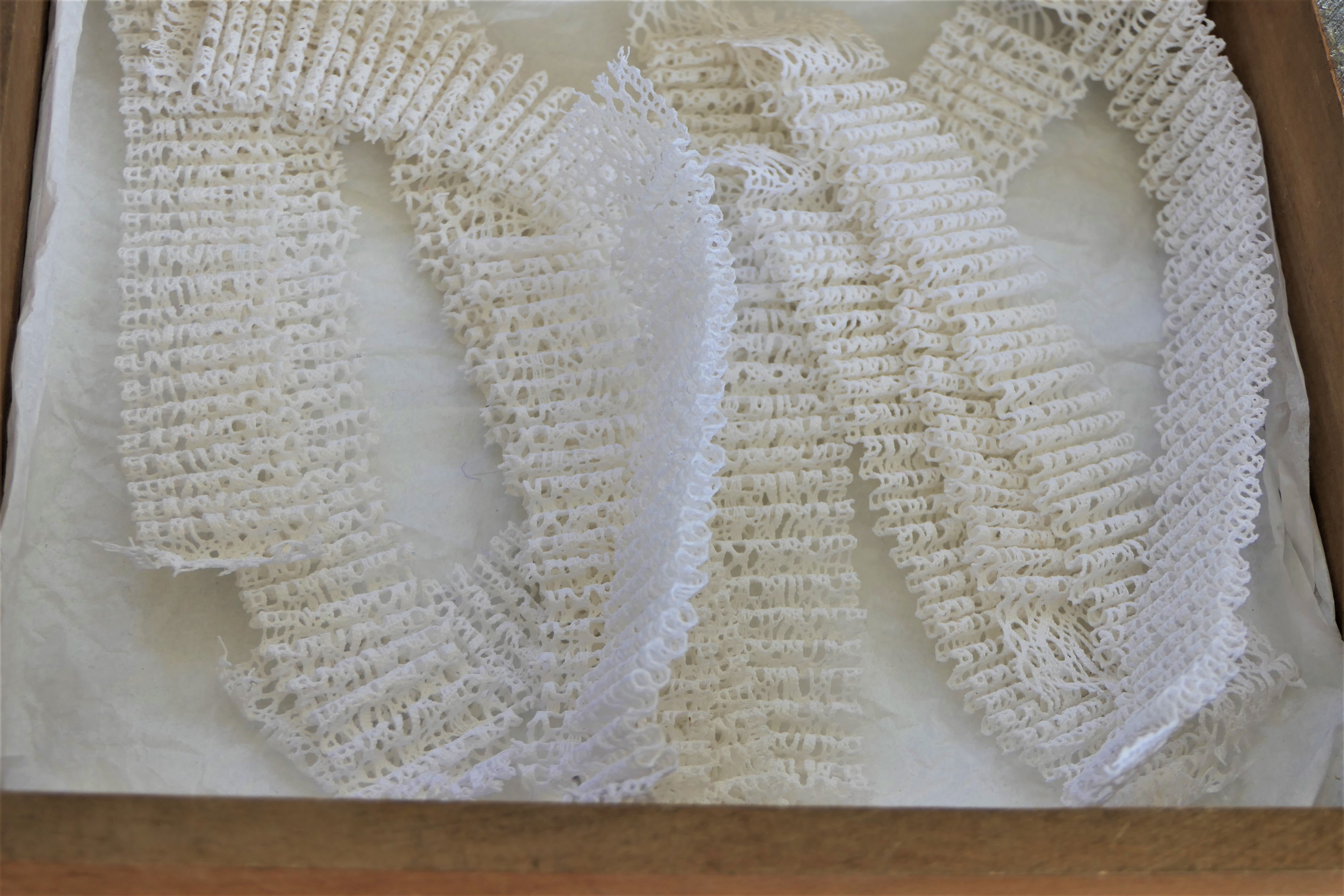 Il est bordé d’une dentelle qu’on fixe sur le châle : la modestie. Elle fait le lien entre le motif ou la matière du plastron et le motif ou la couleur du châle.