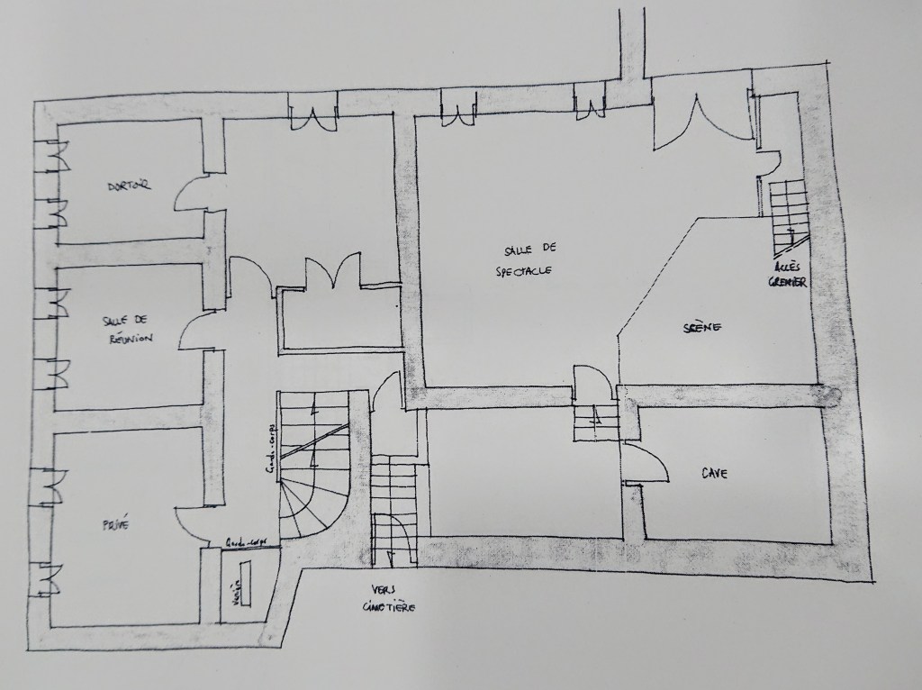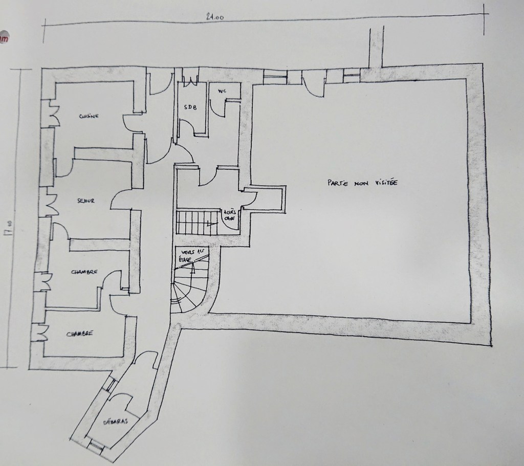 A part cela, rien n’a vraiment changé : de très larges murs, des “dalles” d’époque, faites de 2 gros planchers séparés par une grosse couche de plâtre, des voûtes, un bel escalier de bois.