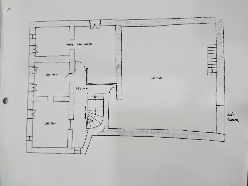 2 fenêtres au sud ouest ont été agrandies dans les années 1950, quand on a installé l’électricité, posé du linoléum dans 2 pièces à vivre, mis un frigo, mis un WC dans une réserve. A l’étage les chambres ont autrefois reçu des groupes de jeunes, puis un petit musée. Sous les toits, un espace a été installé en cabinet de photographe amateur.