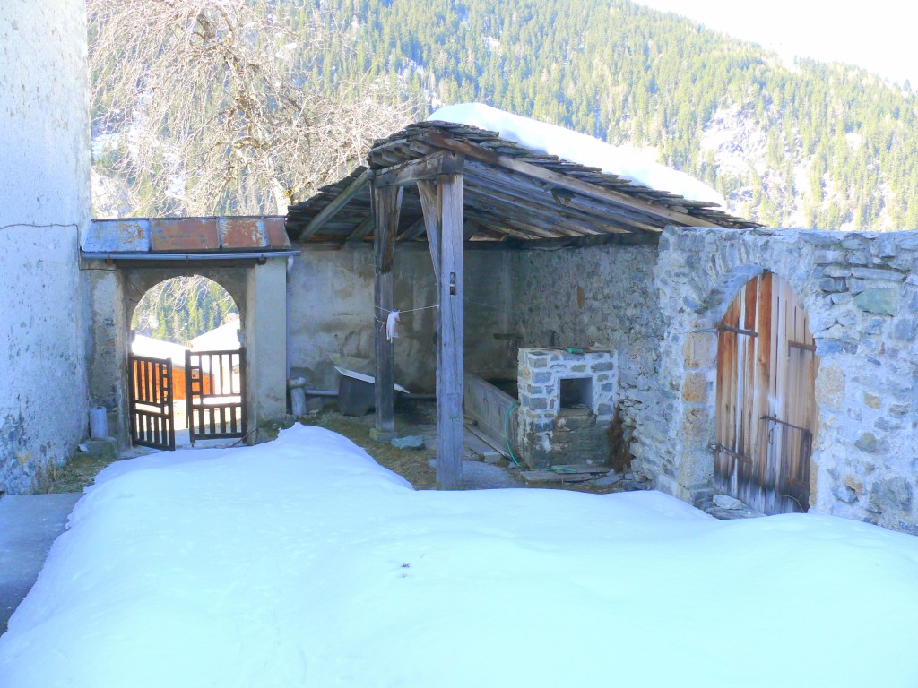 Le curé avait mulet, moutons, chèvres, vaches. On trouve donc dans la cure des écuries (devenues les salles de catéchisme) des granges (partiellement devenues une salle de spectacle après-guerre !), des caves (la cure était propriétaire de quelques parcelles de vigne au dessus de Aime, pour le vin de messe). La cure disposait dans son enclos d’un bachal privatif. L’enclos est également ouvert d’une haute porte voutée qui permettait de rentrer une charrette de foin.