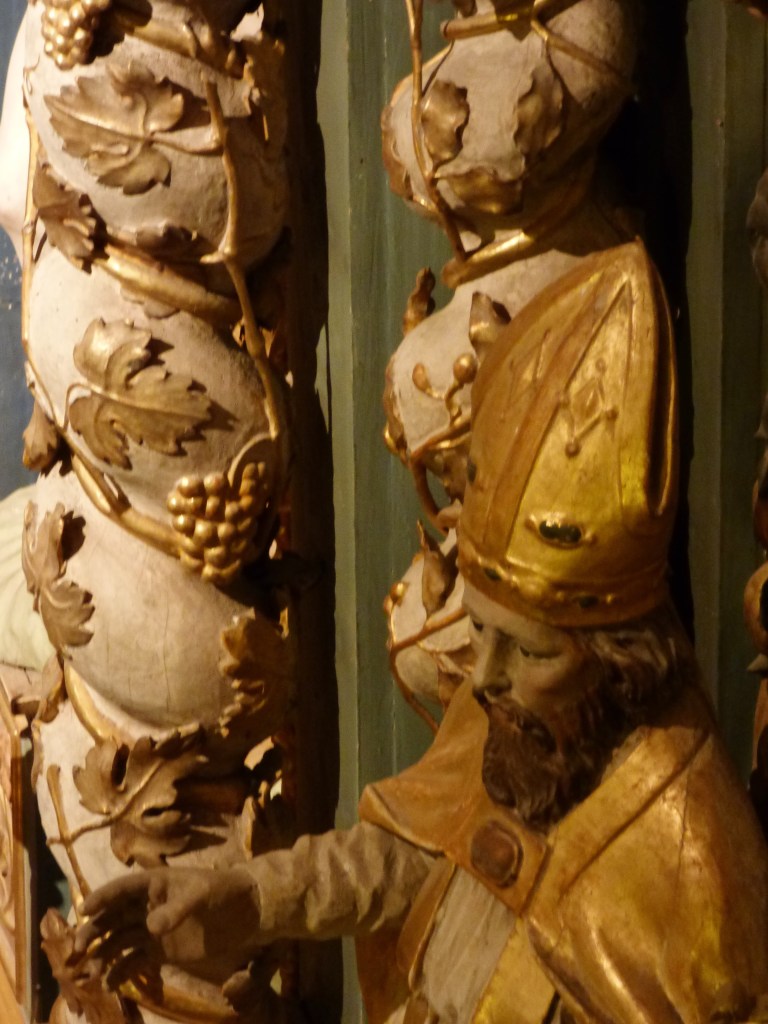Il est représenté ici avec son calice. Depuis la tribune, on voit que le calice est troué, mais qu’il n’y a rien dans ce trou. Pour comprendre pourquoi, on lira l’article suivant :