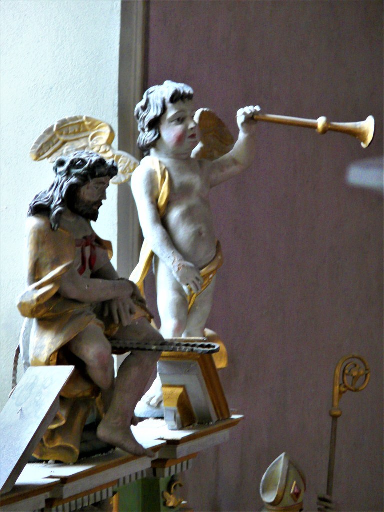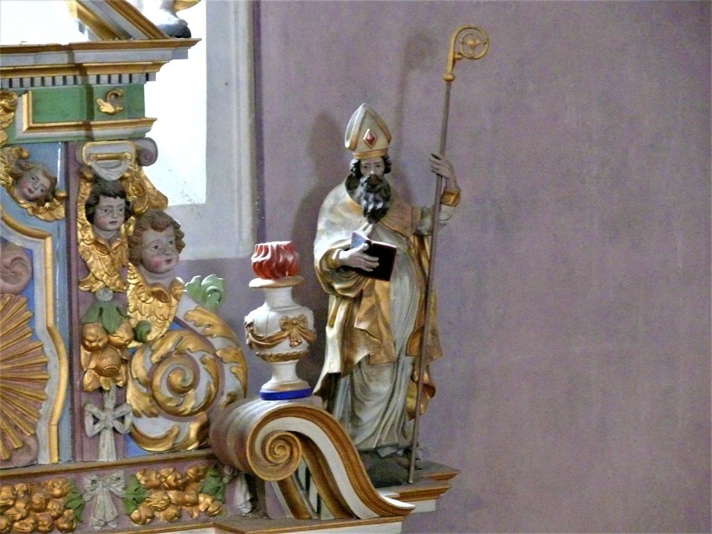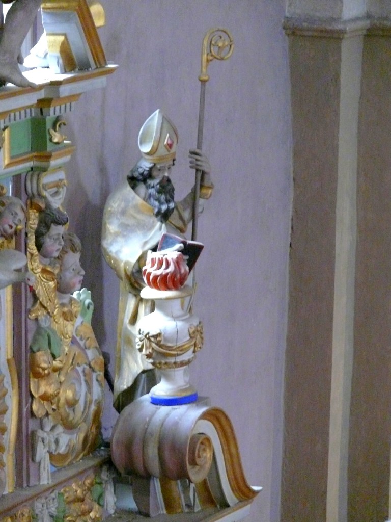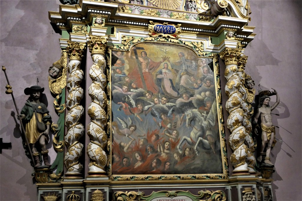 On remarque en face du retable, au sud du pilier, le « tronc aux ame du purgatoire » (qui a ravi des générations d’écoliers à cause de la faute d’orthographe gravée pour l’éternité !)