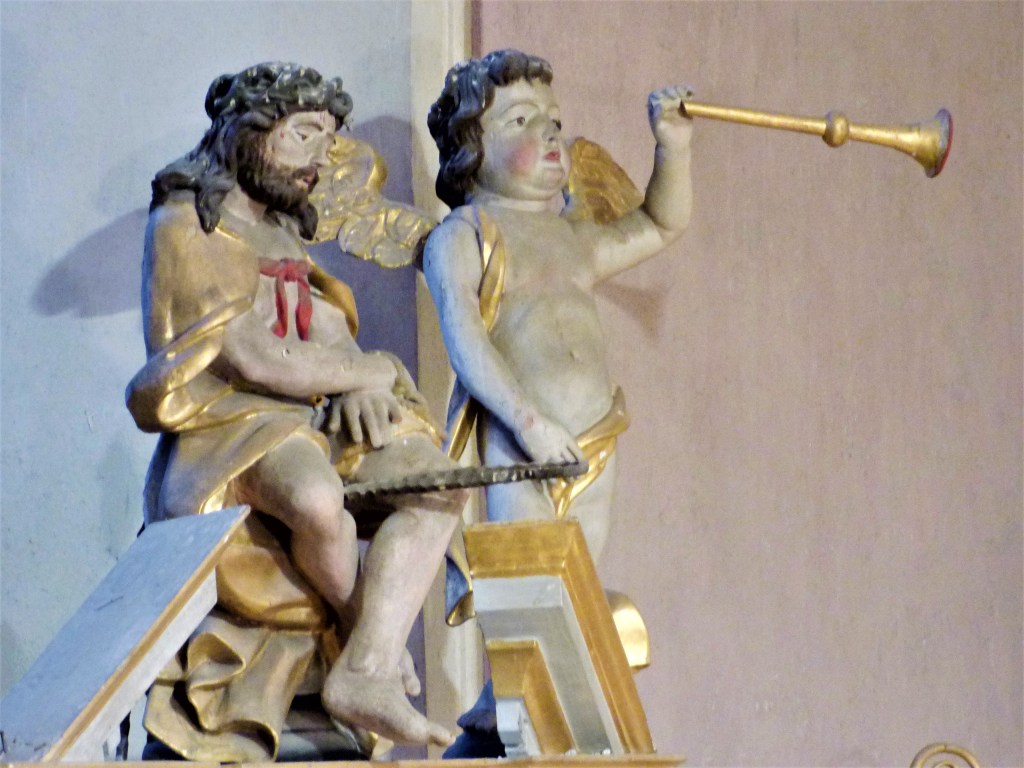 Les épidémies de peste ont pourvu le purgatoire en âmes qui n’ont pas eu le temps de se préparer à la mort. Quand ce retable est construit, la dernière attaque sur la petite société de Peisey date d’un demi siècle.