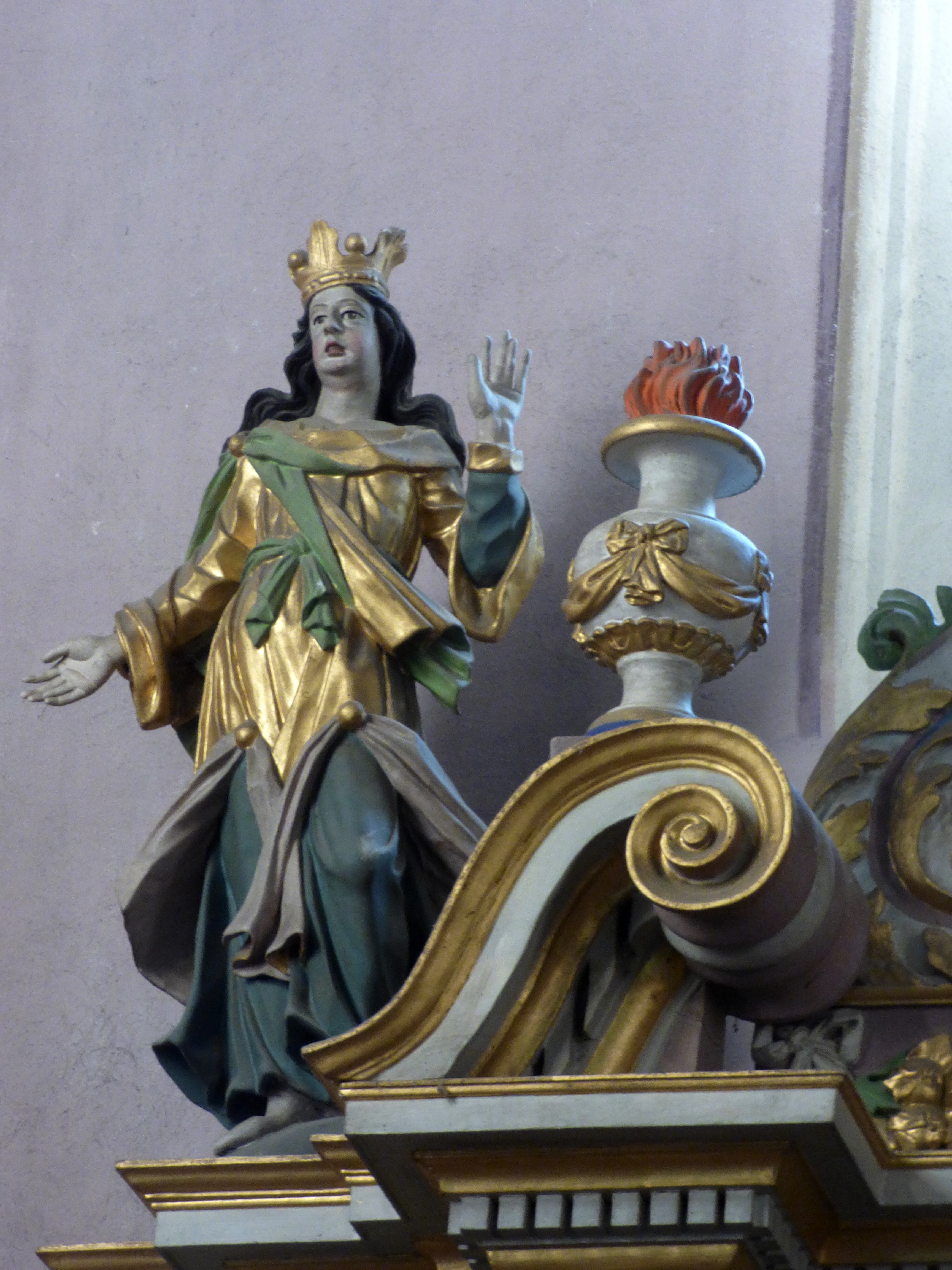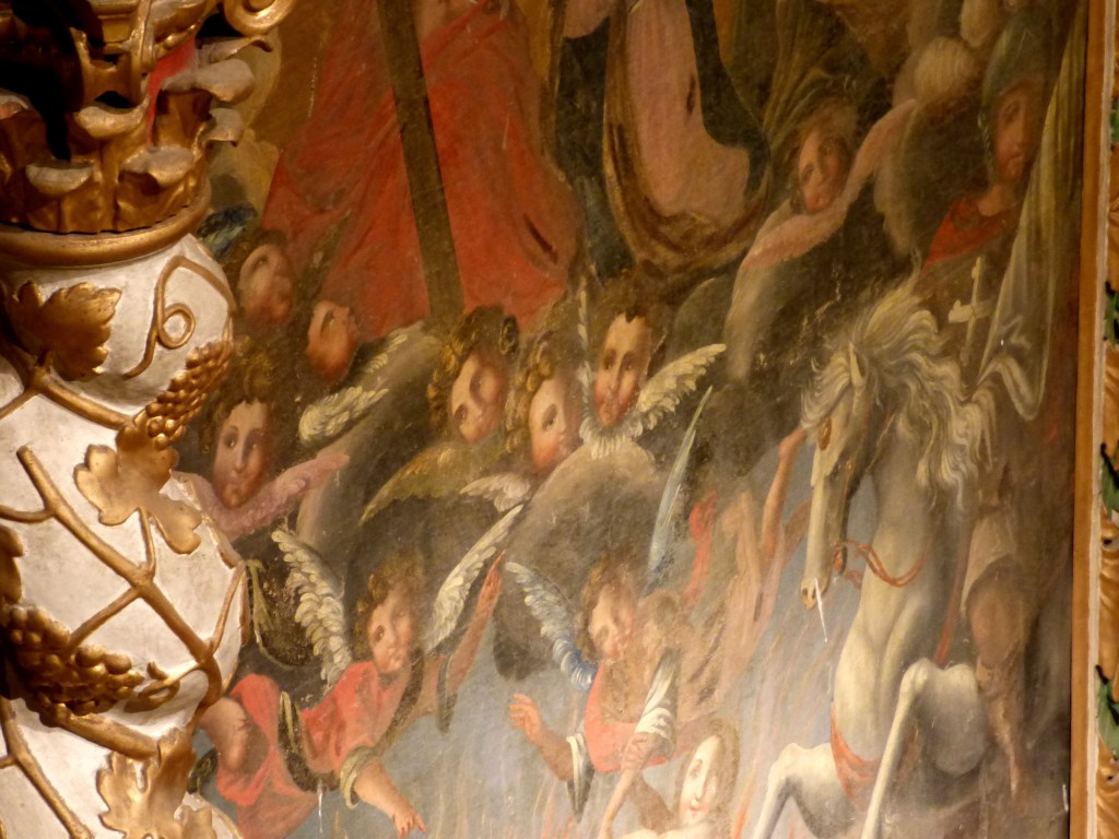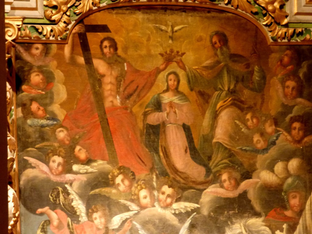 la Sainte Trinité, à laquelle est dédiée cette église, est présente sur tous les retables, d’une façon ou d’un autre. Un Dieu unique en trois personnes distinctes : le Père, le Fils et le Saint-Esprit, égaux, ayant la même substance divine, principe fondateur commun aux principales confessions chrétiennes : catholicisme, orthodoxie et protestantisme. Le fondement de cette doctrine est exprimé lors 1er concile de Constantinople en 381.