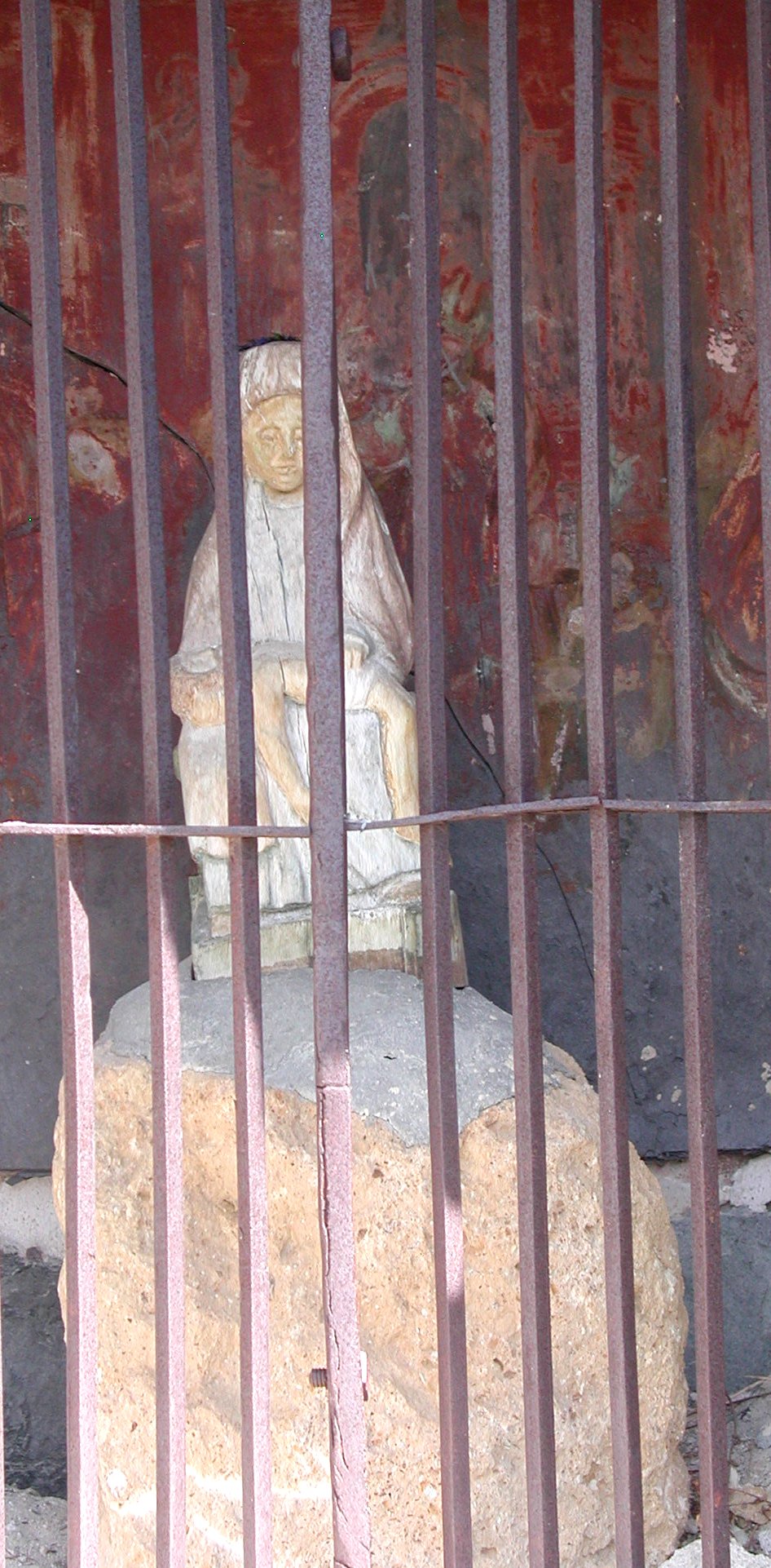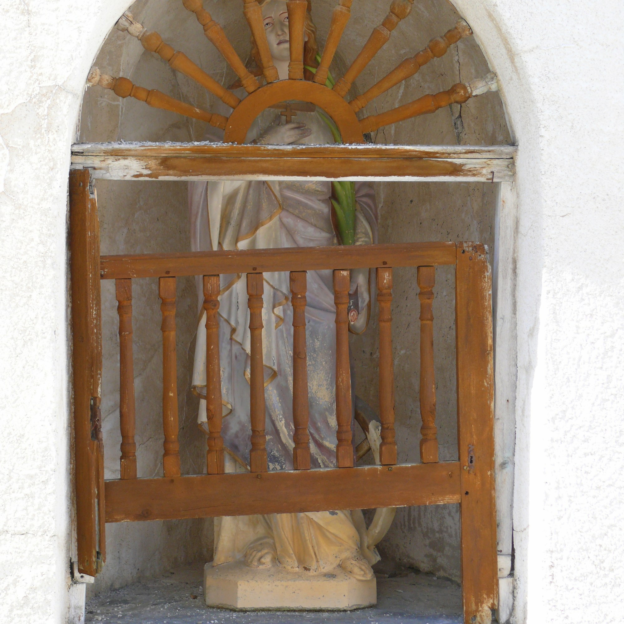 Ancienne chapelle. Oratoire qui fait angle au point le plus haut des voutes, dans l’axe de la ruelle qui monte du village. Seul oratoire qui contienne une statue : celle de Sainte Catherine, datant du 19 ème siècle. Seul oratoire avec un toit pyramidal surmonté d’une croix tarabiscotée .