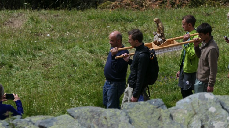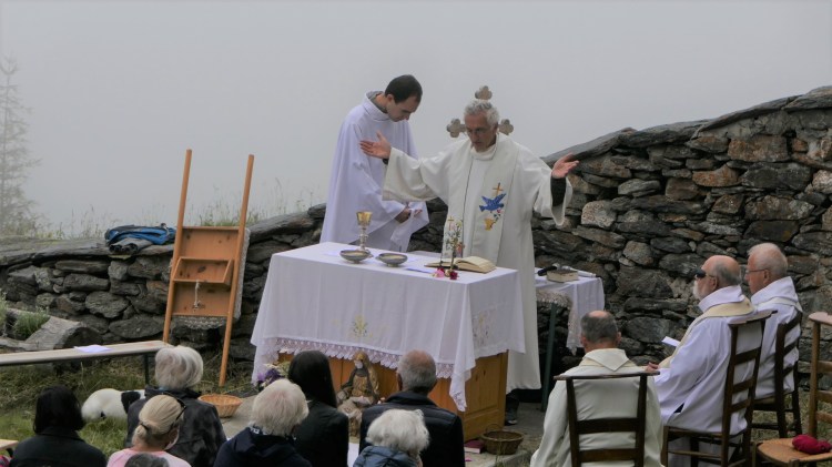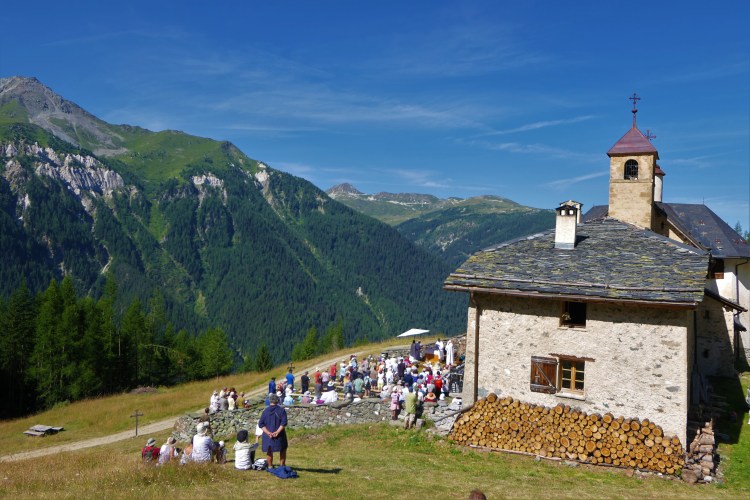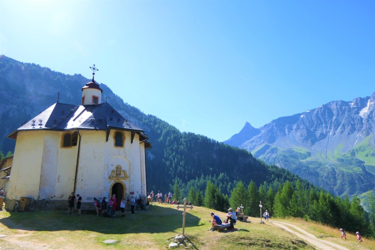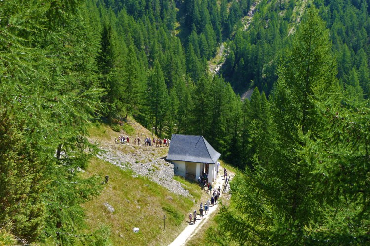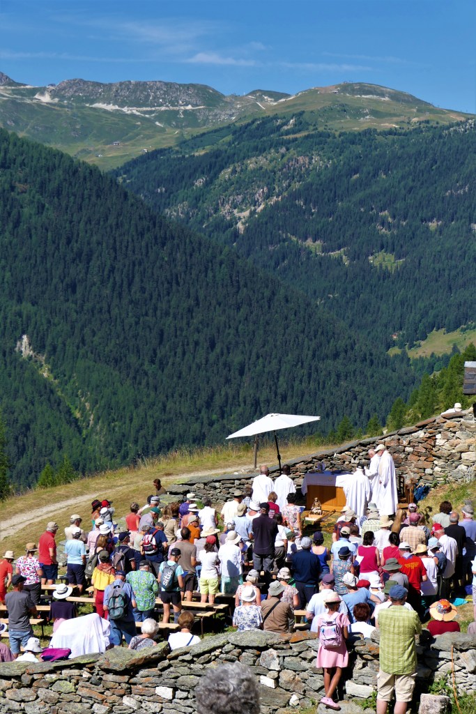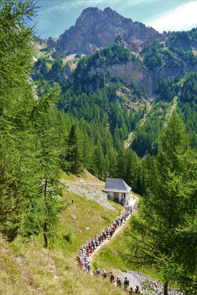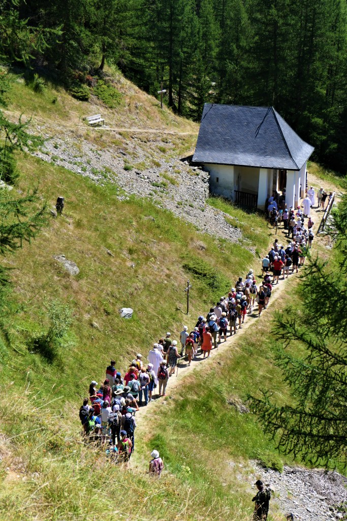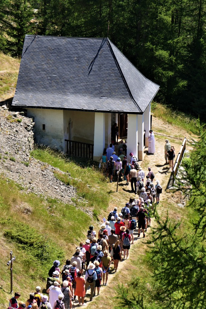 La semaine réservée aux habitants de Peisey était celle qui suivait Pâques. Le pèlerinage “local” de cette vallée était le lundi de Pentecôte. Tout le monde était encore au village, avant que ne commence la migration avec les bêtes jusqu’aux hautes pâtures. Avant que ne commencent les travaux harassants des foins et moissons. Ce pèlerinage est tombé en désuétude au début du 21ème siècle.