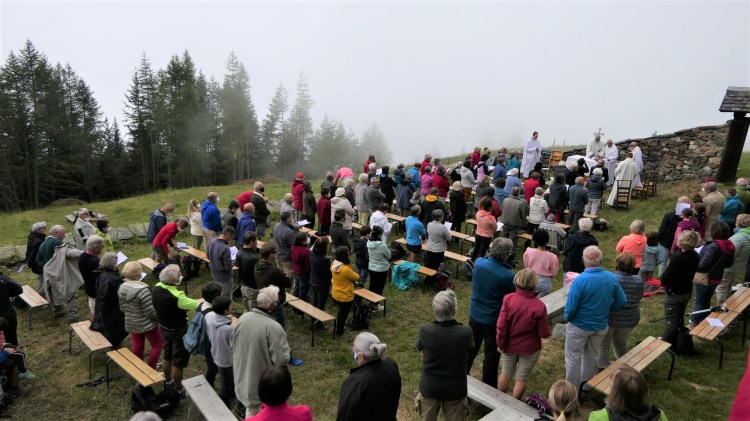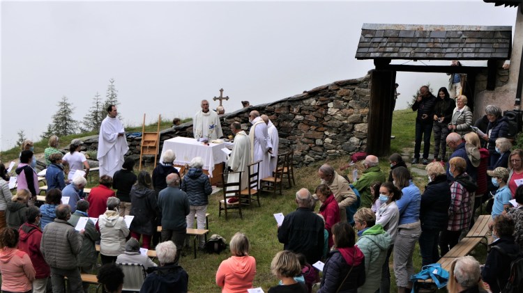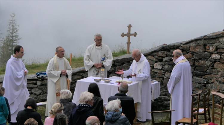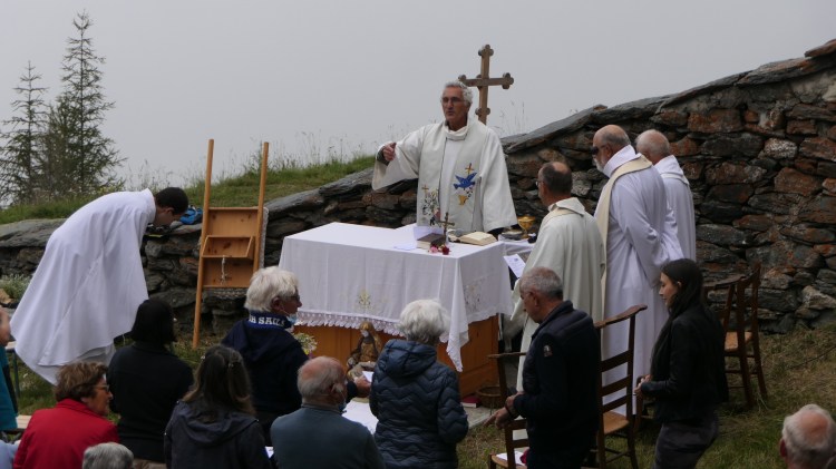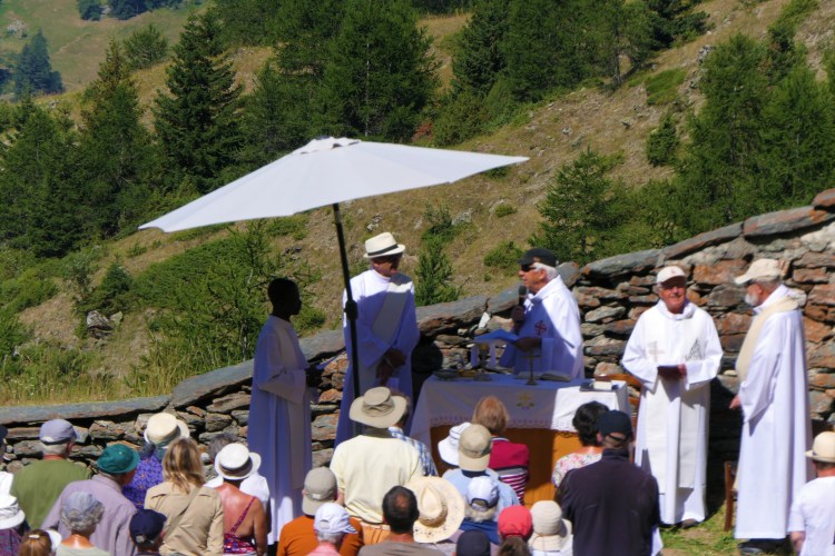Un pèlerinage par un samedi de très grand beau temps, peut-être trop : une chaleur torride a découragé les plus âgés.