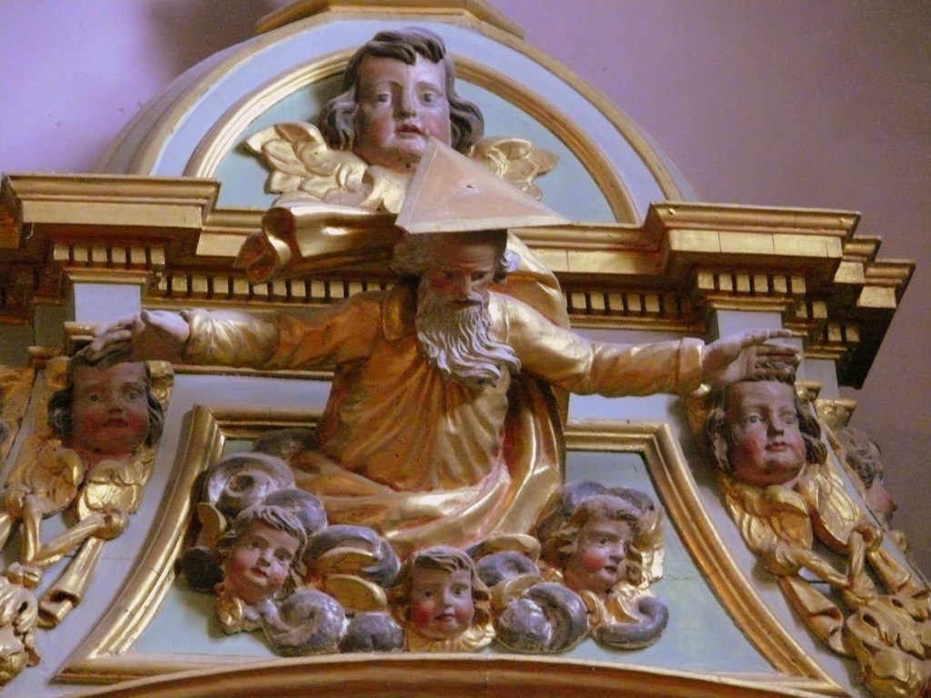 St Dominique, Ste catherine de Sienne, St Jean, St Pierre et Dieu le père coiffé d’un triangle.