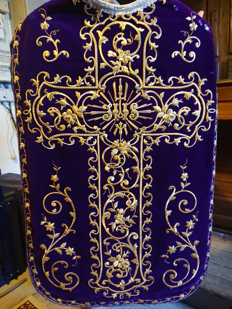 – chasubles, étoles, chapes, dalmatiques, tuniques, voile huméral