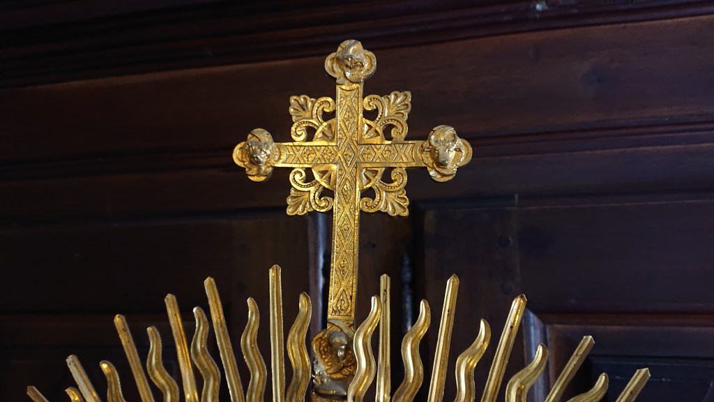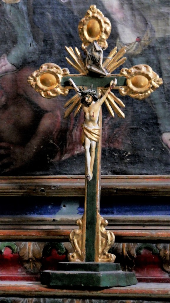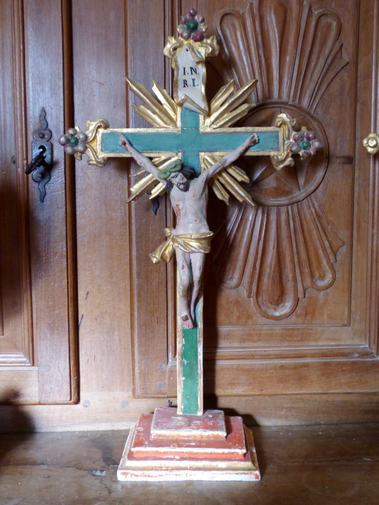 Normalement, chaque autel de l’église et des chapelles est muni d’un crucifix, ainsi que chaque retable. donc 7 à Peisey, 6 dans les chapelles et oratoires, 4 aux Vernettes. 17 crucifix ?