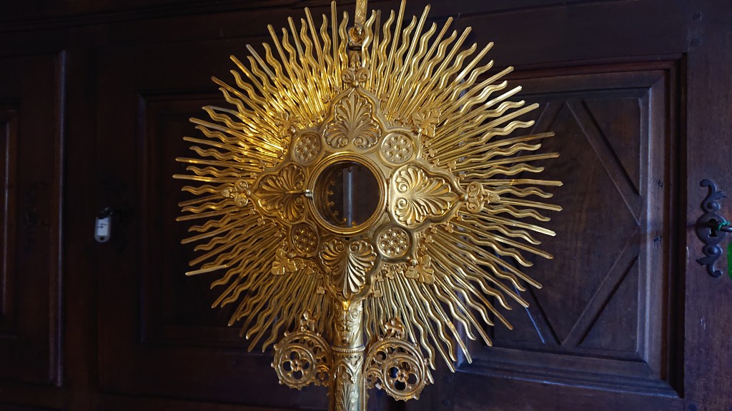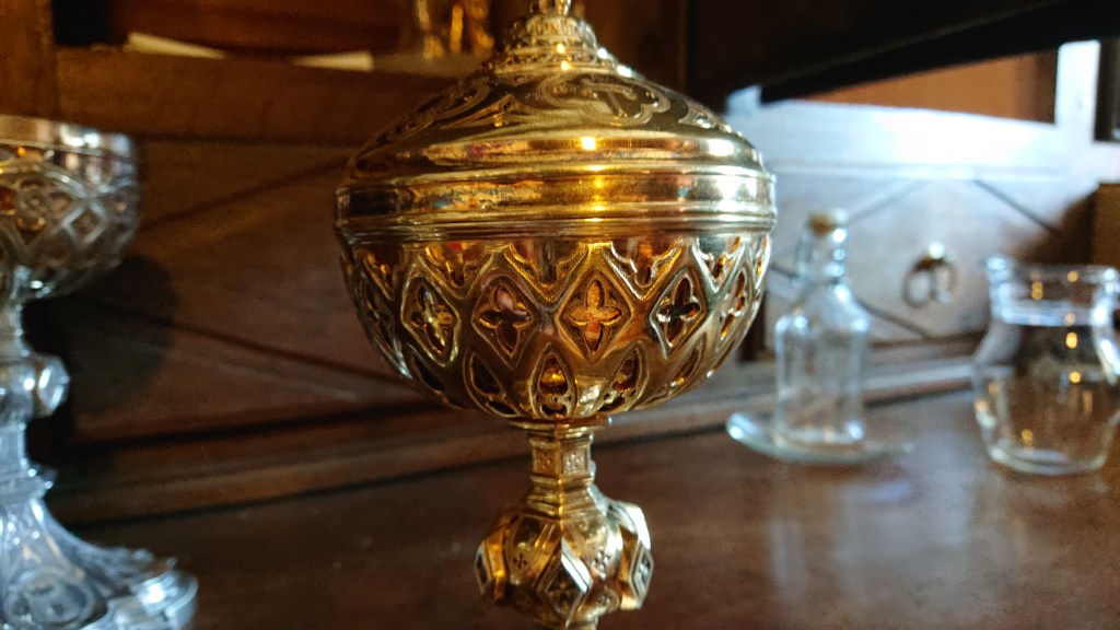 Une custode est un vase liturgique ayant la forme d’une petite boite ronde. Elle sert à porter au domicile d’une personne malade ou mourante le saint sacrement. (le mot vient de “custos”, gardien en latin. D’où aussi la custodie de terre sainte, groupe franciscain gardien des lieux saints)