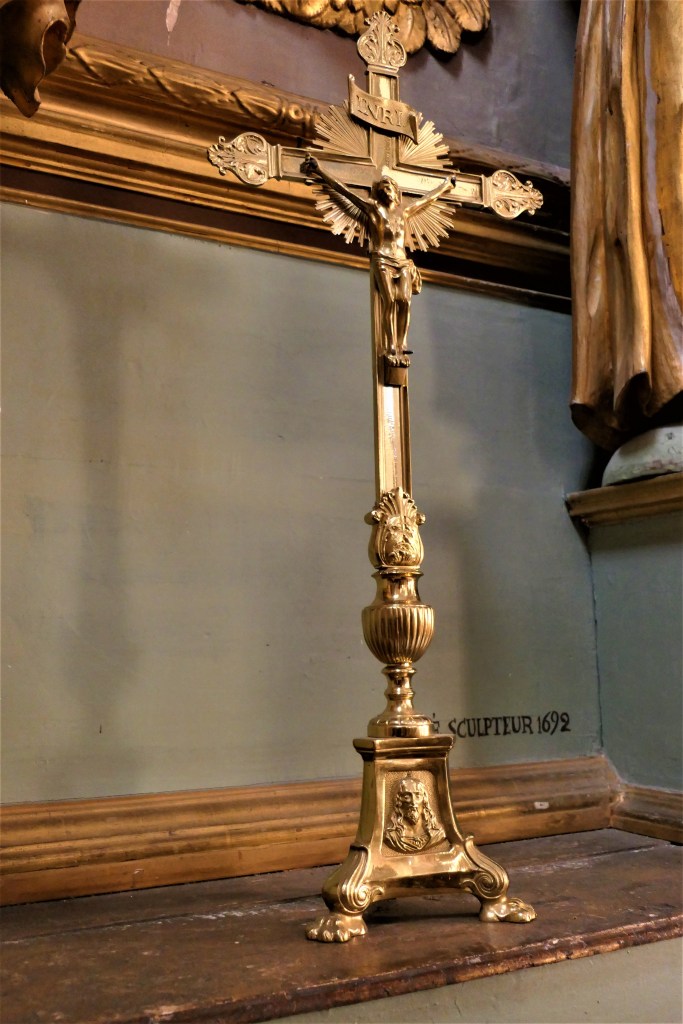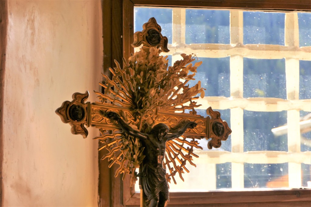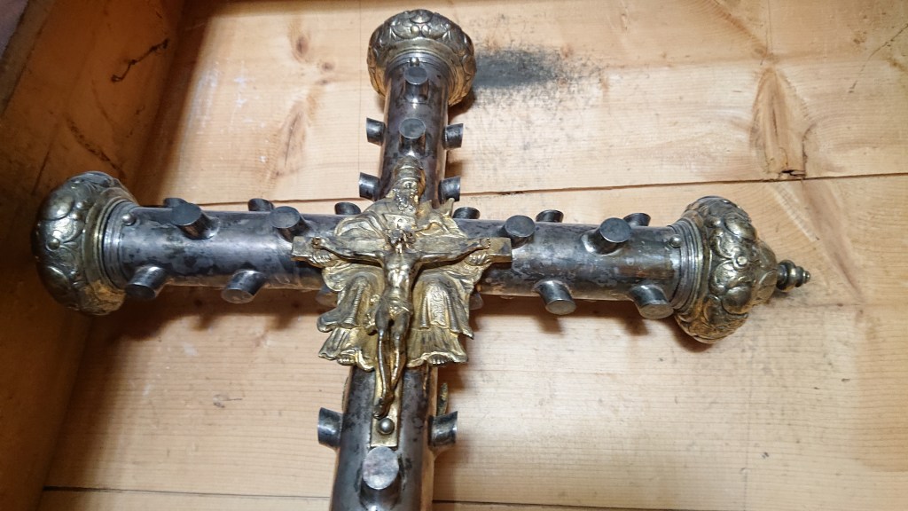 Il n’est plus possible de laisser ces crucifix sur les autels des retables à cause des vols. La plupart sont donc à l’abri…
