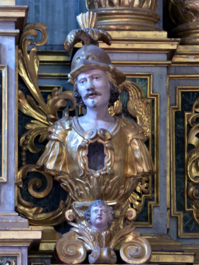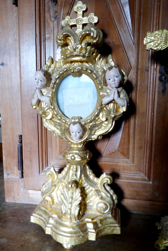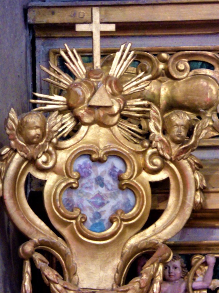 3 reliquaires sur le retable principal de l’église de Peisey , dont 2 bustes reliquaires encadrent le tabernacle de l’église.