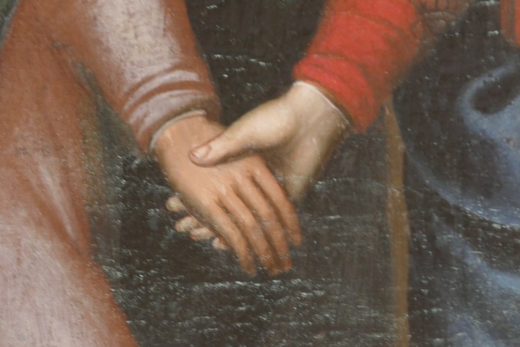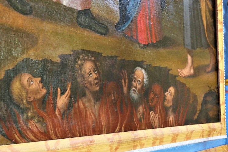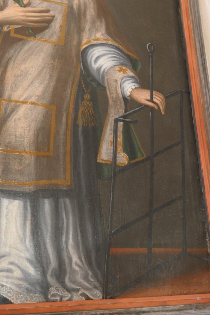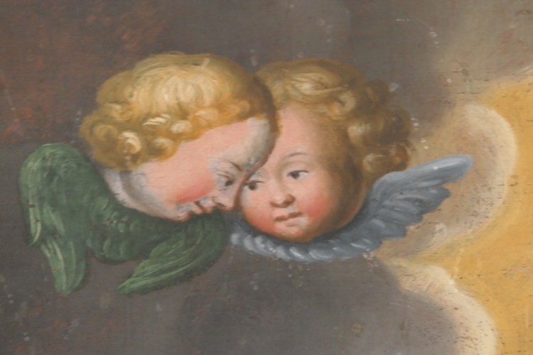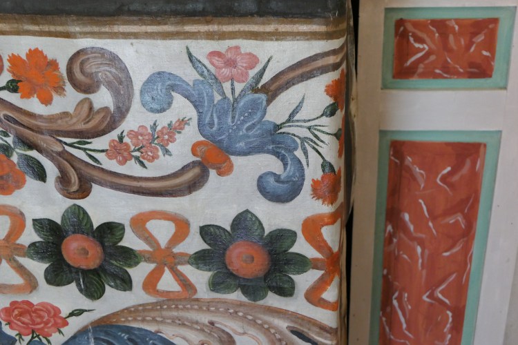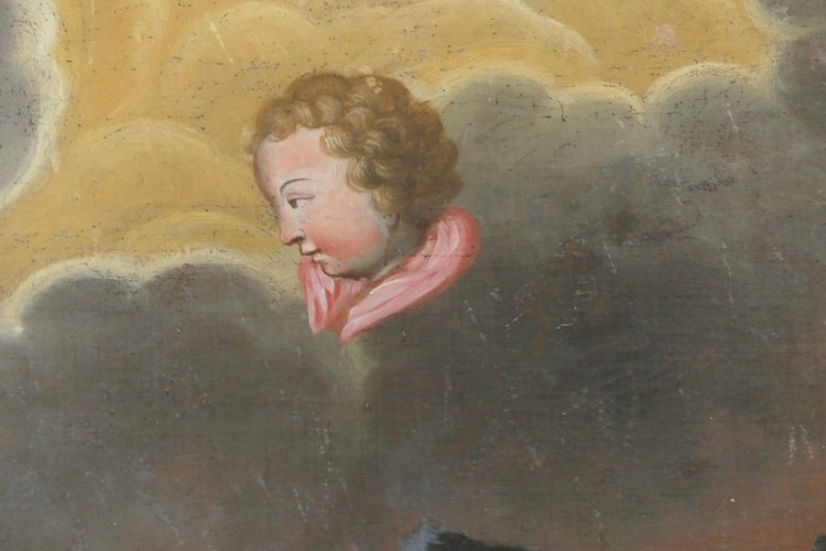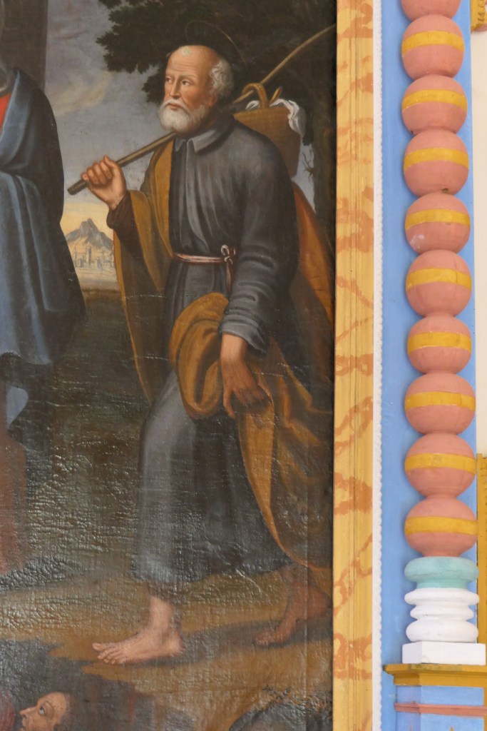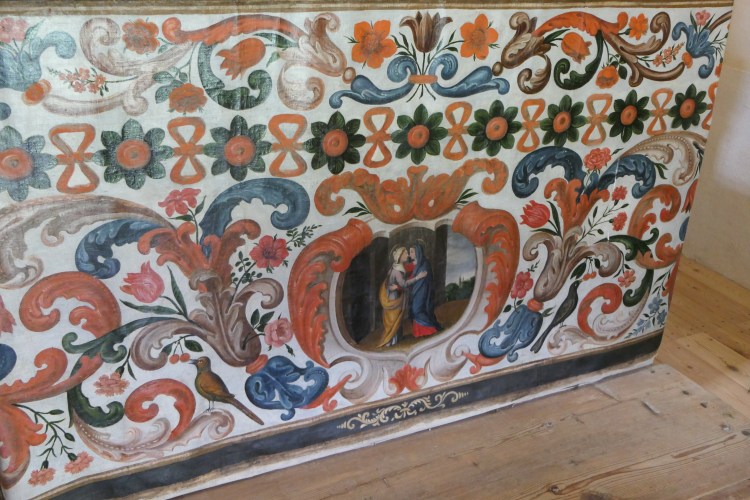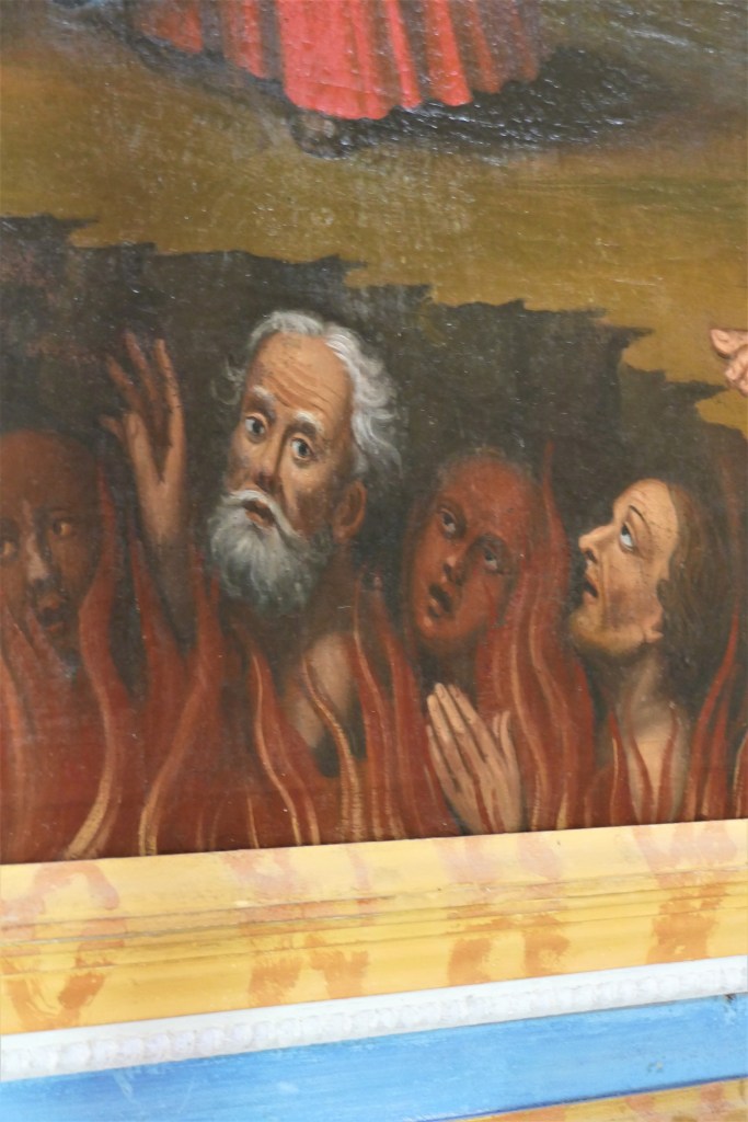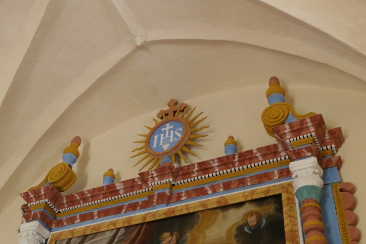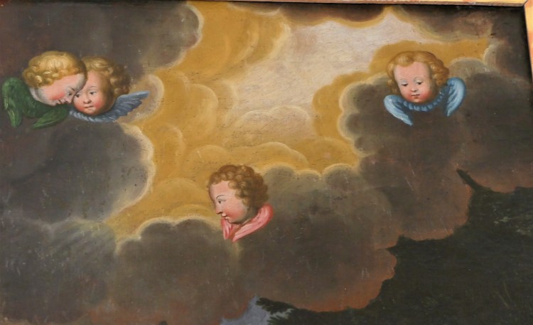 La dédicace de cette chapelle fut à l’origine faite à Notre Dame de la visitation, d’où le thème du tableau. Il semble qu’elle ait glissé vers ND des neiges au milieu du 19ème siècle, date de la création de cette fête par le pape.