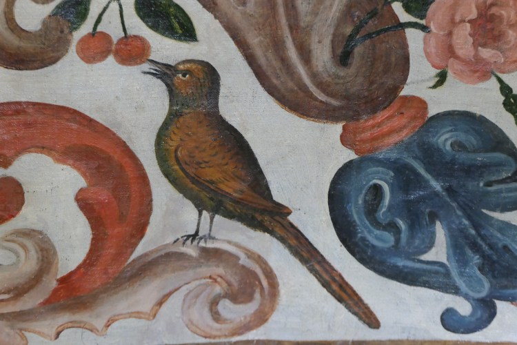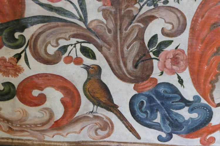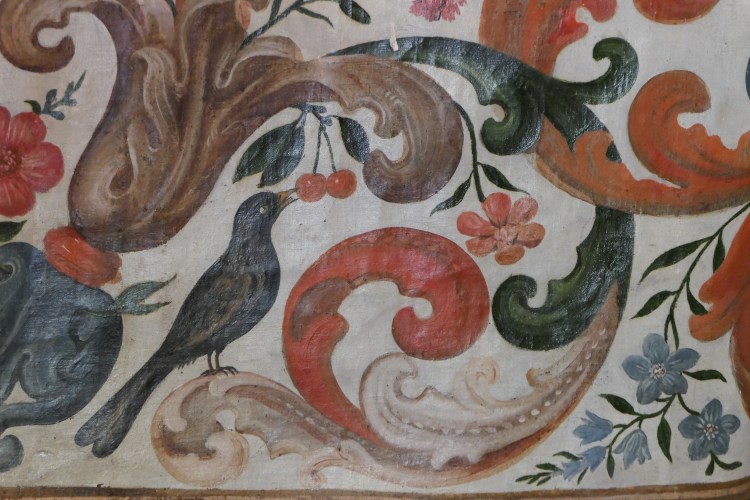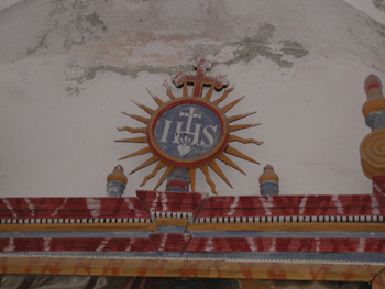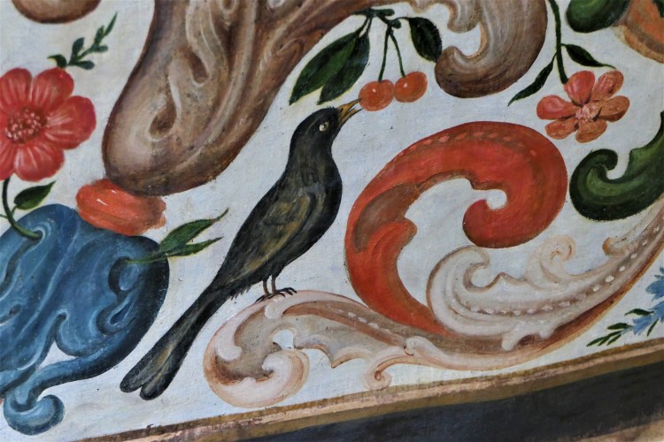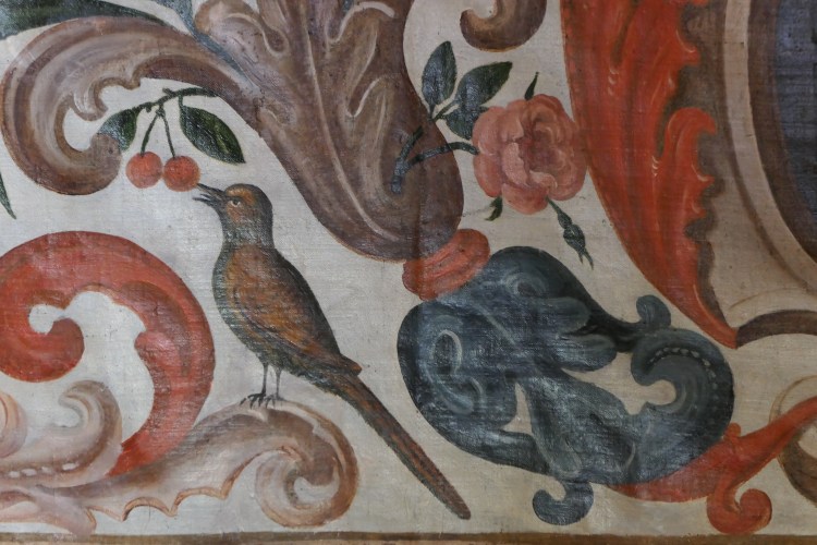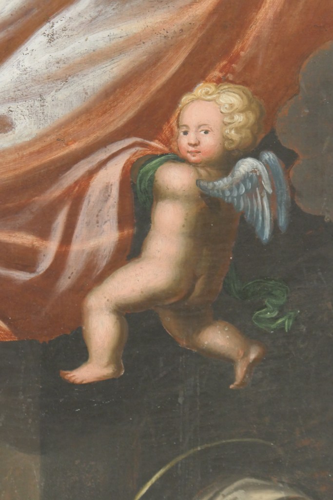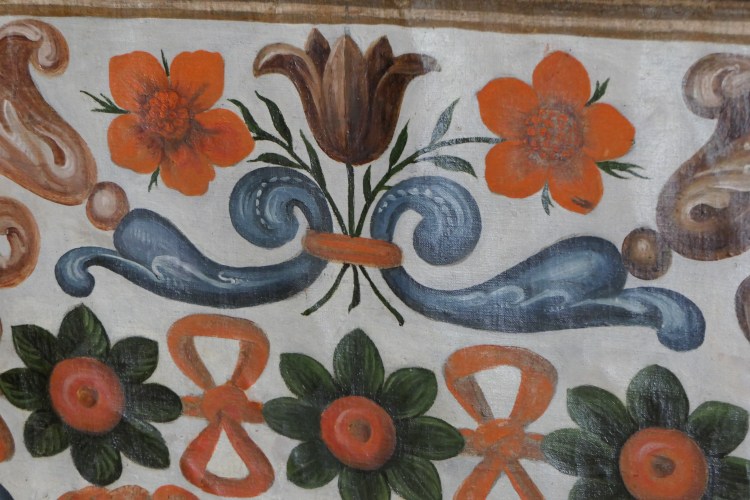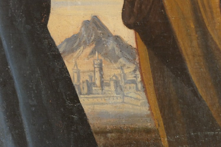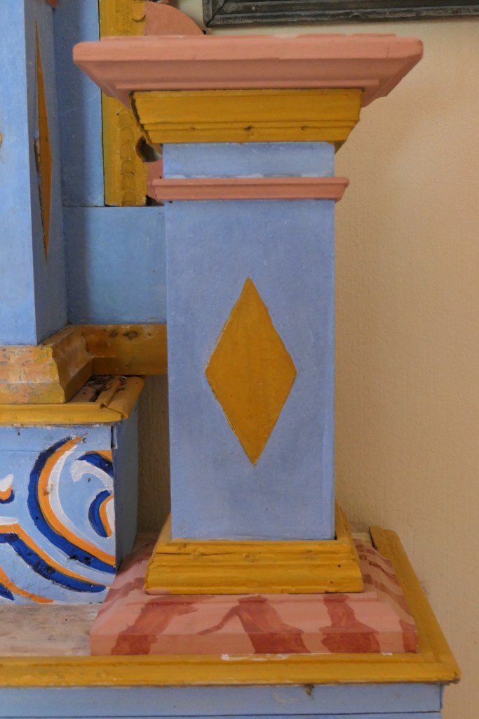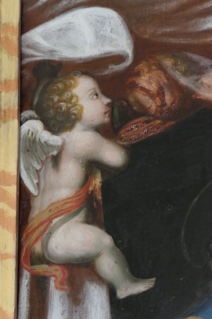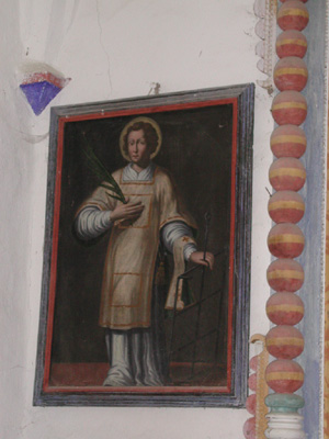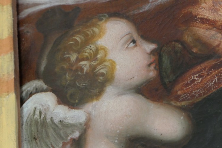 La dédicace de cette chapelle fut à l’origine faite à Notre Dame de la visitation, d’où le thème du tableau. Il semble qu’elle ait glissé vers ND des neiges au milieu du 19ème siècle, date de la création de cette fête par le pape.