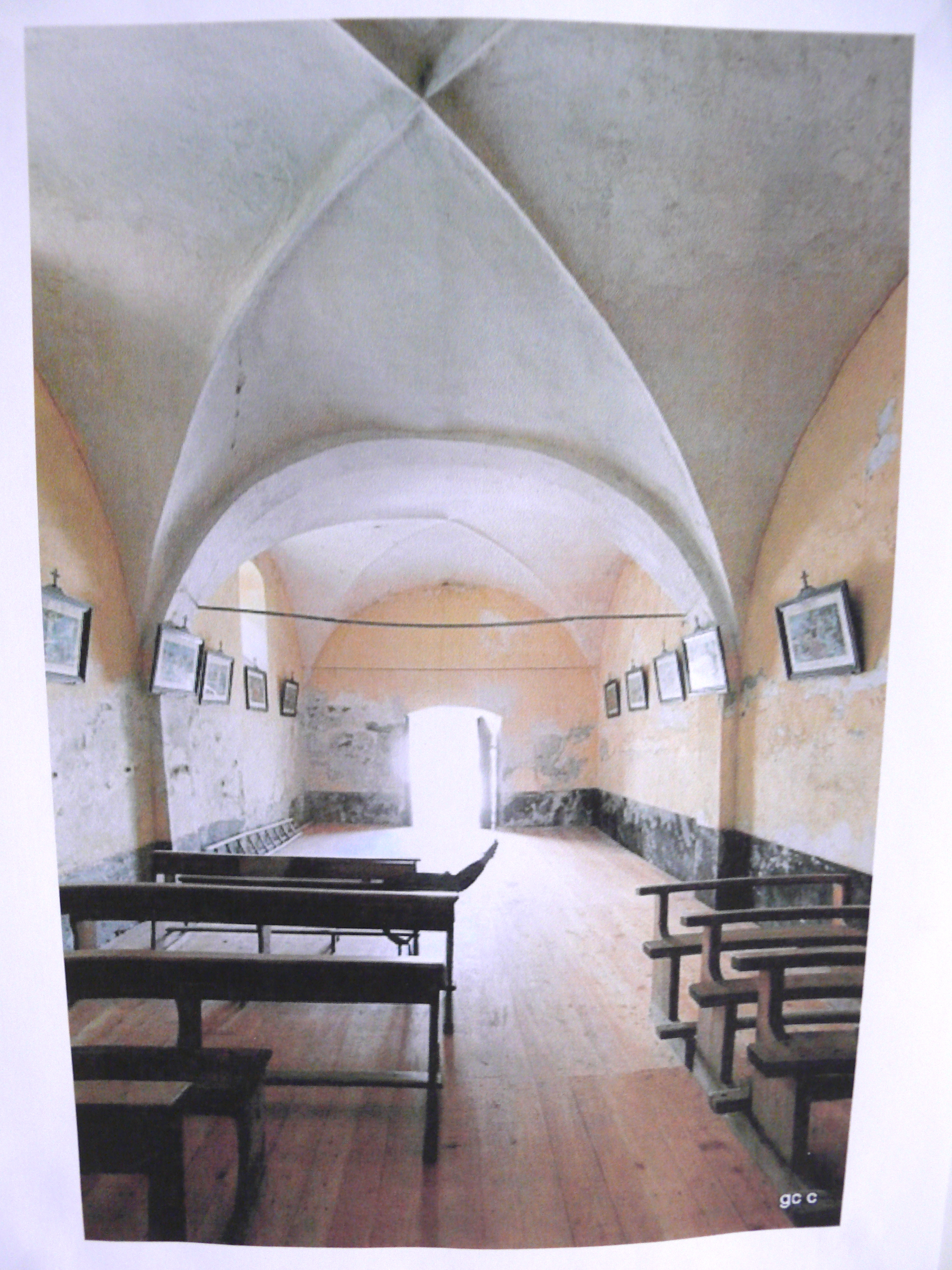 2 Voûtes croisées d’arêtes, séparées par un arc en berceau pour la nef, 1 voute croisée d’arêtes à huit quartiers pour le choeur.