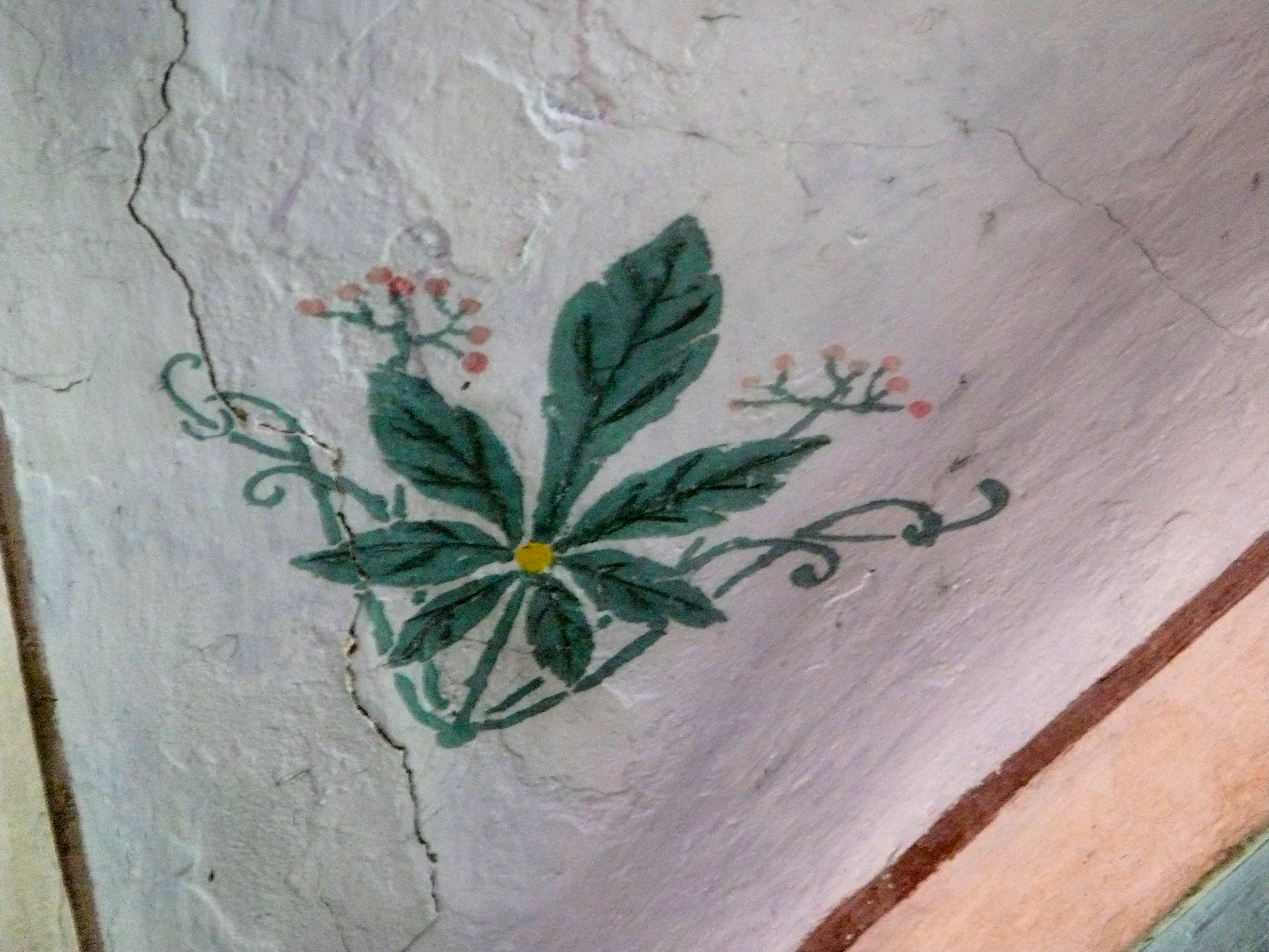 Les fresques des plafonds sont assez simples mais fraiches : de la verdure, des feuilles de chataîgner, de vigne.