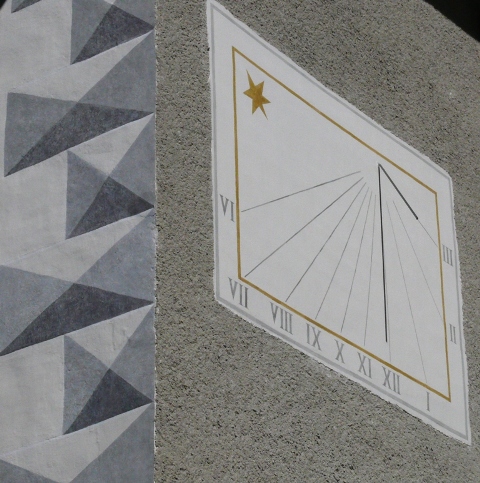 En façade sud : un beau cadran solaire, chiffres romains et une étoile.