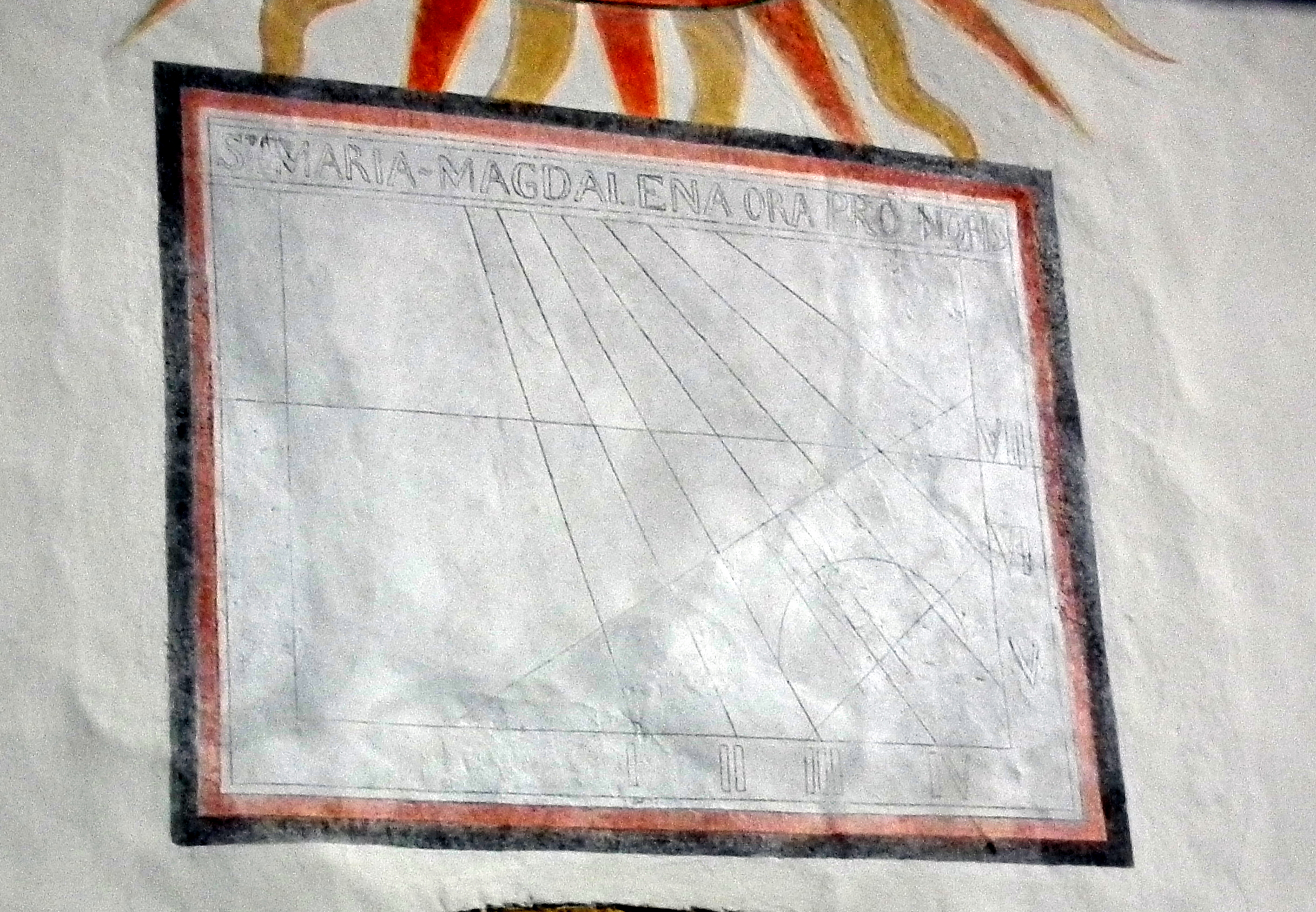 - un second cadran solaire, sans aiguille, avec la mention “Santa Magdalena ora pro nobis” (Sainte Madeleine priez pour nous)