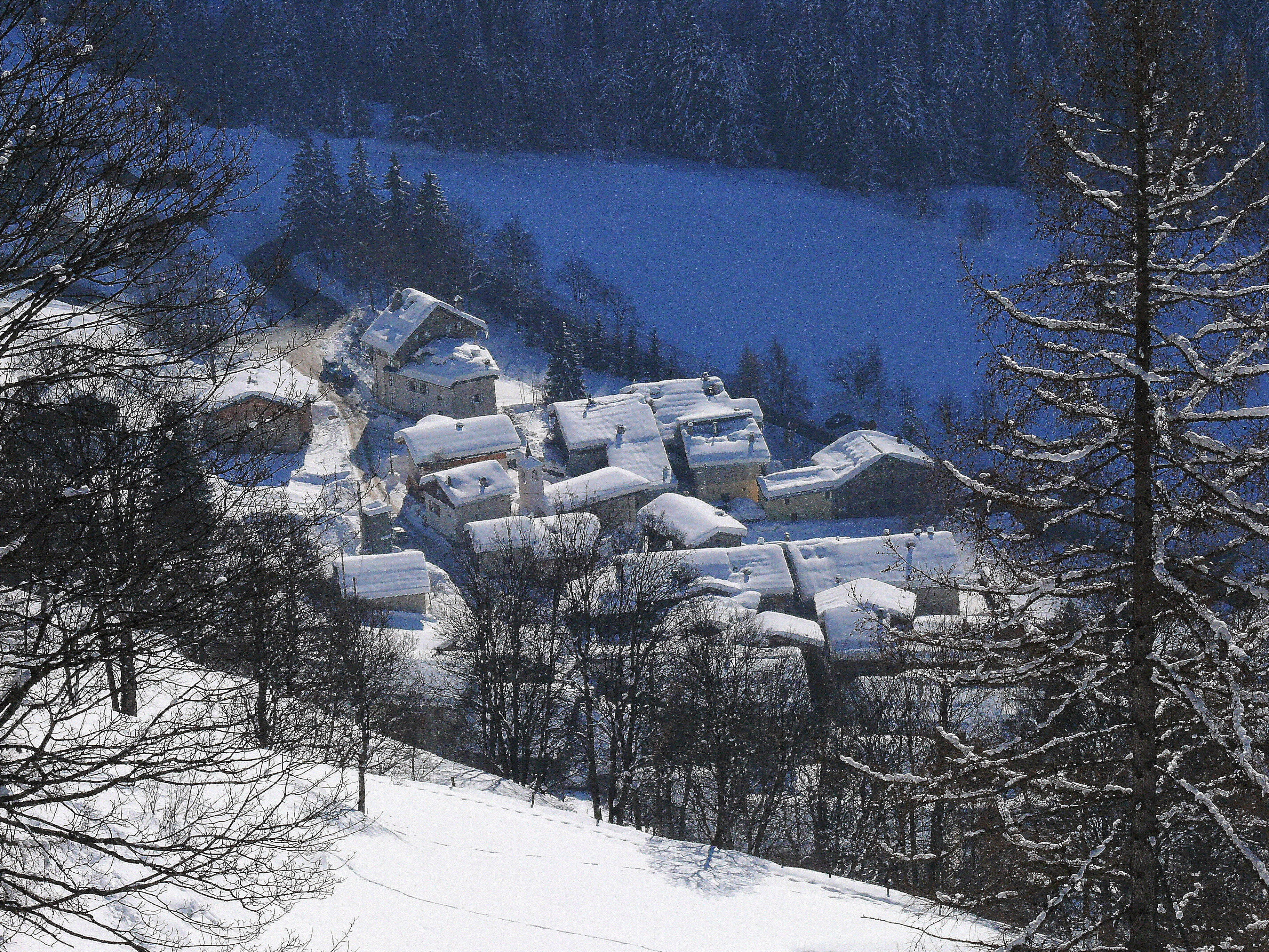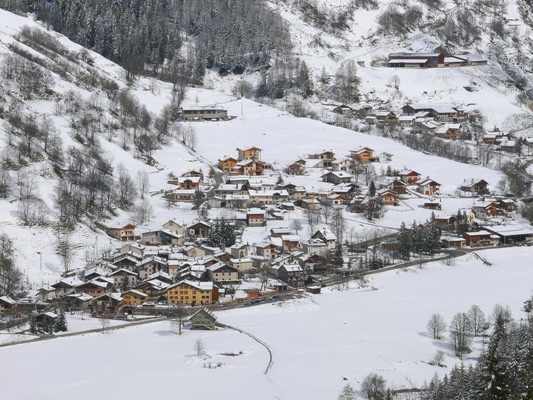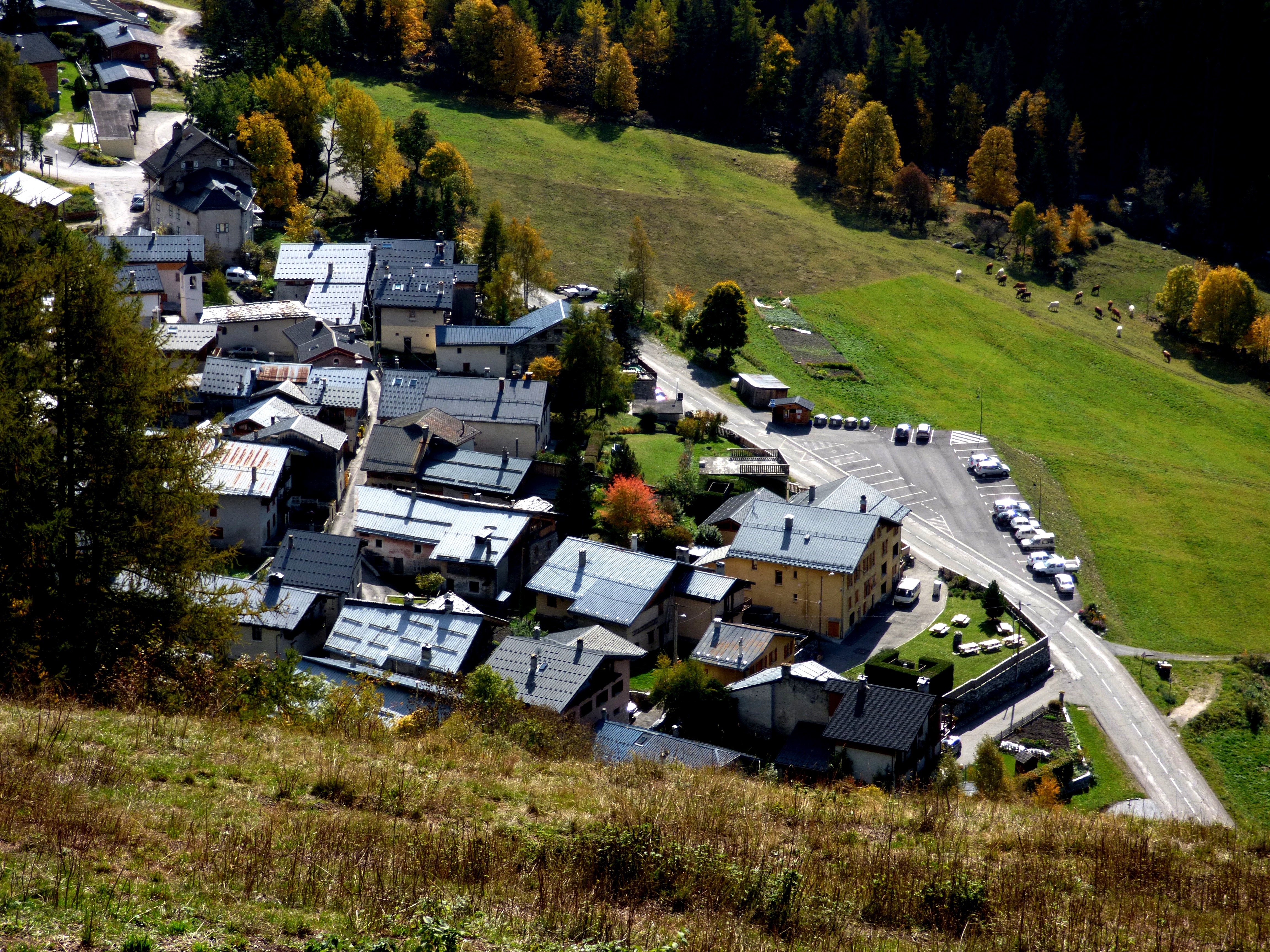 La chapelle est installée perpendiculairement à l’axe de la vallée, dans le sens de la pente, avec sa porte à l’ouest. Les maisons ont beaucoup poussé autour d’elle. Il reste néanmoins près d’elle un bachal et un beau jardin potager.