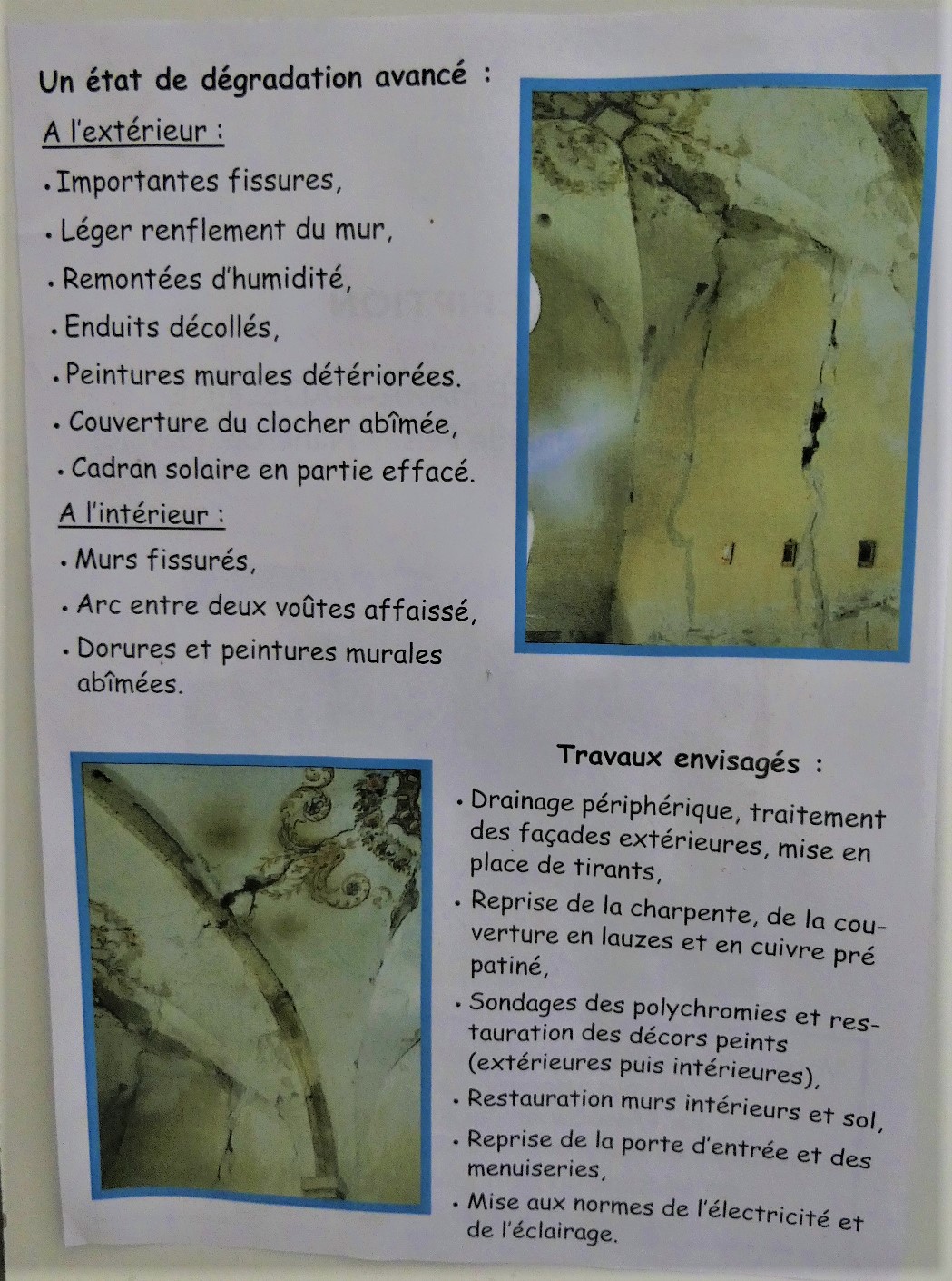 L’état de restauration de la chapelle